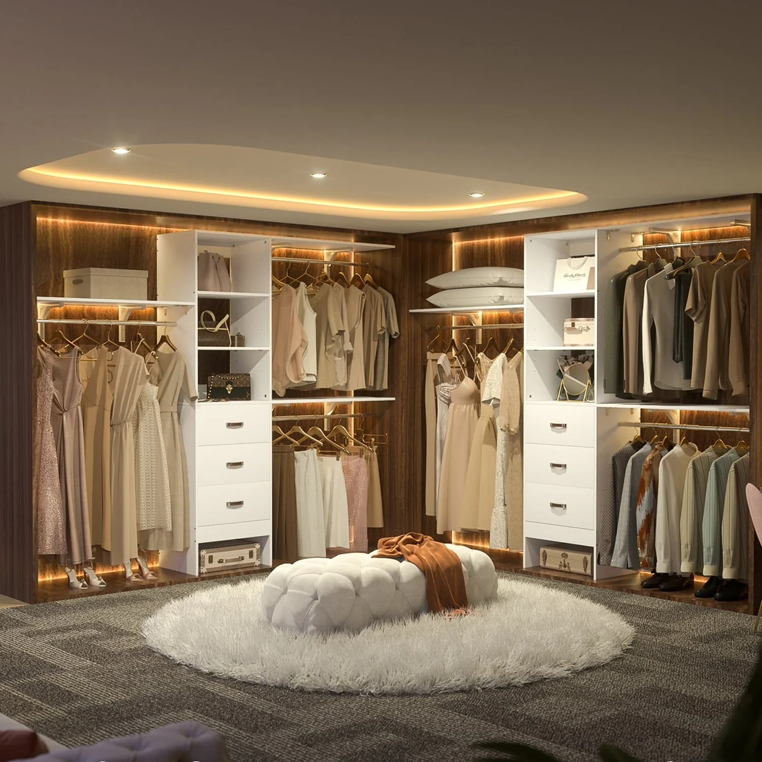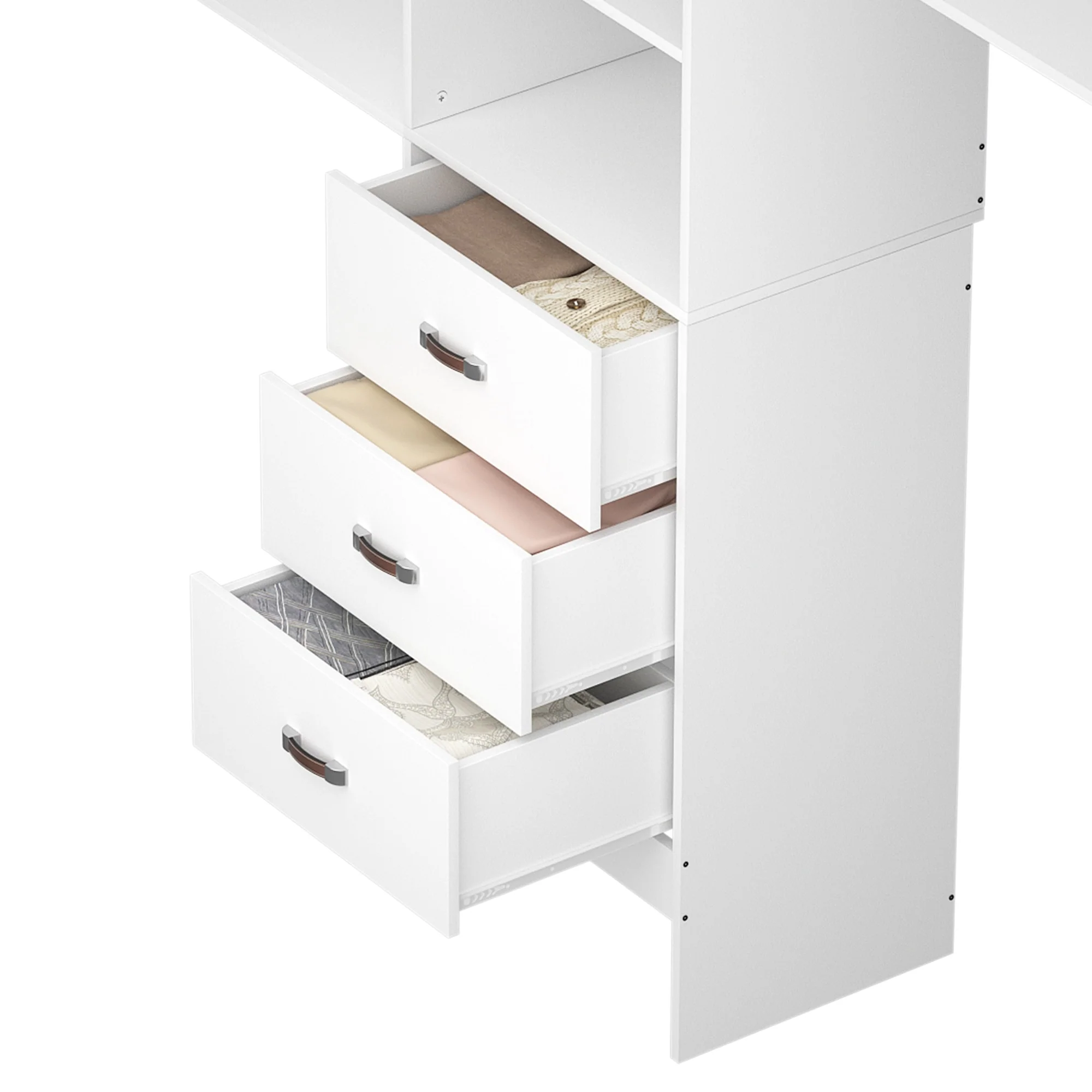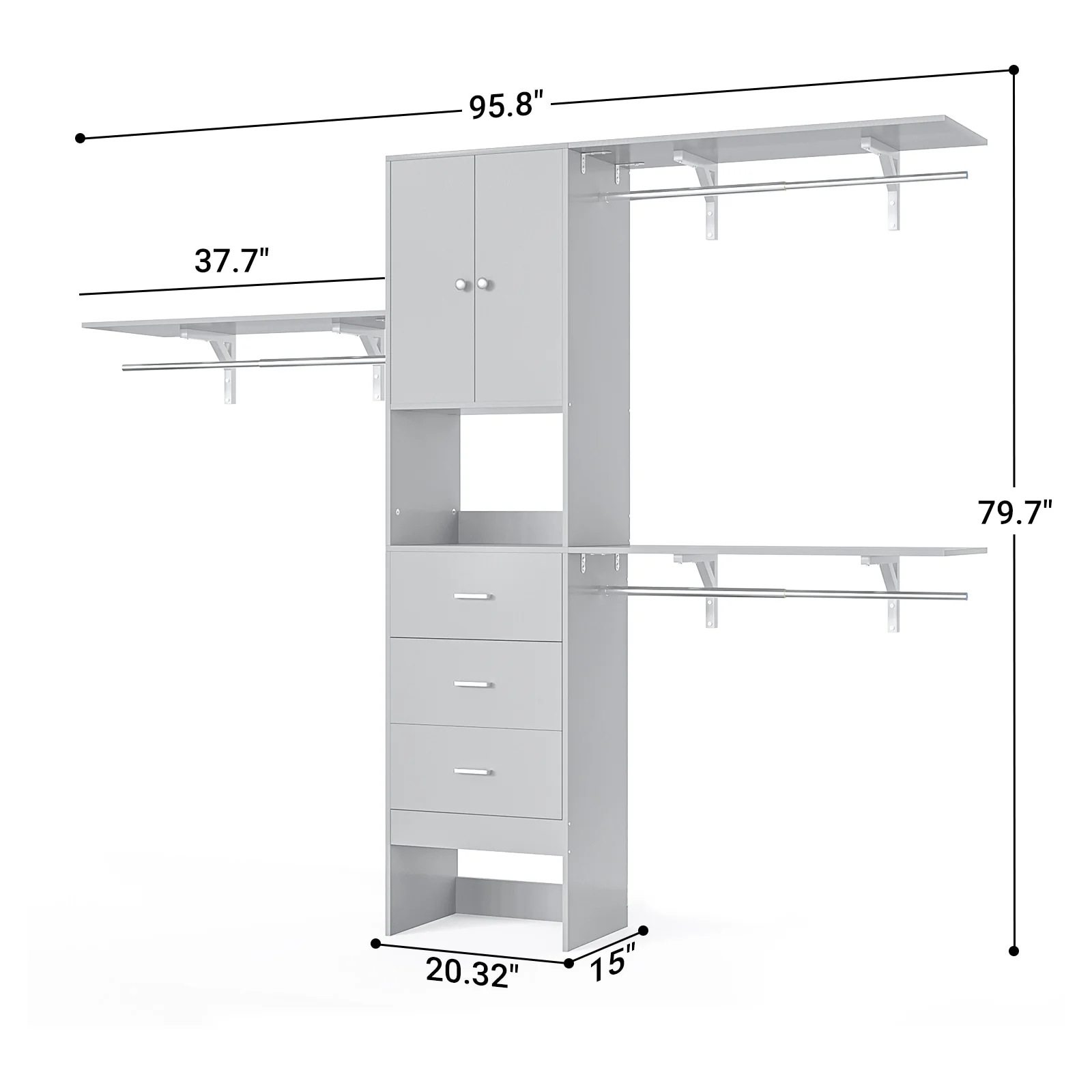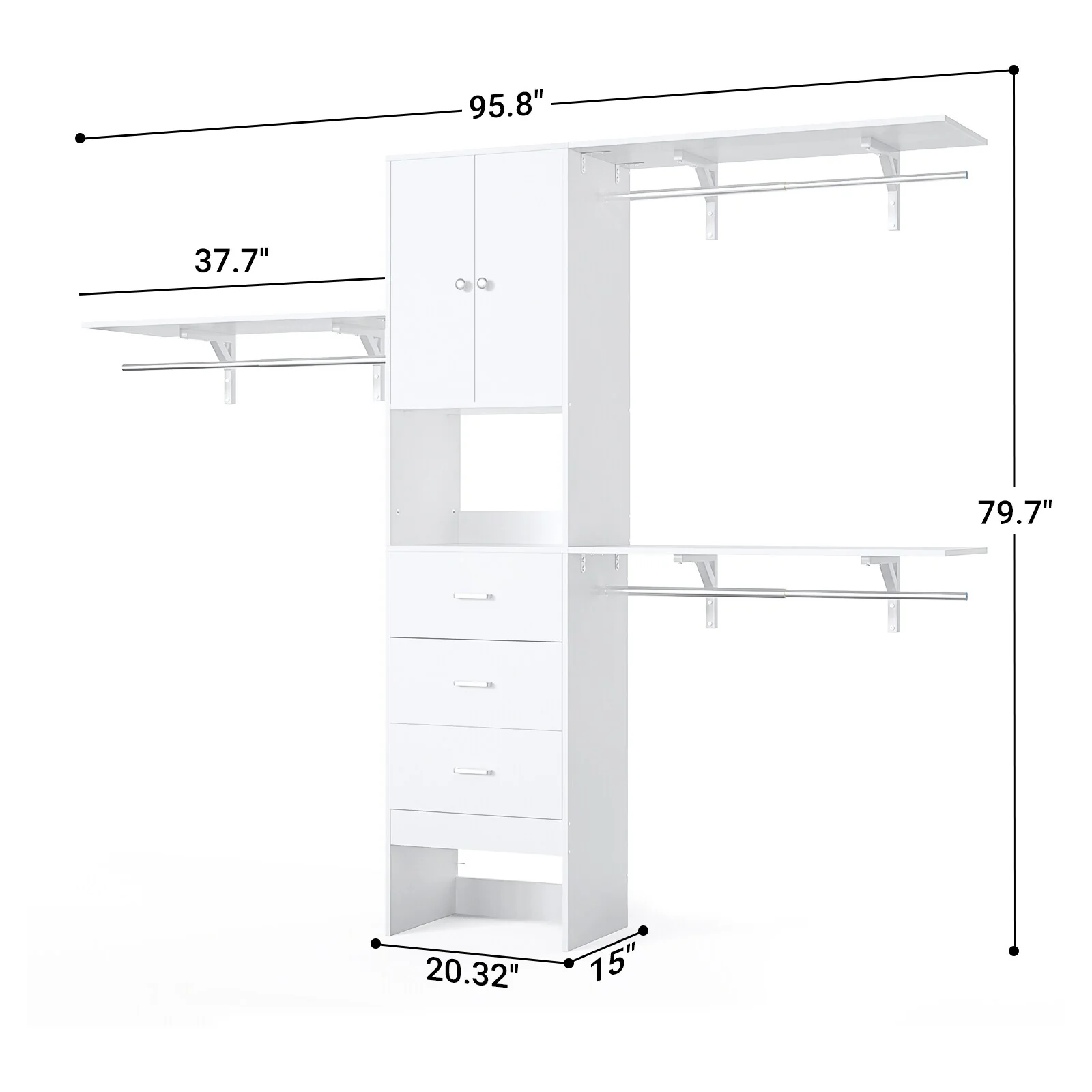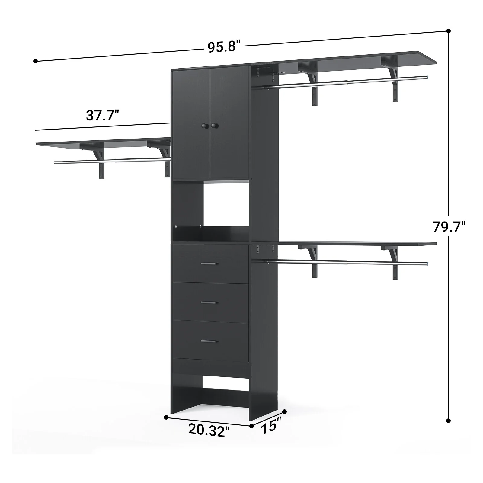 20.2'' - 96'' W Closet Organizer with Drawers, Closet System with Hanging Rods and Adjustable Shelves