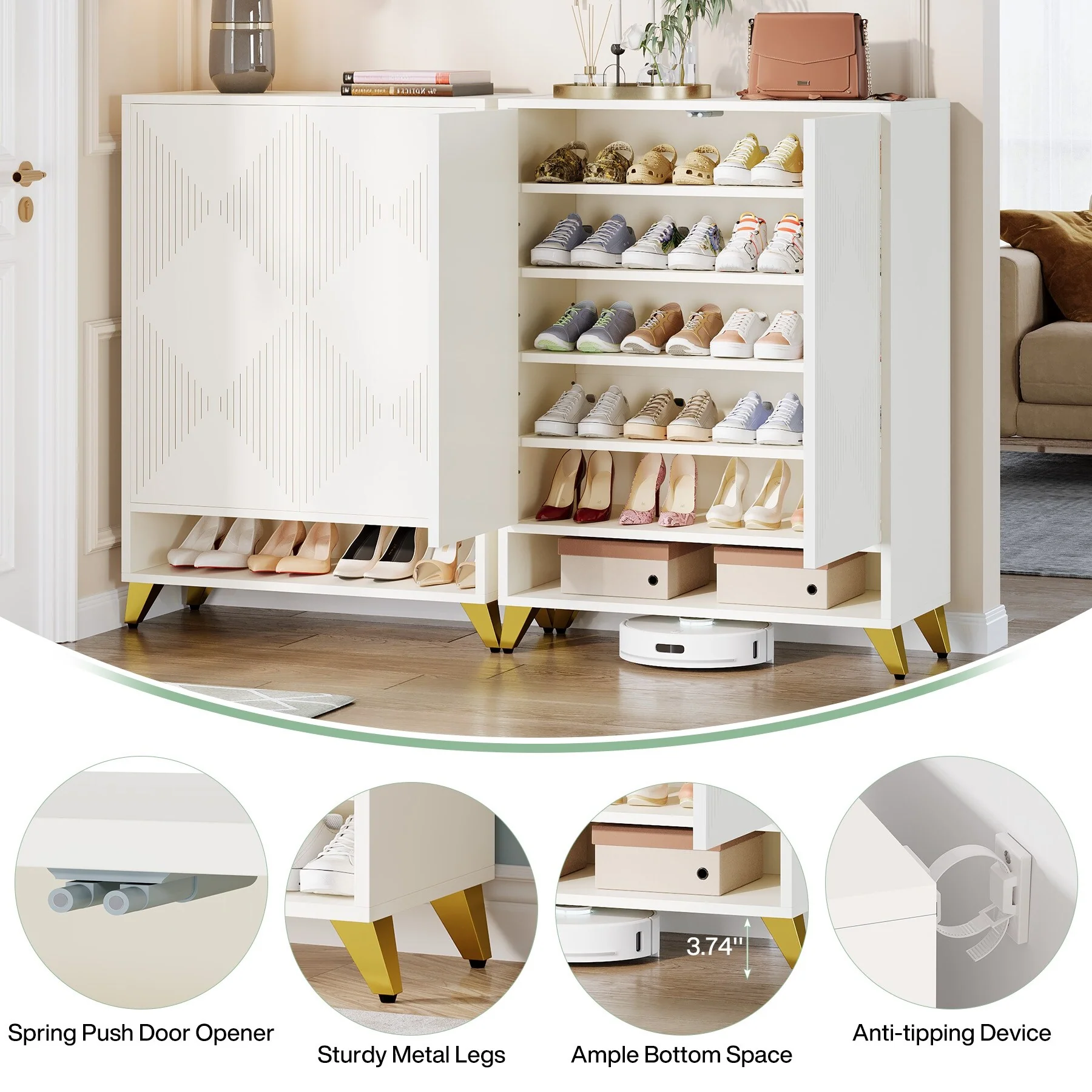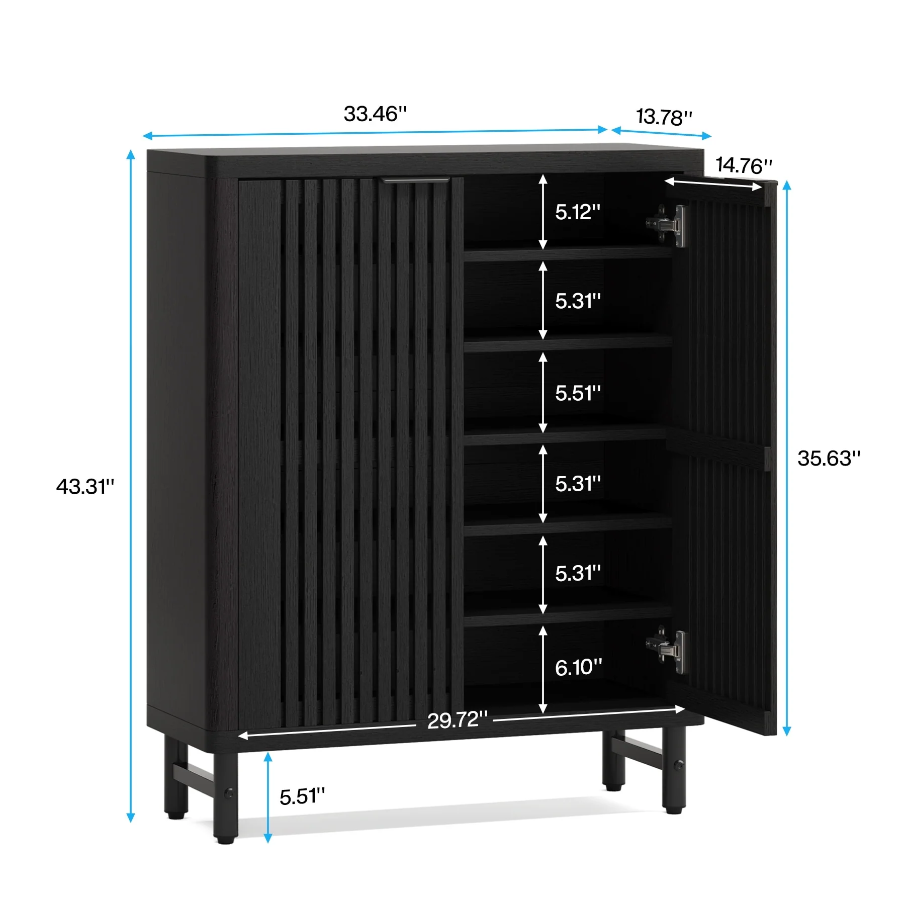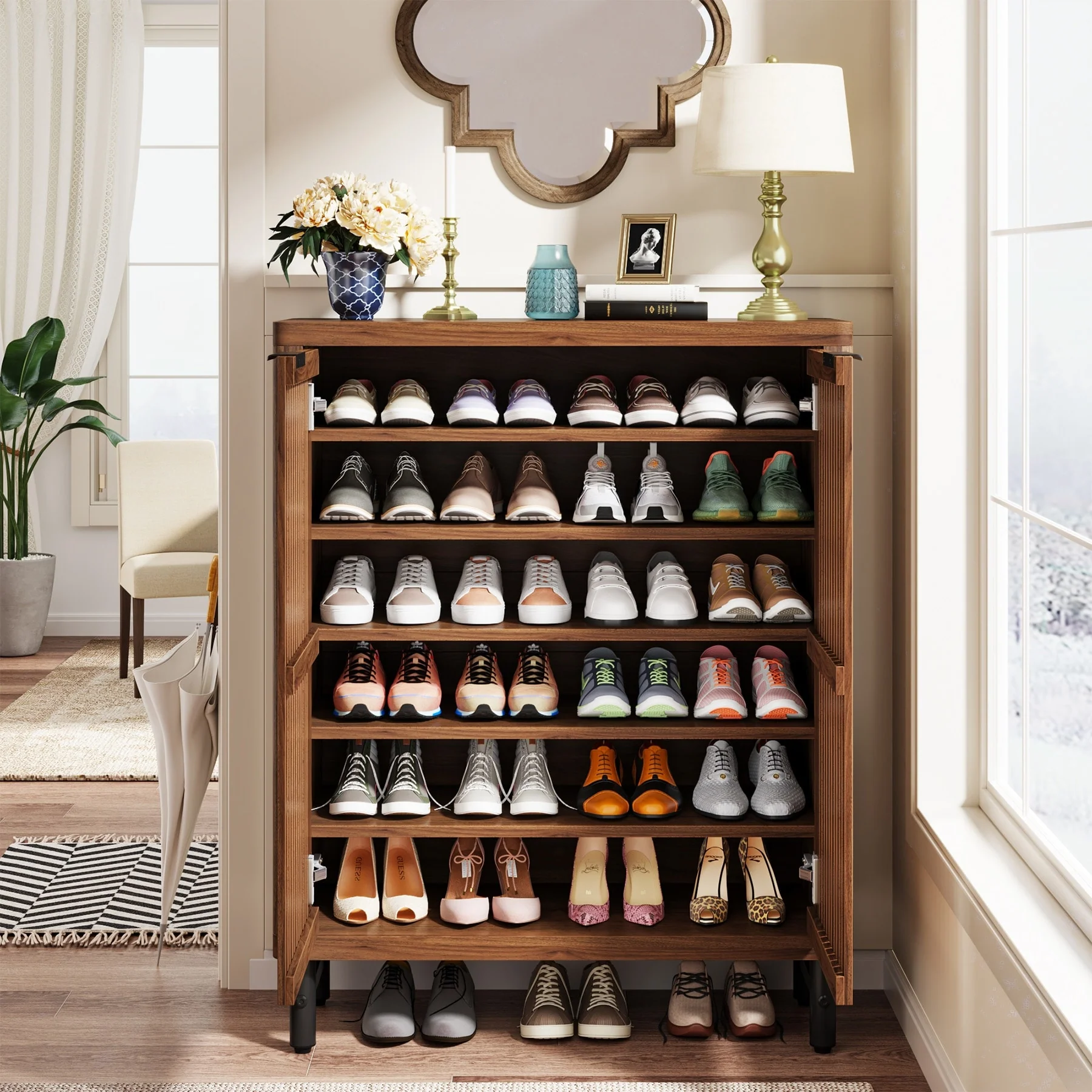 24 Pairs Large Wood Shoe Storage Cabinet with Doors for Entryway - 6-Tier