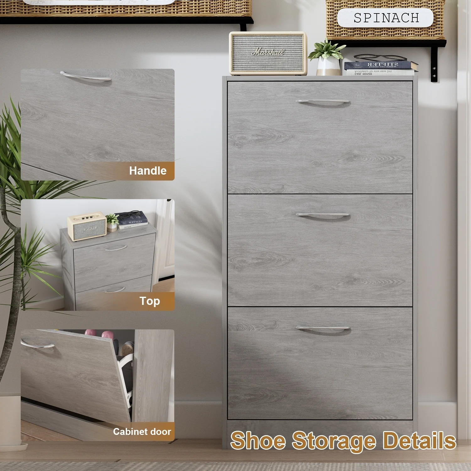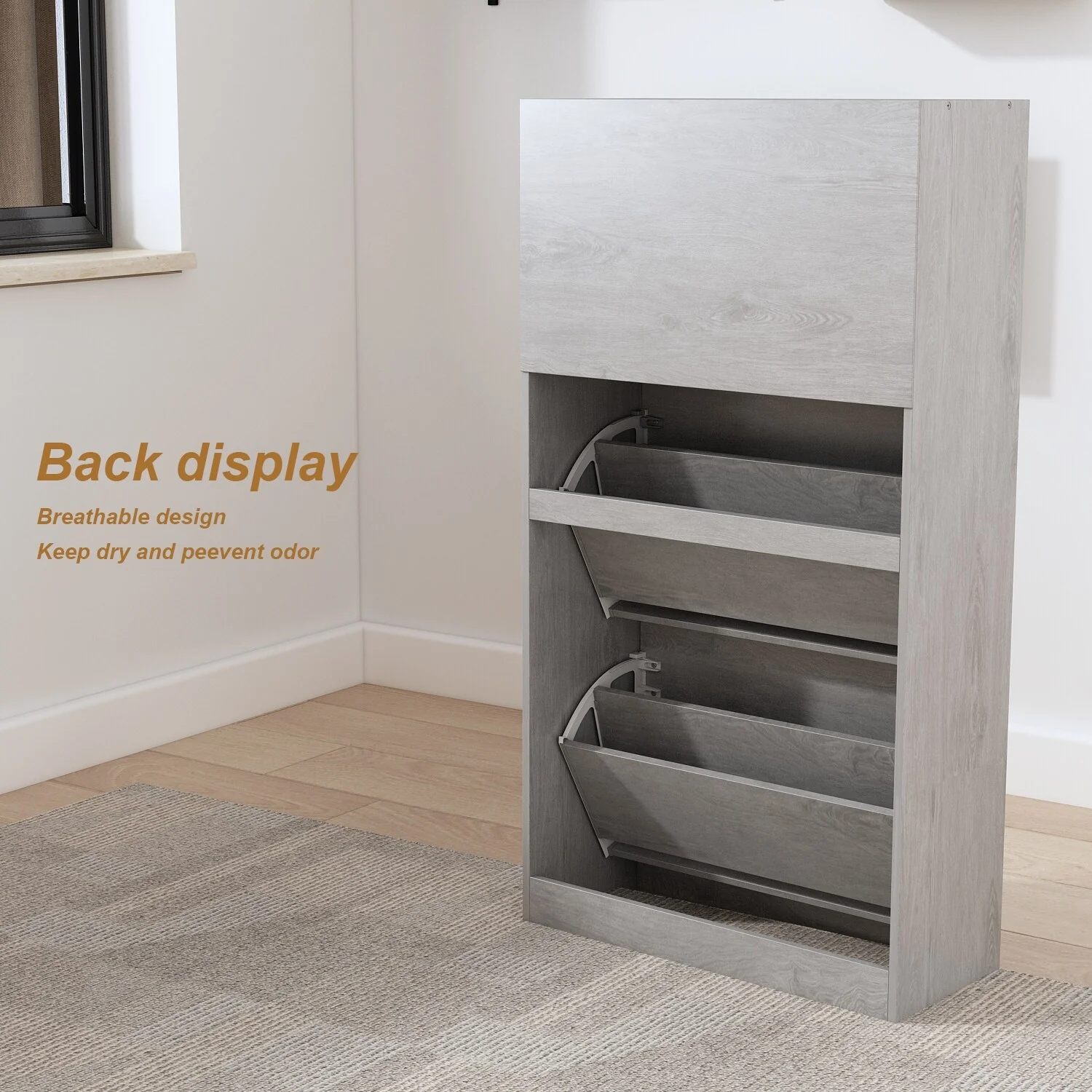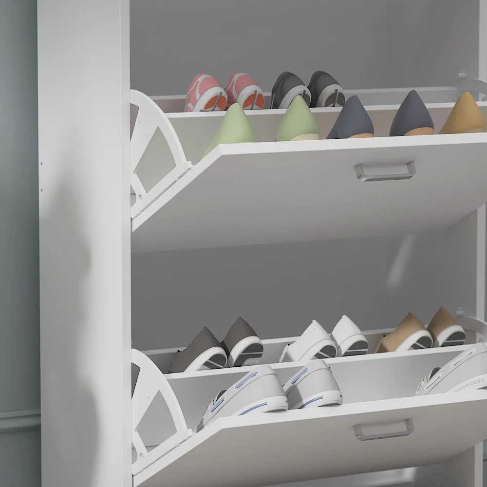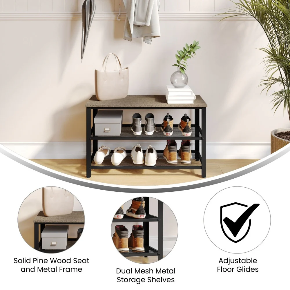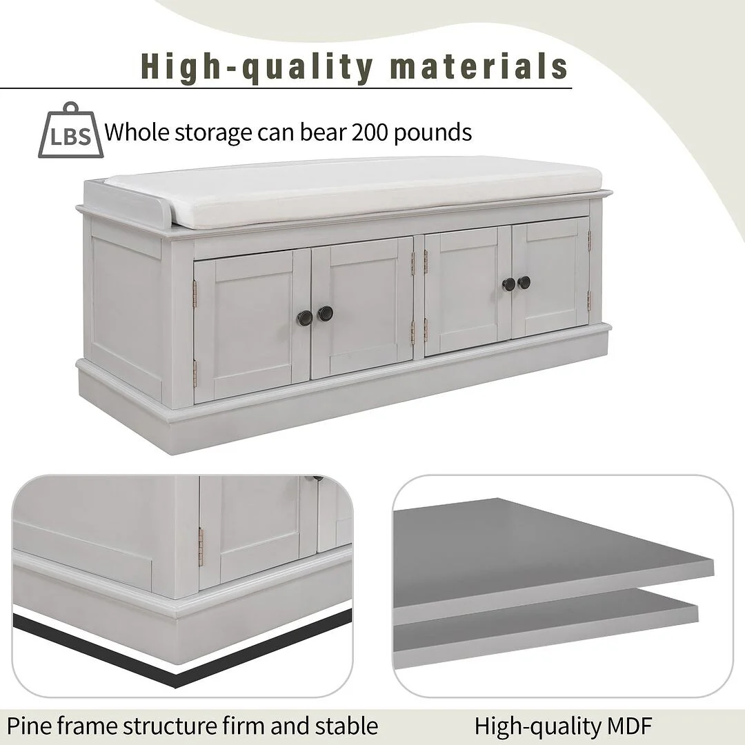 42.70" Modern Versatile Entry Upholstered Storage Bench with 4 Doors, Adjustable Shelves and Shoe Racks