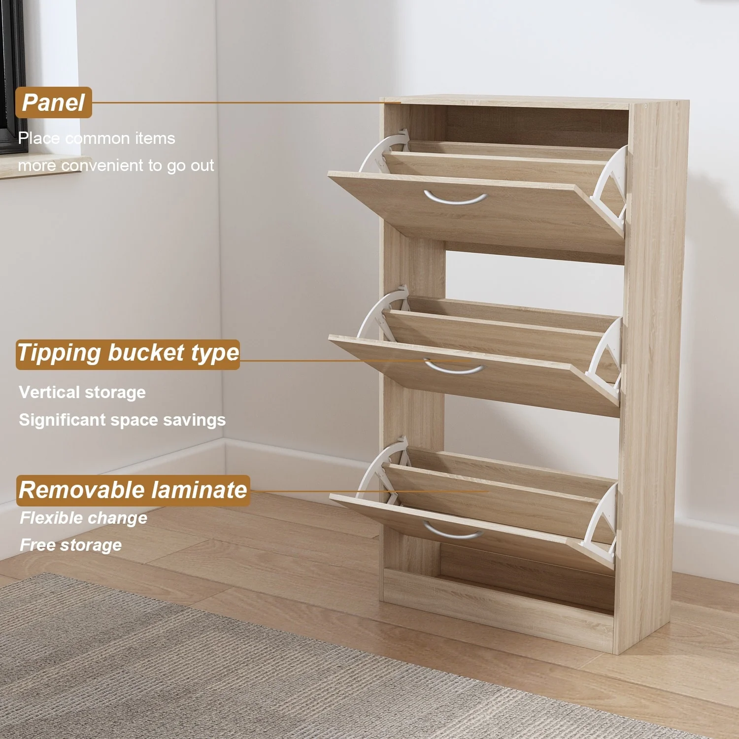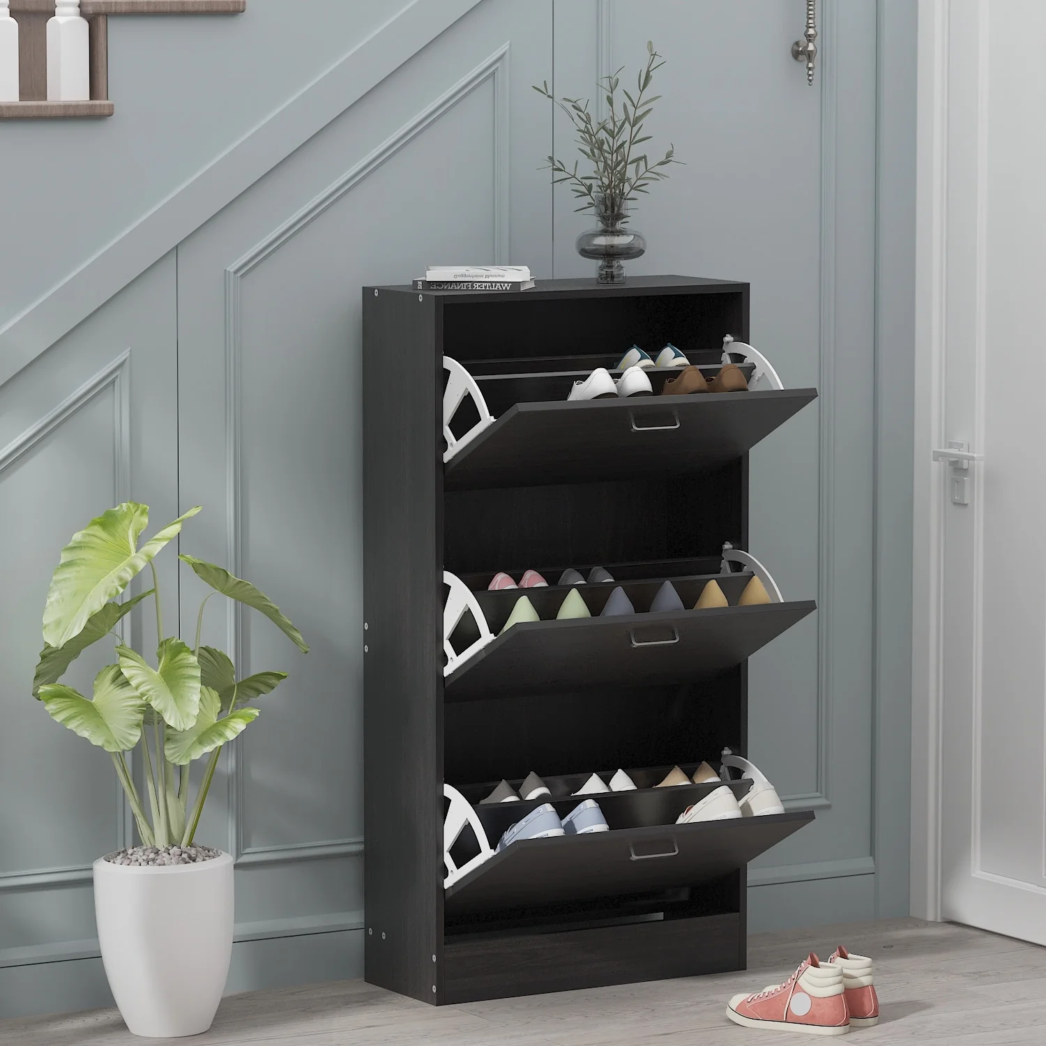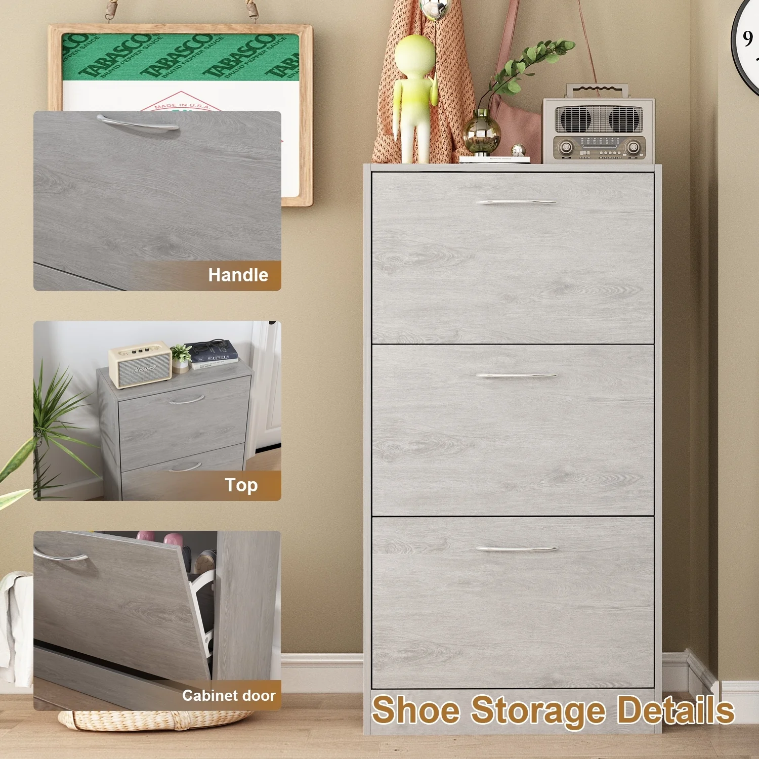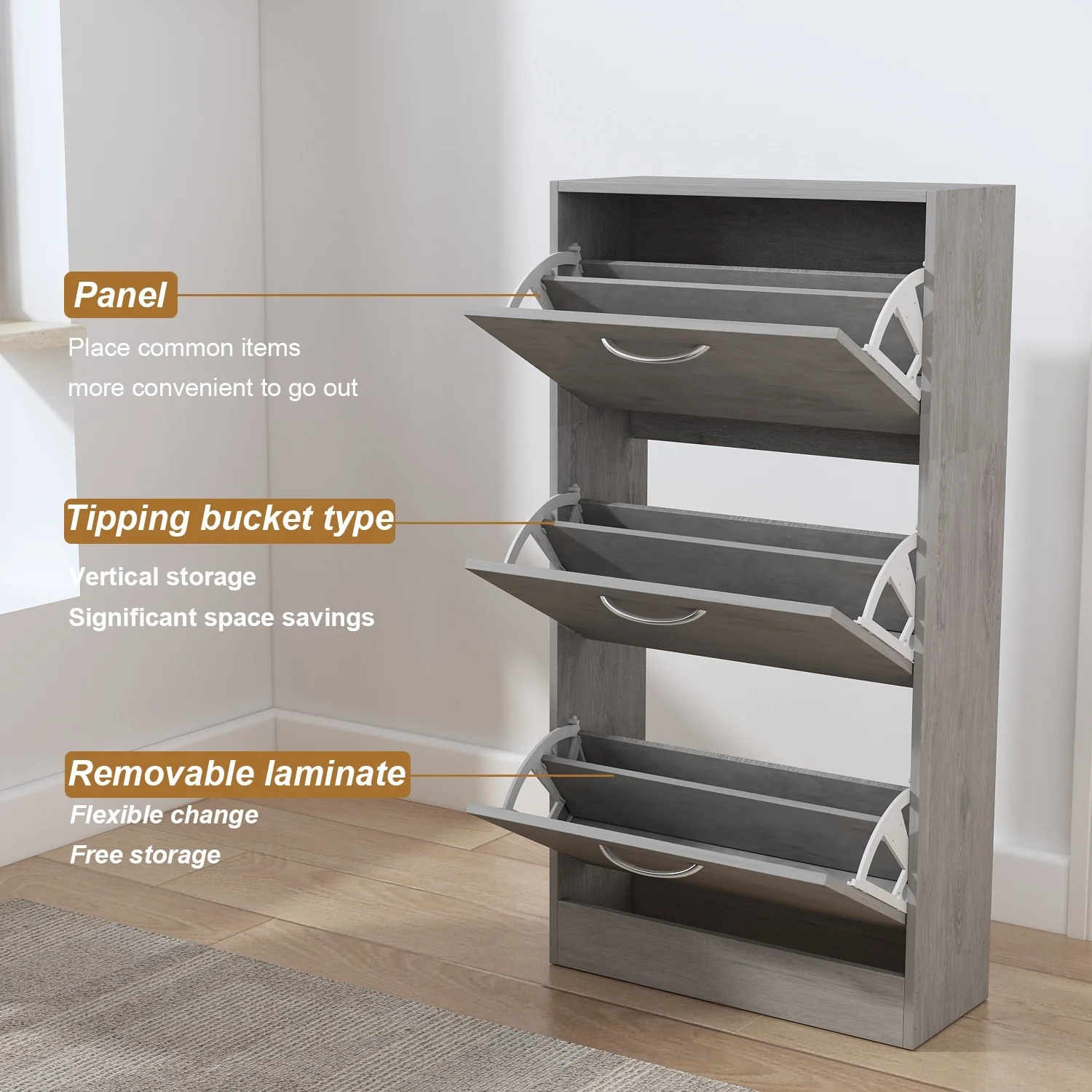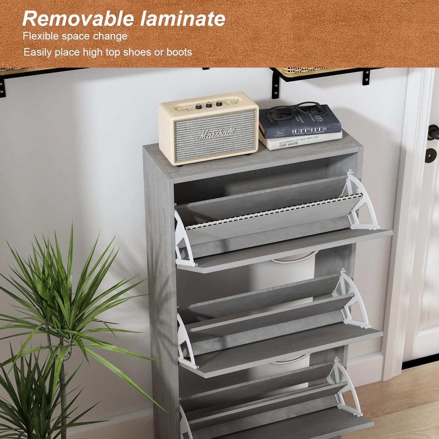 42.70" Modern Versatile Entry Upholstered Storage Bench with 4 Doors, Adjustable Shelves and Shoe Racks