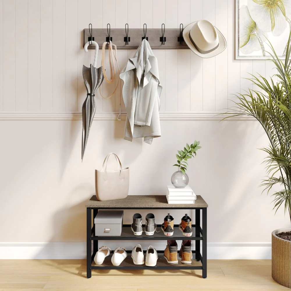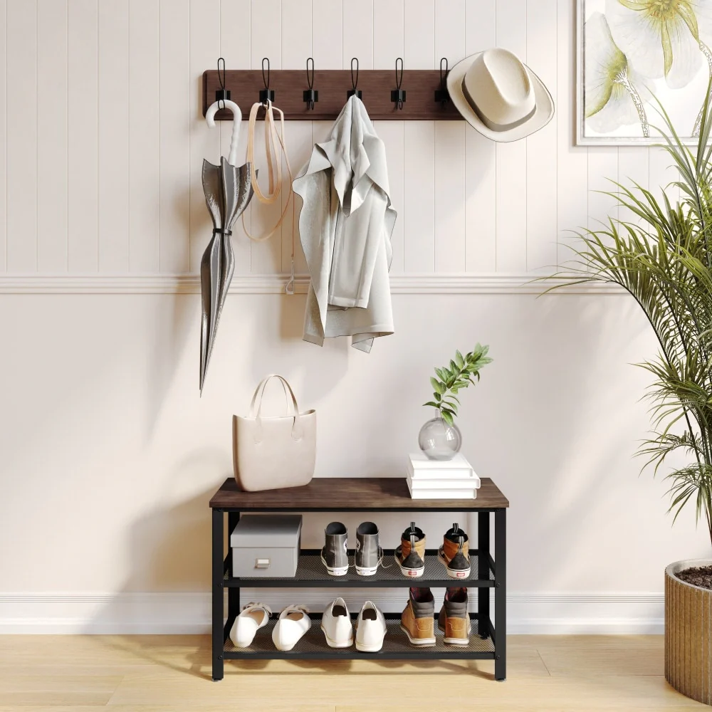 4 in 1 Bamboo Freestanding Entryway Coat Rack Stand with Storage Hooks - N/A