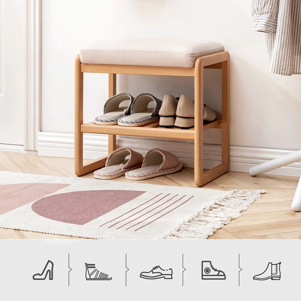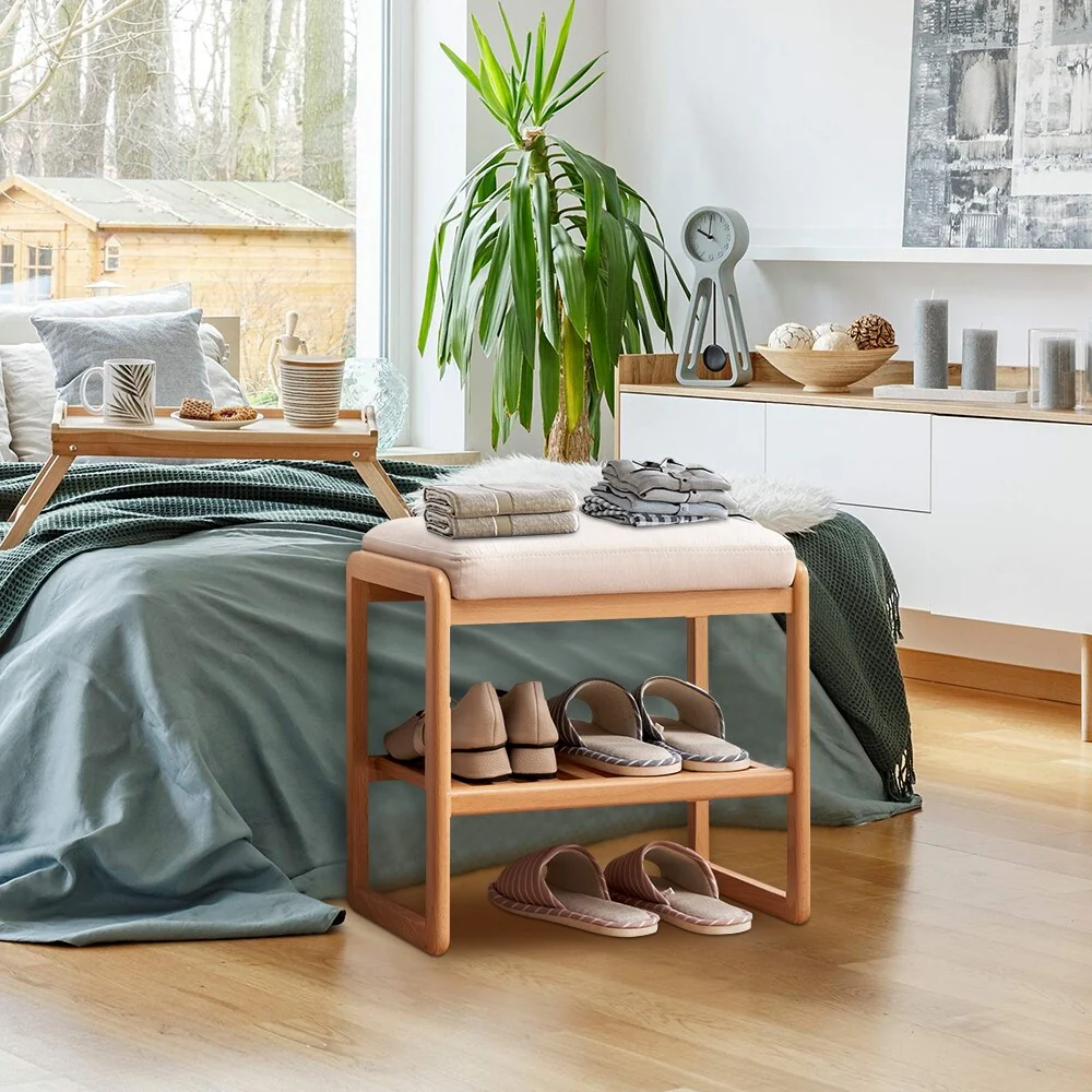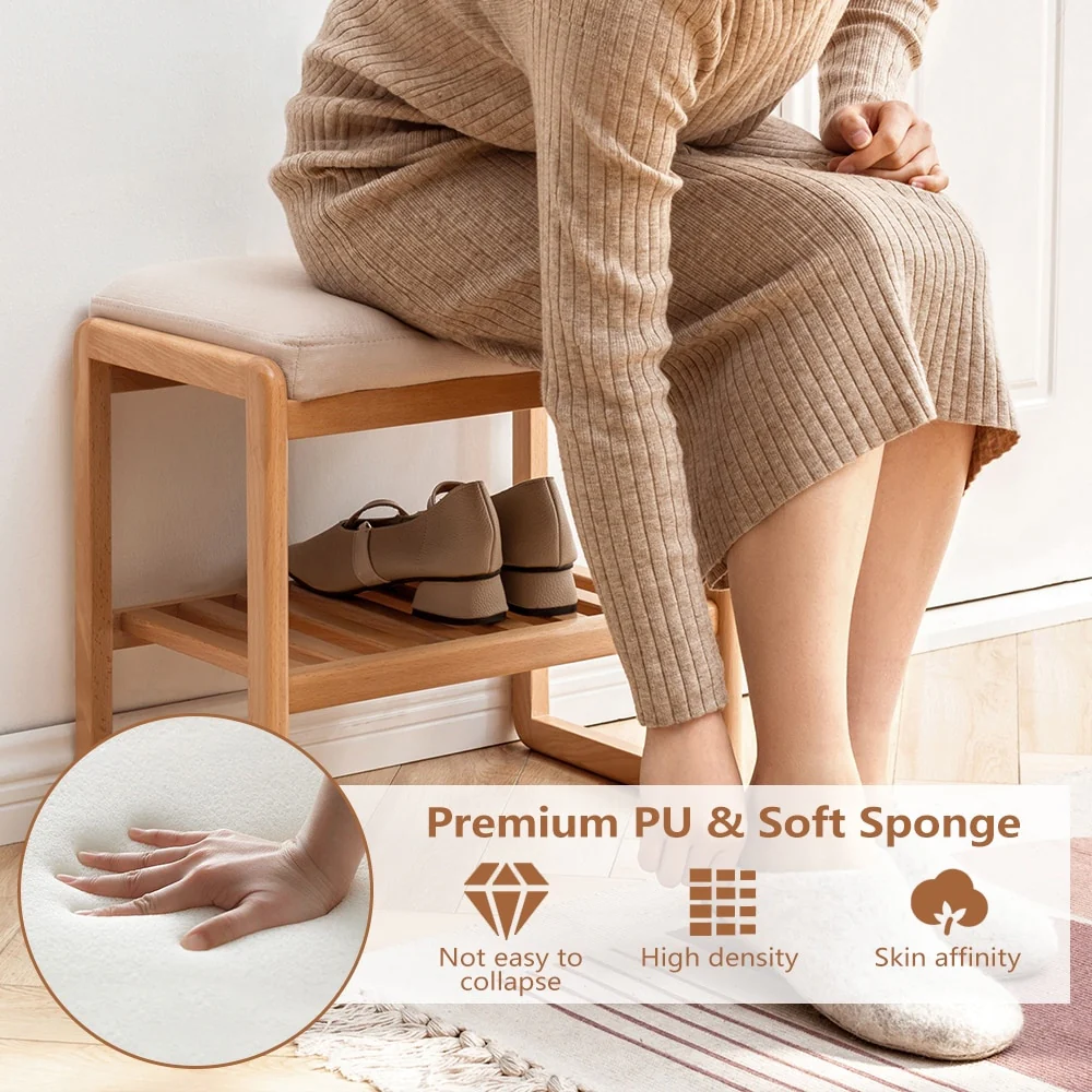 Solid Wood Shoe Bench with Sponge Cushion, Shoe Rack for Entryway - 23"