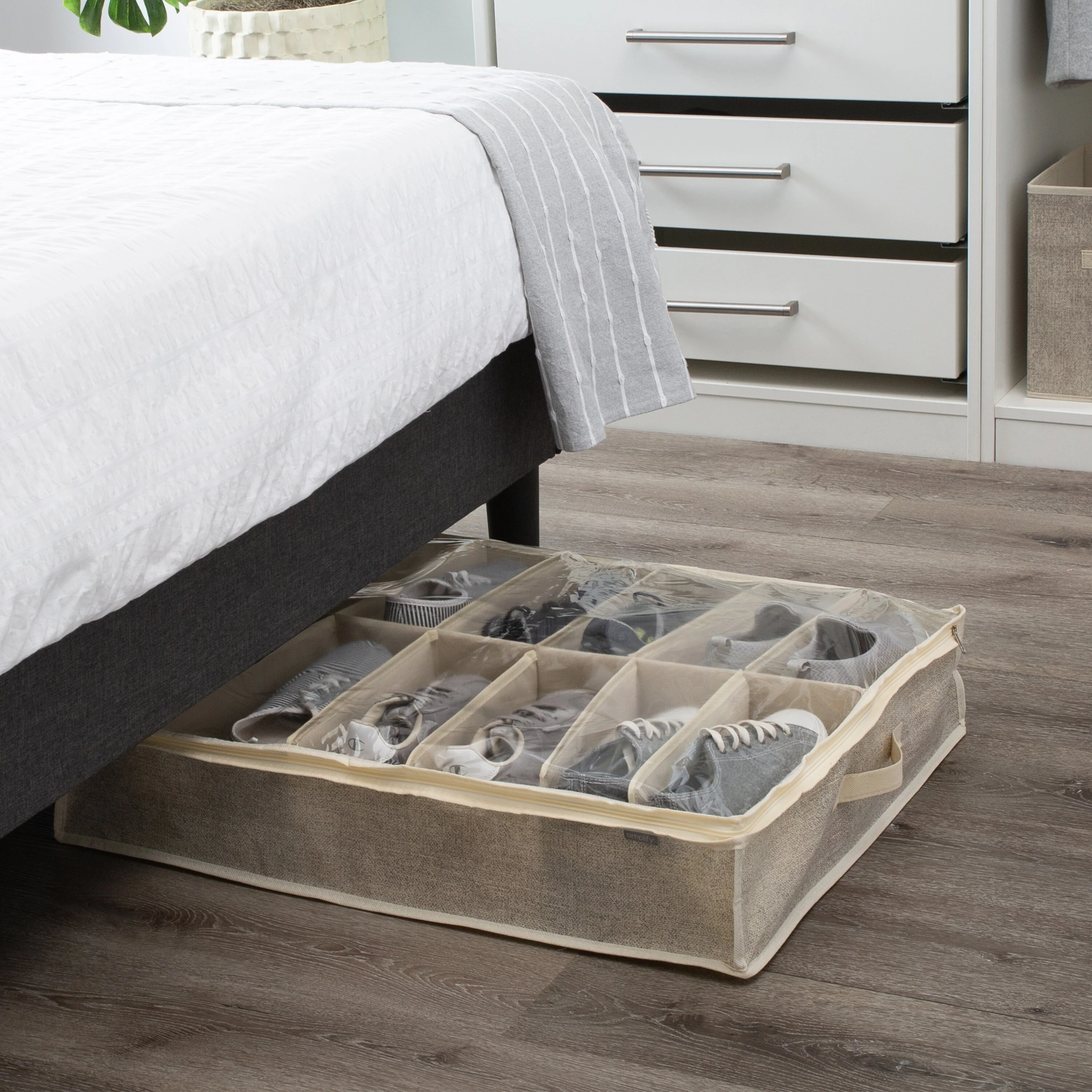 Simplify 12 Pair Under the Bed Shoe Storage Box in Faux Jute - L29"x W24"x H6"