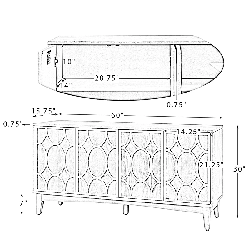 Modern Hexagonal Door Bruno 63" Wide Sideboard with Adjustable Shelves