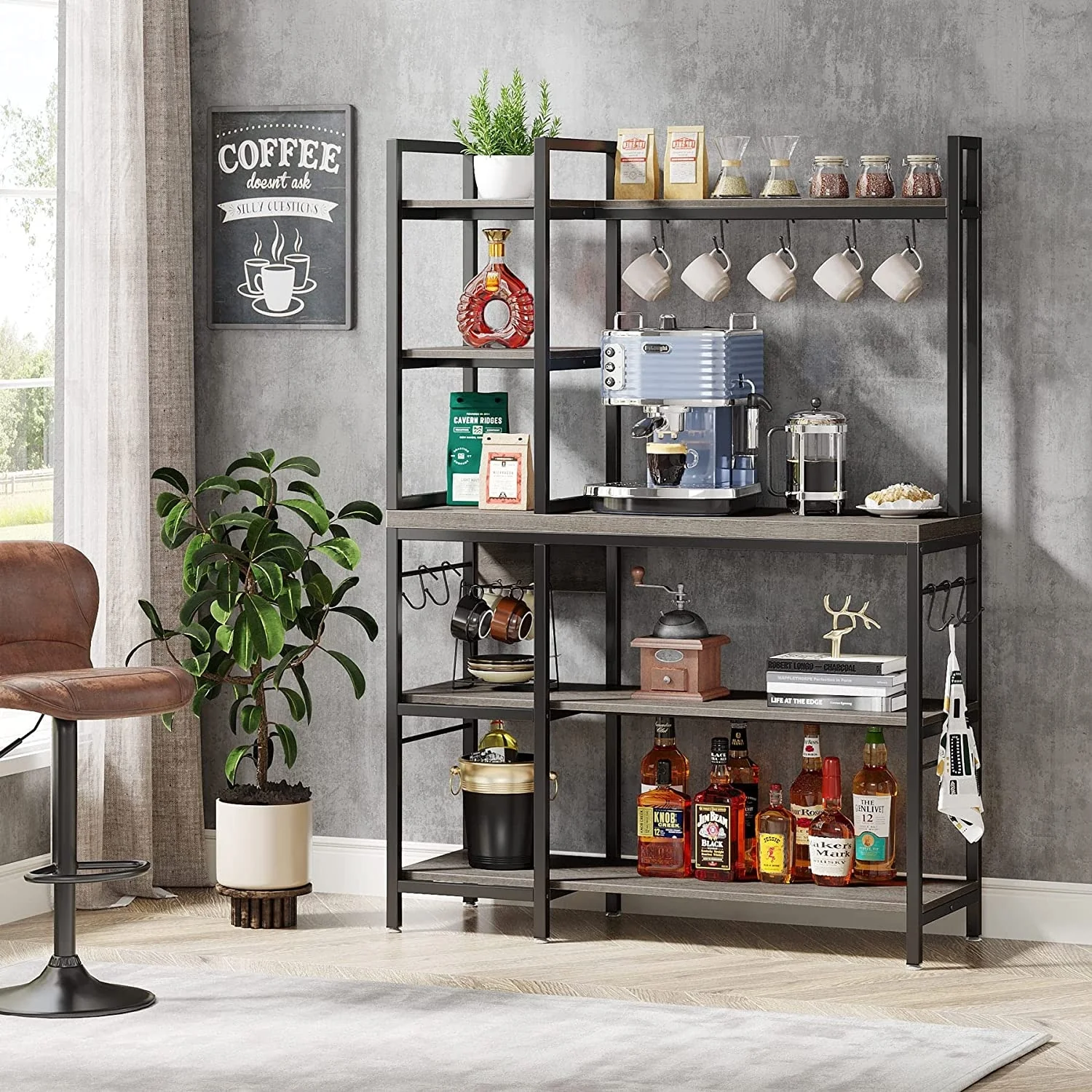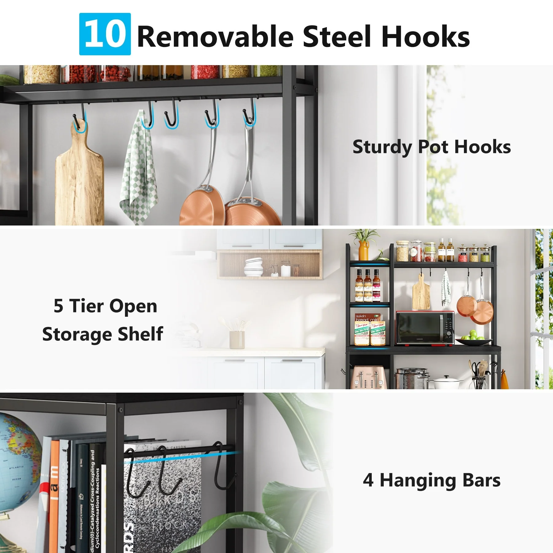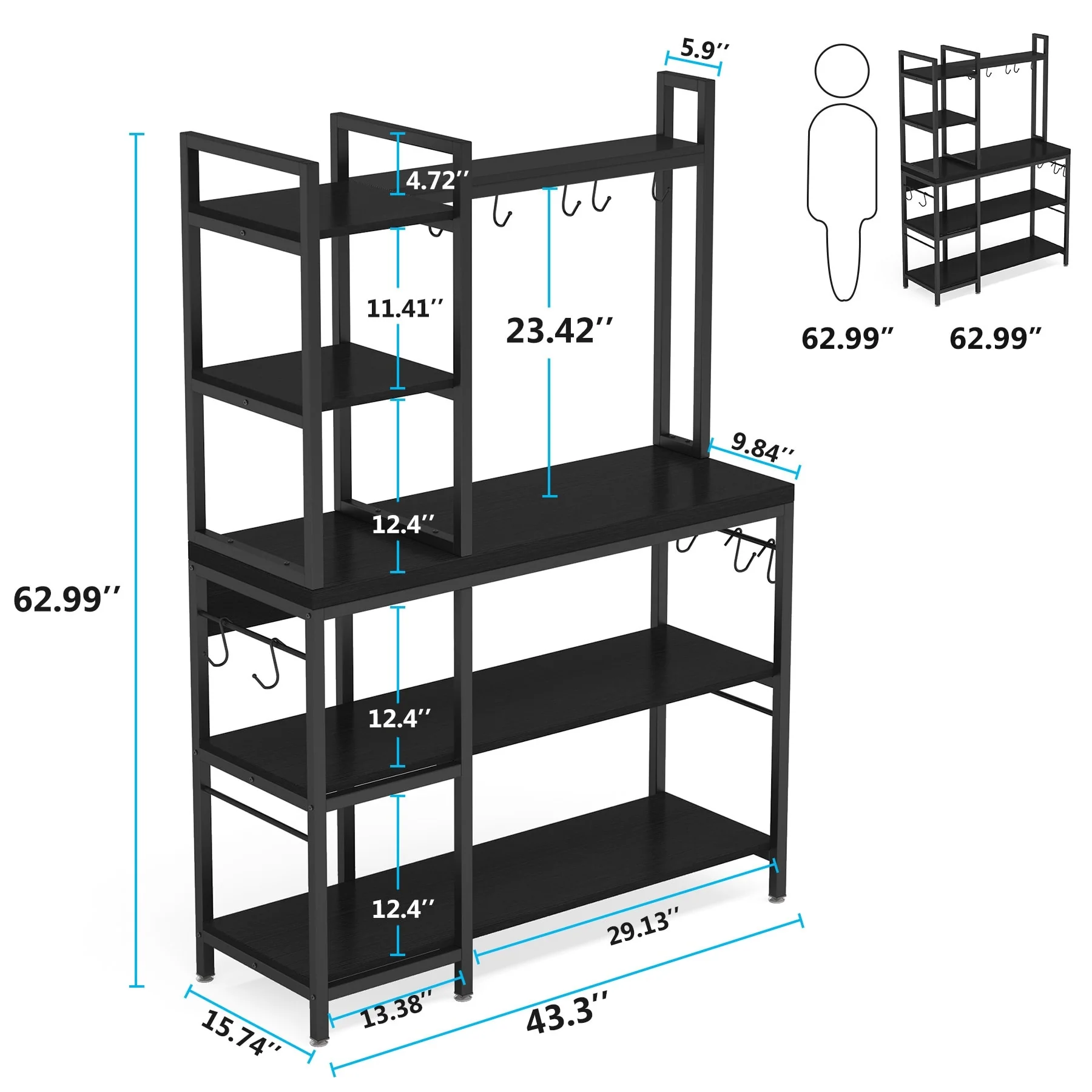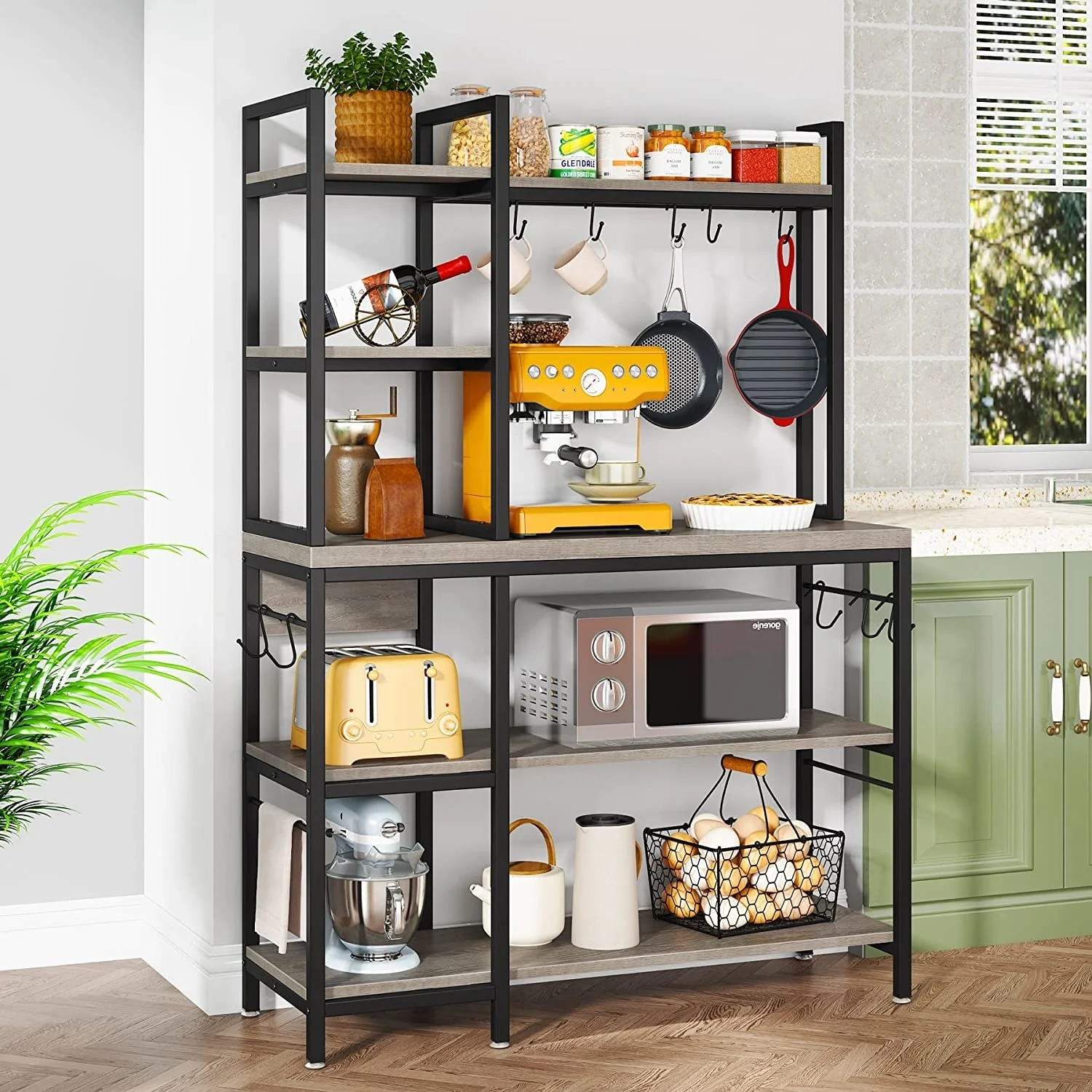 43 inch Kitchen Bakers Rack with Microwave Stand 5-Tier Kitchen Utility Storage Shelf Rack and10 Hooks for Kitchen Living Room
