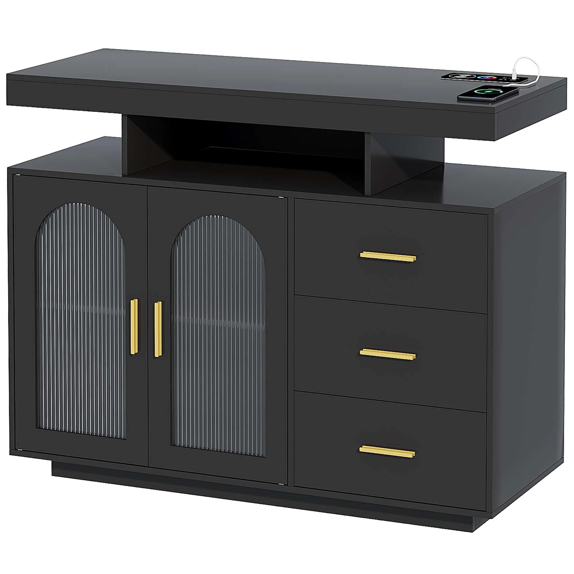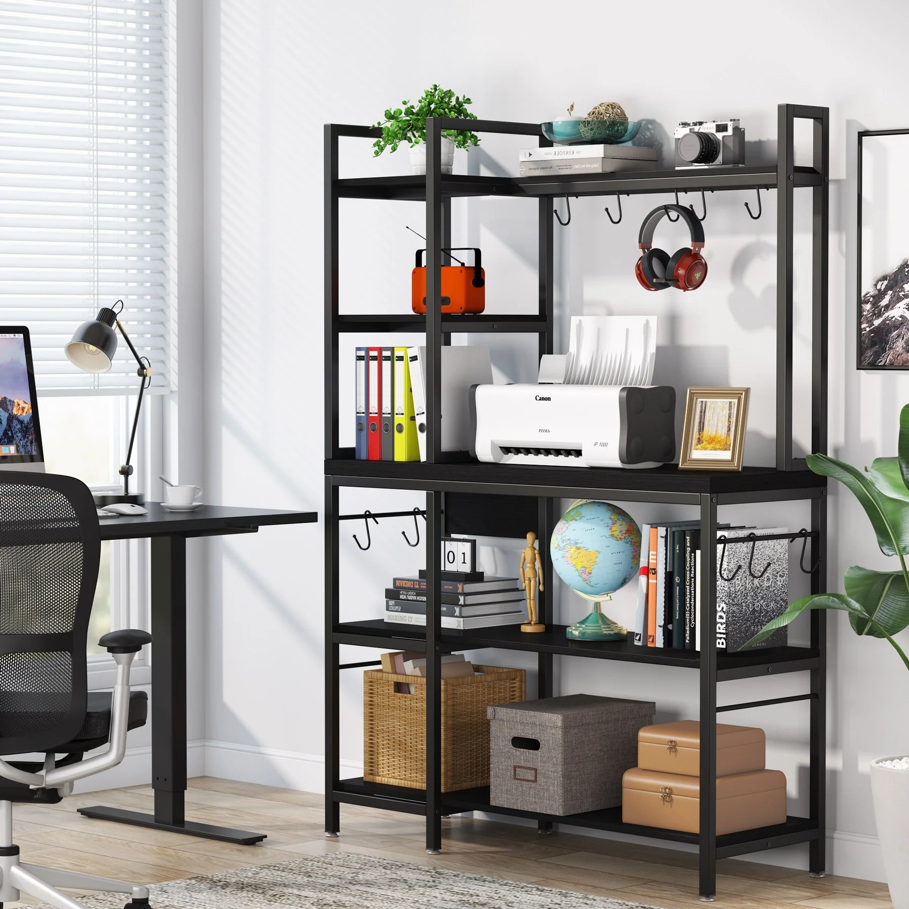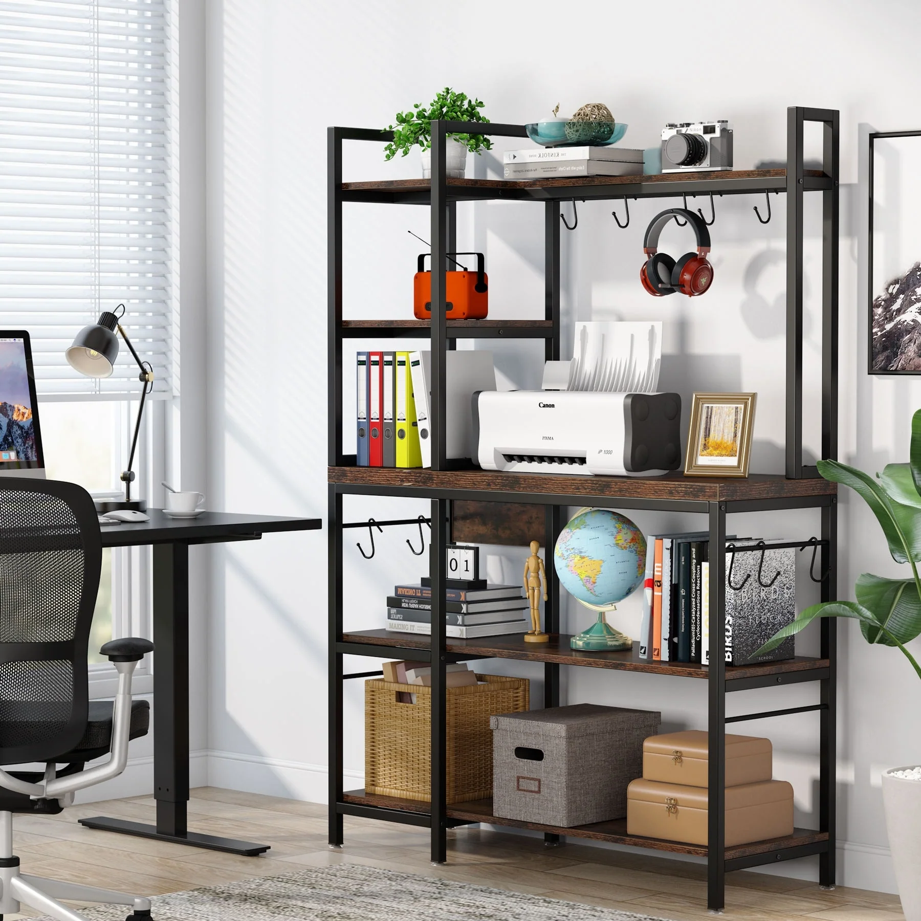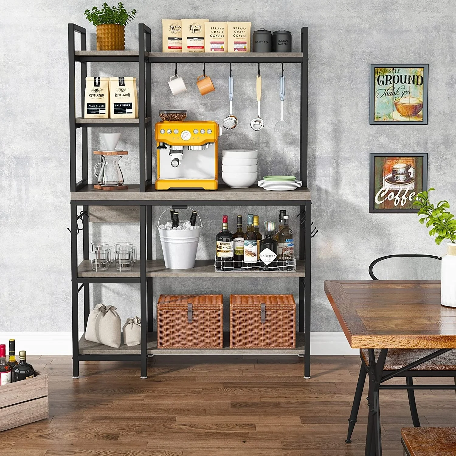 43 inch Kitchen Bakers Rack with Microwave Stand 5-Tier Kitchen Utility Storage Shelf Rack and10 Hooks for Kitchen Living Room
