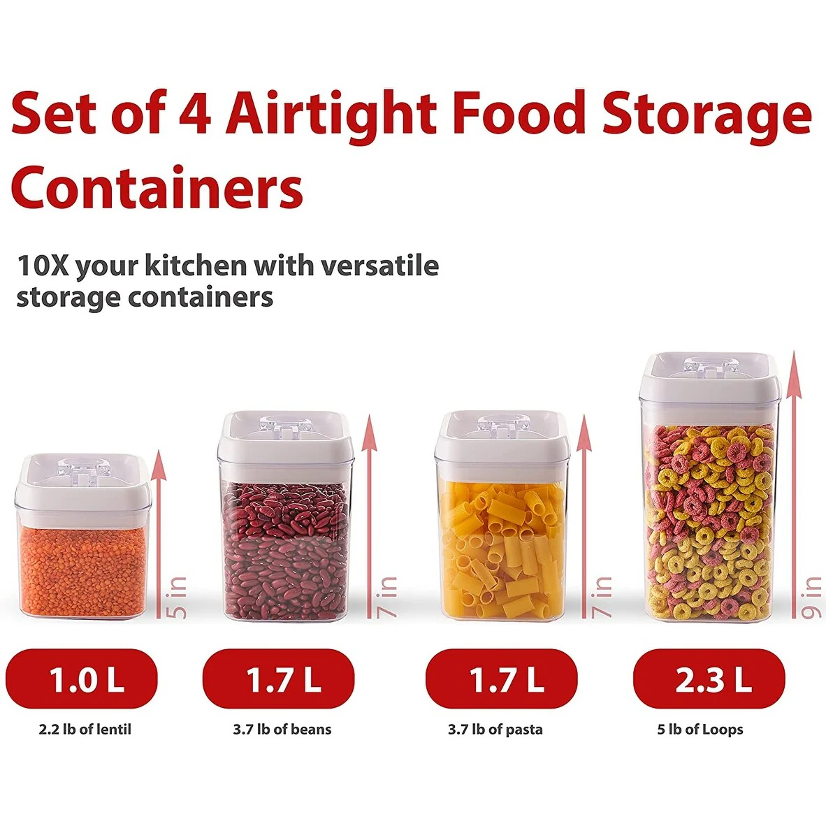 4 Pieces Set Air tight Food Storage Containers for Kitchen Pantry Organization