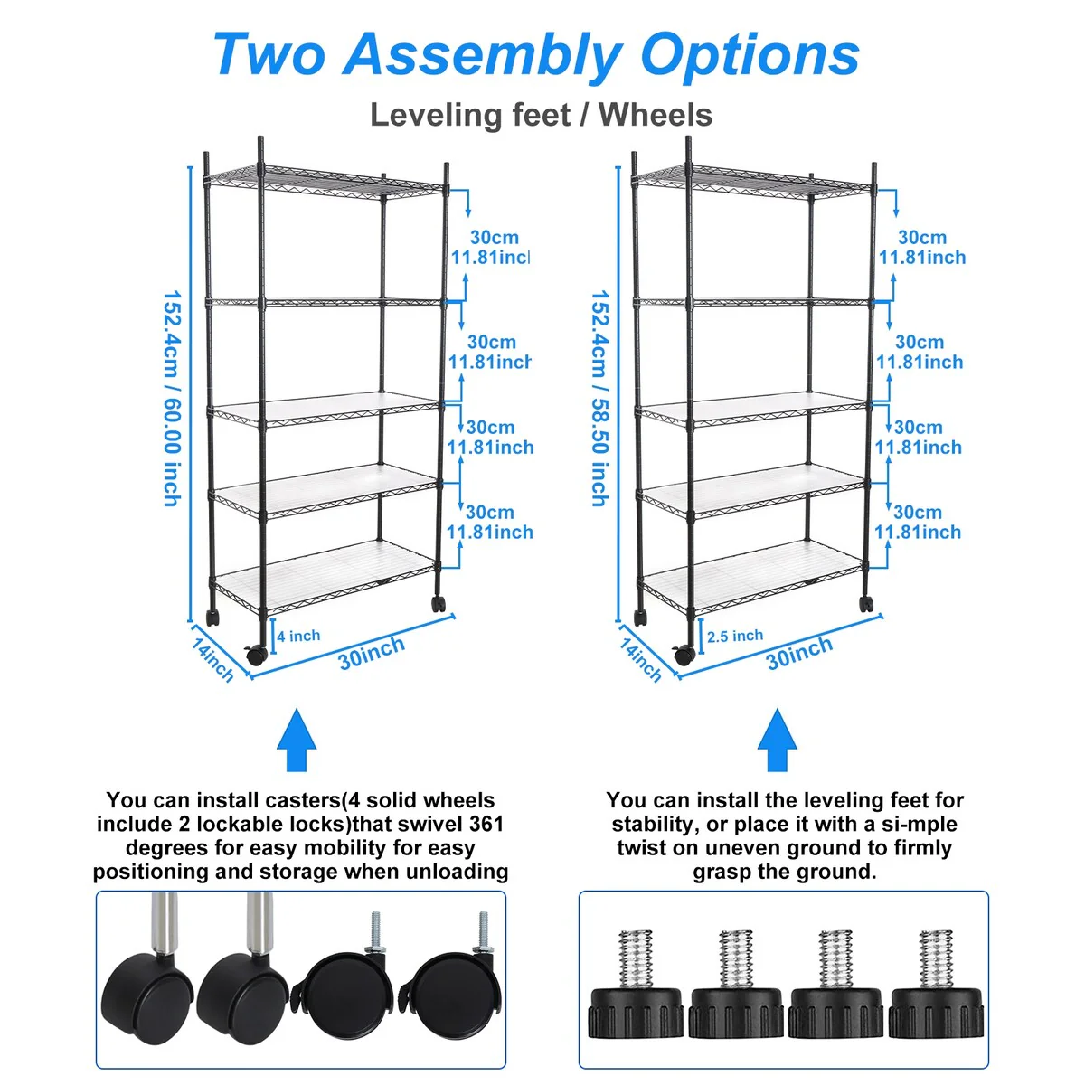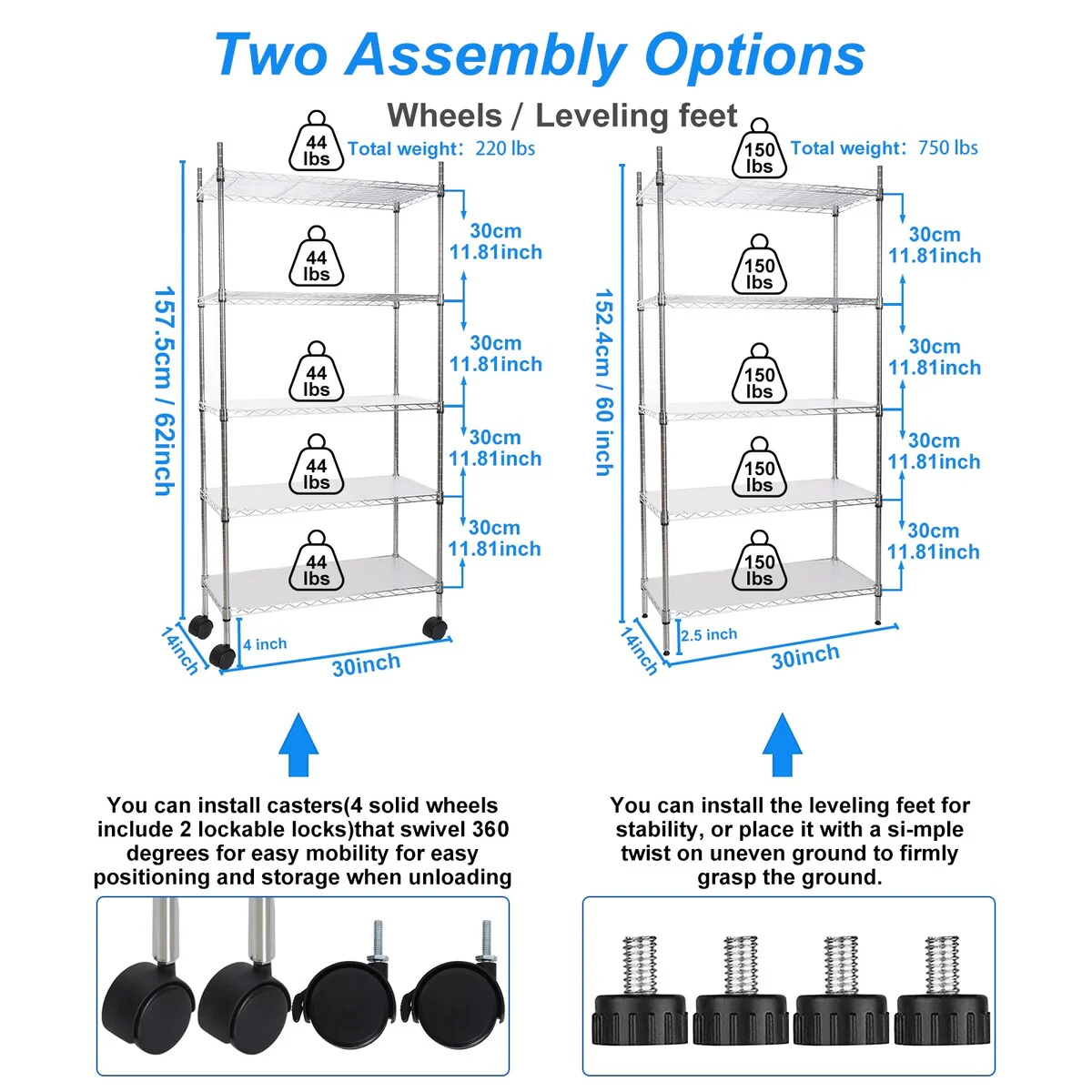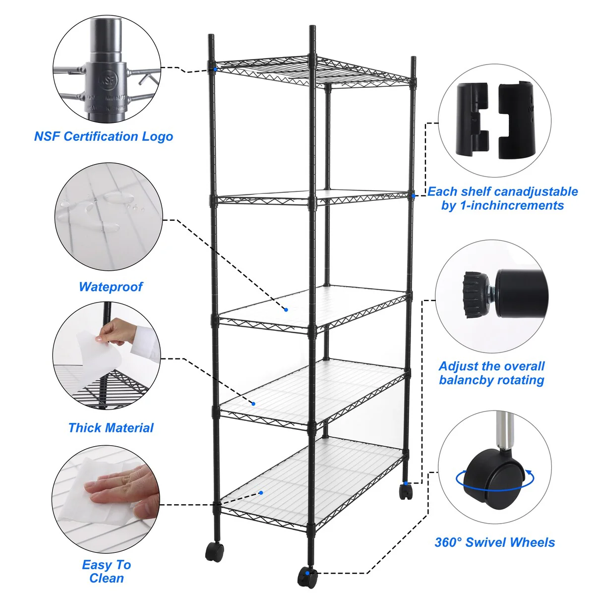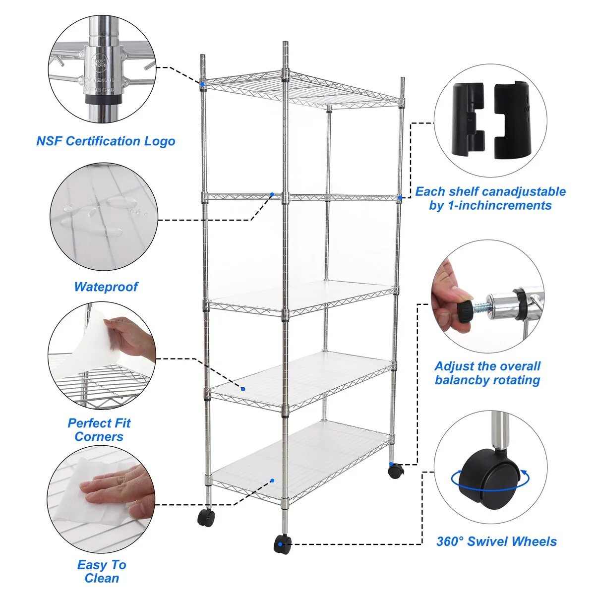 5 Tier Wire Shelving Unit, Heavy Duty Metal Large Storage Shelves Height Adjustable for Garage Kitchen Office