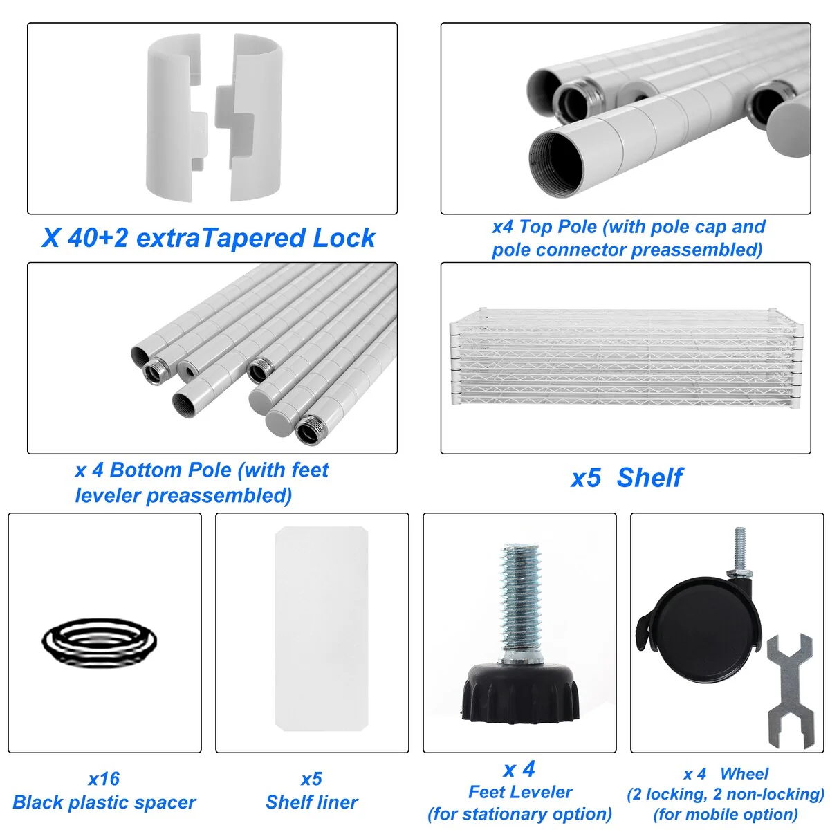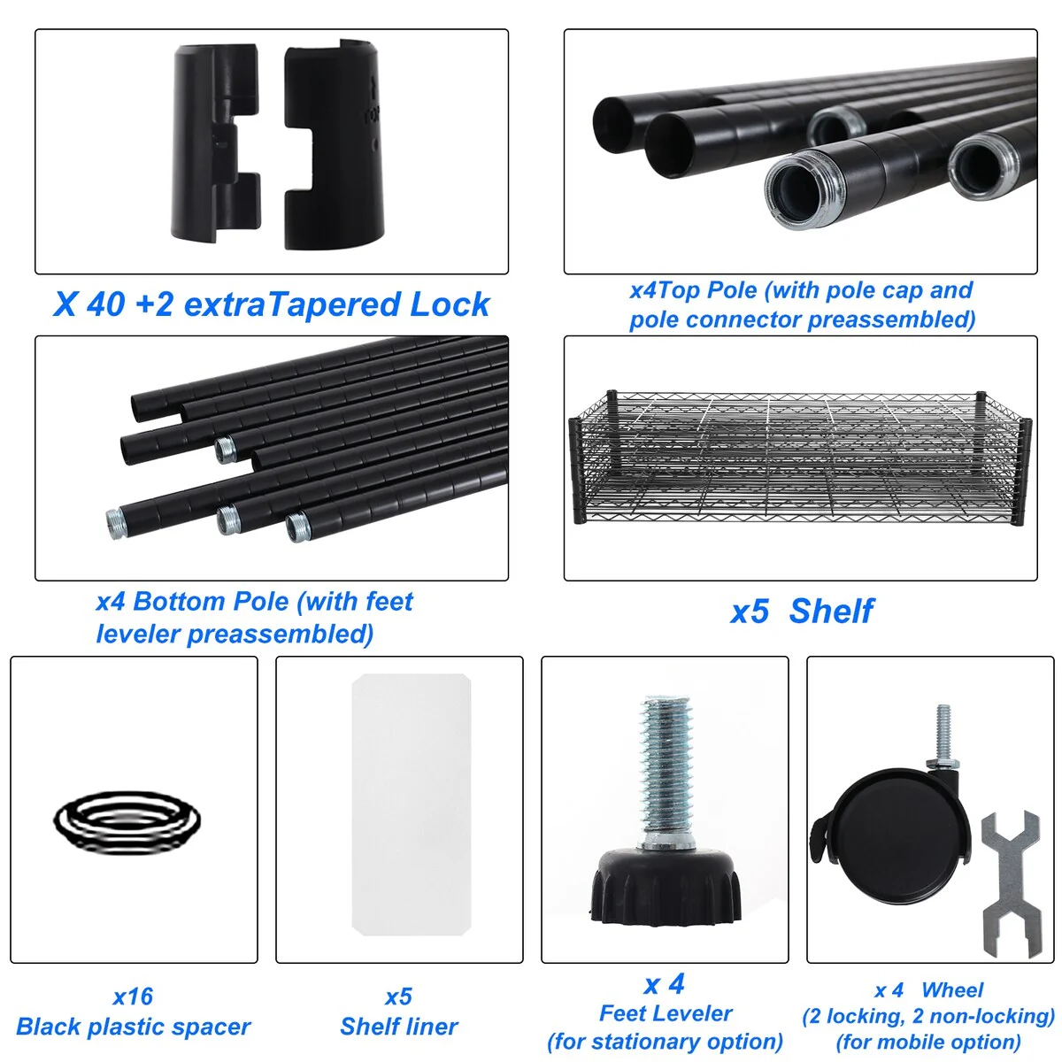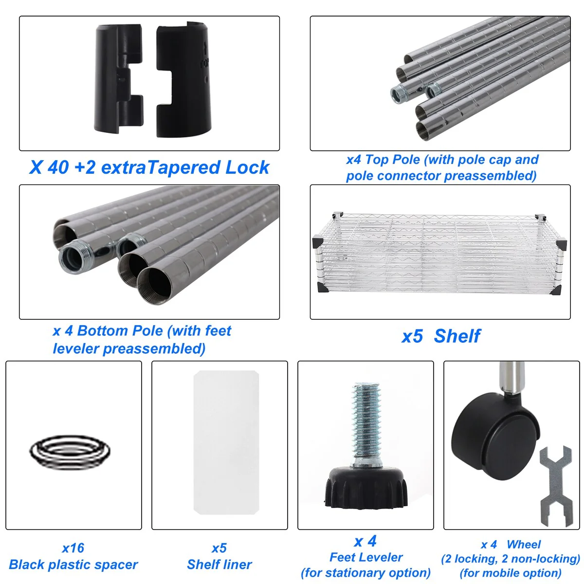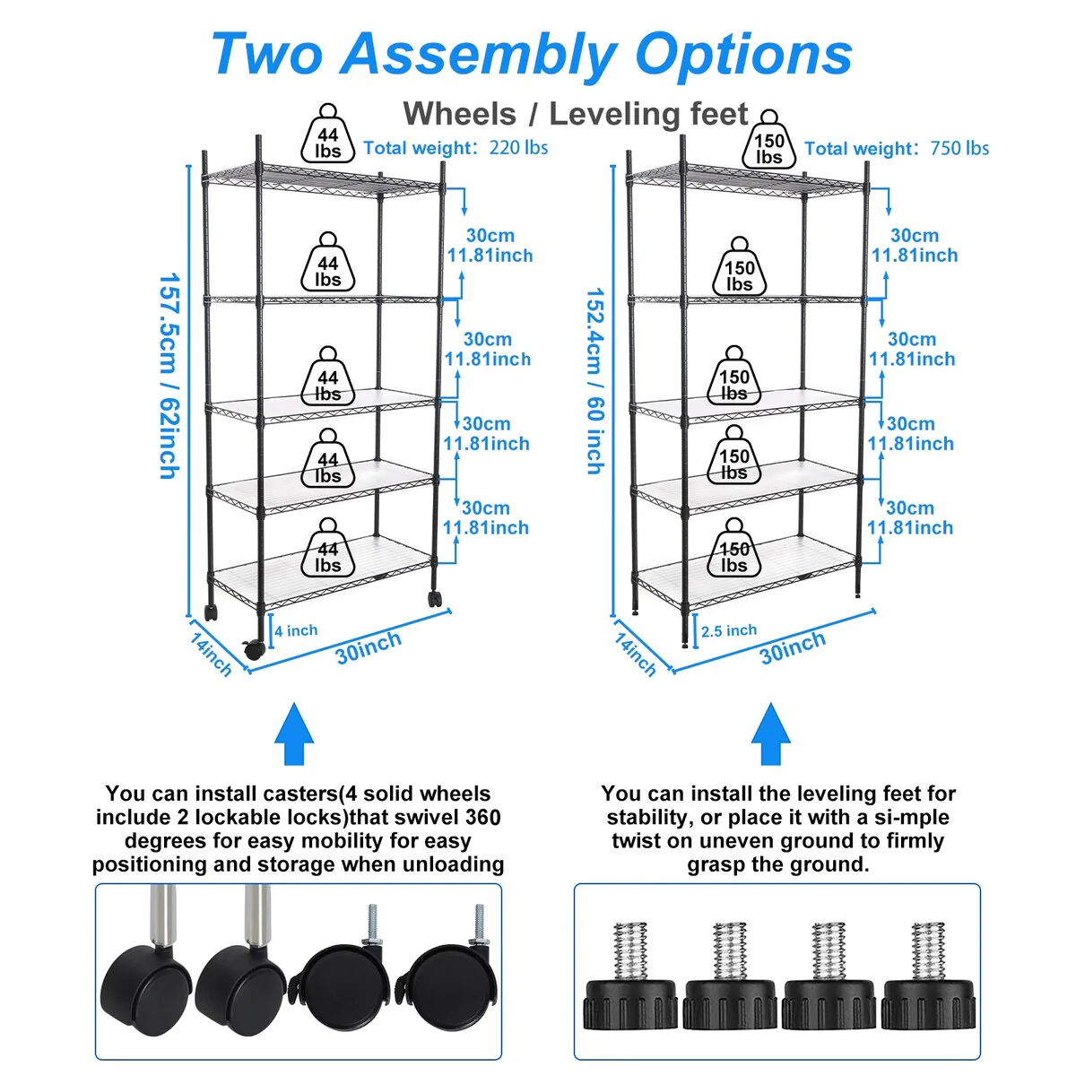 5 Tier Wire Shelving Unit, Heavy Duty Metal Large Storage Shelves Height Adjustable for Garage Kitchen Office