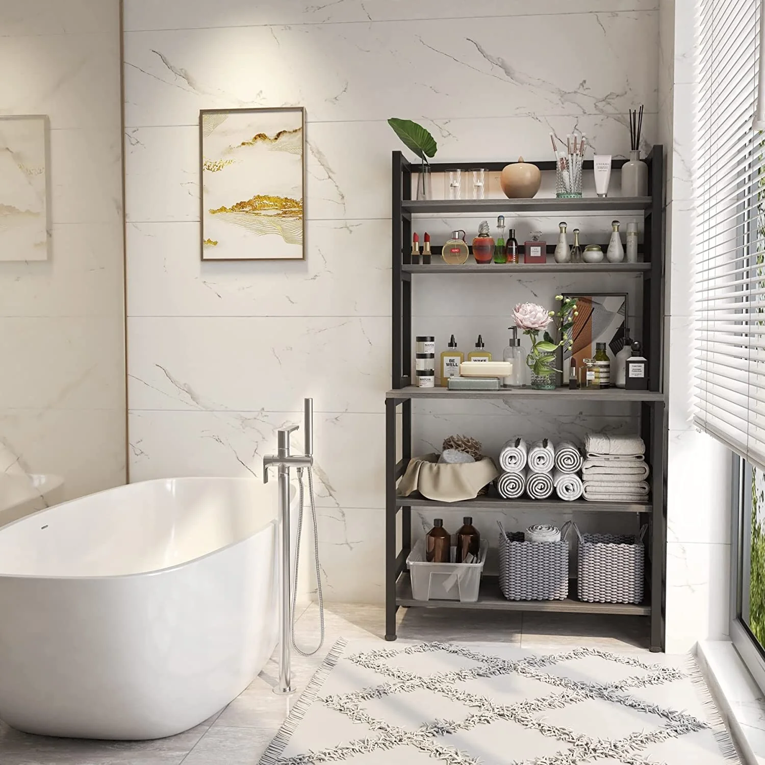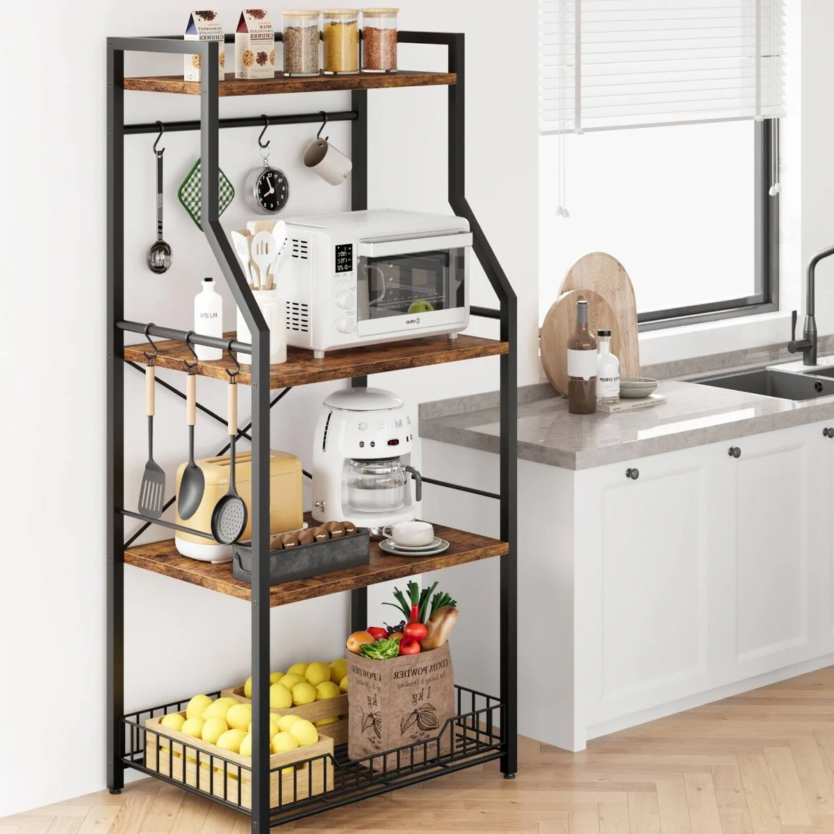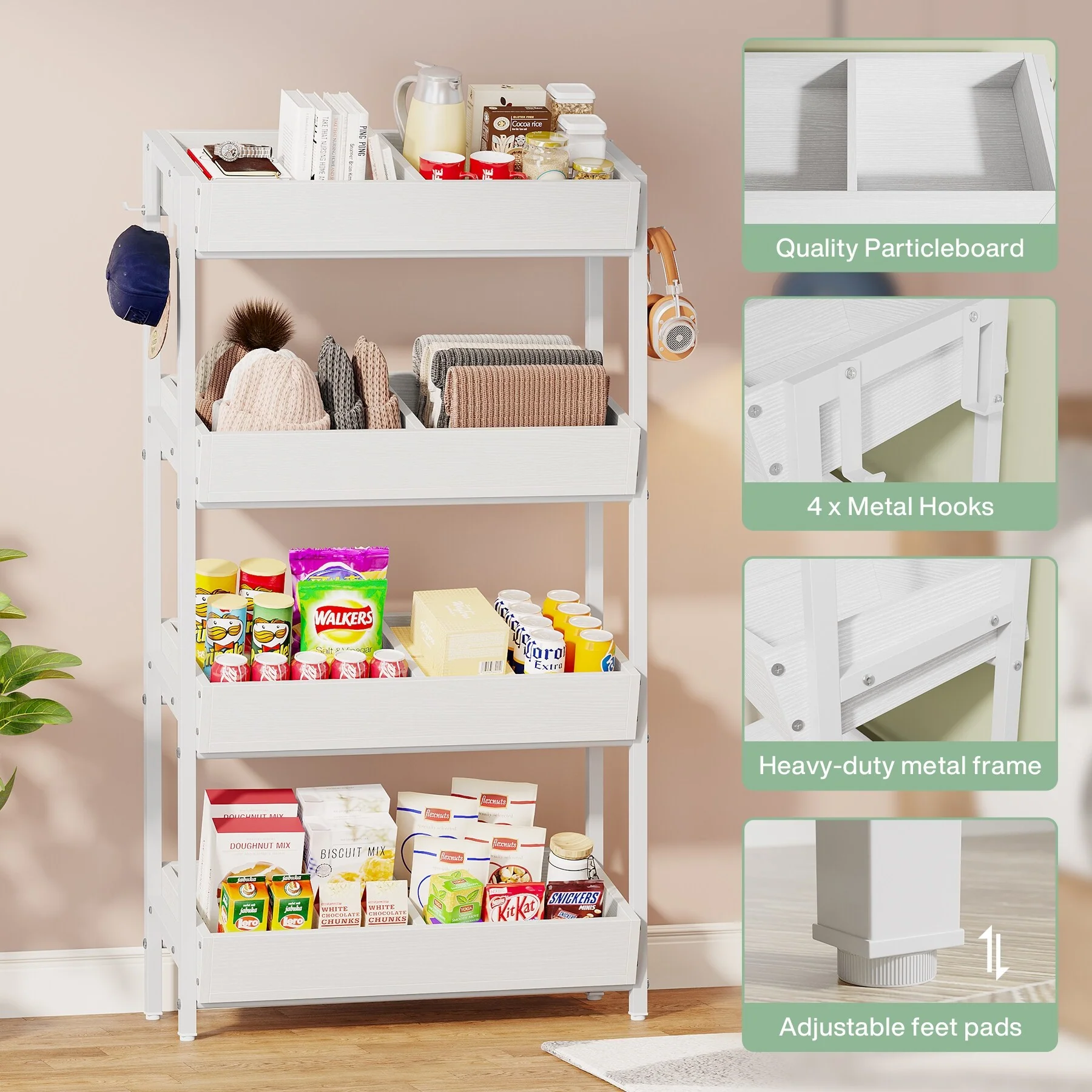 4-Tier Wood Fruit Vegetable Storage Rack Stand Stackable Fruit Basket Organizer Rack for Kitchen
