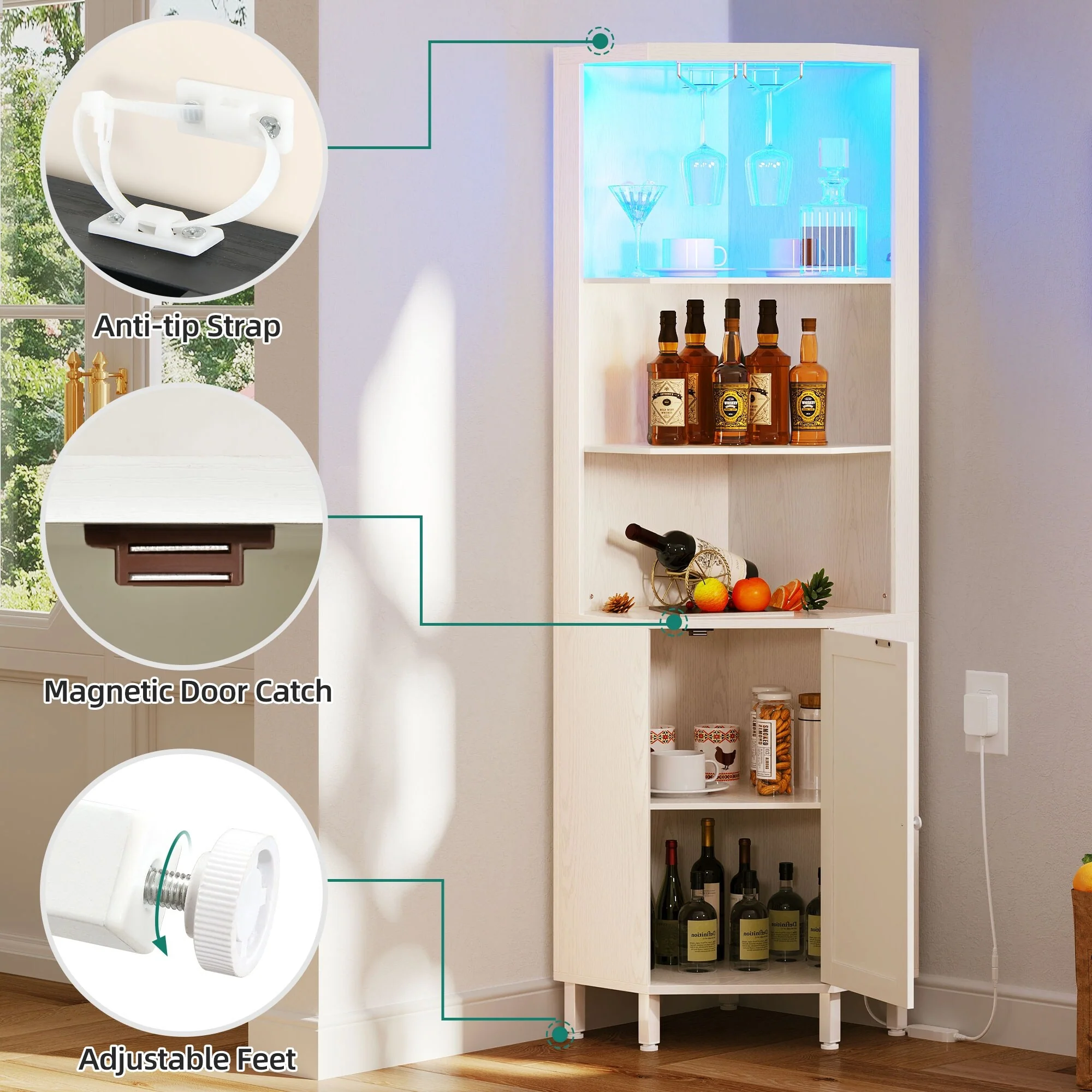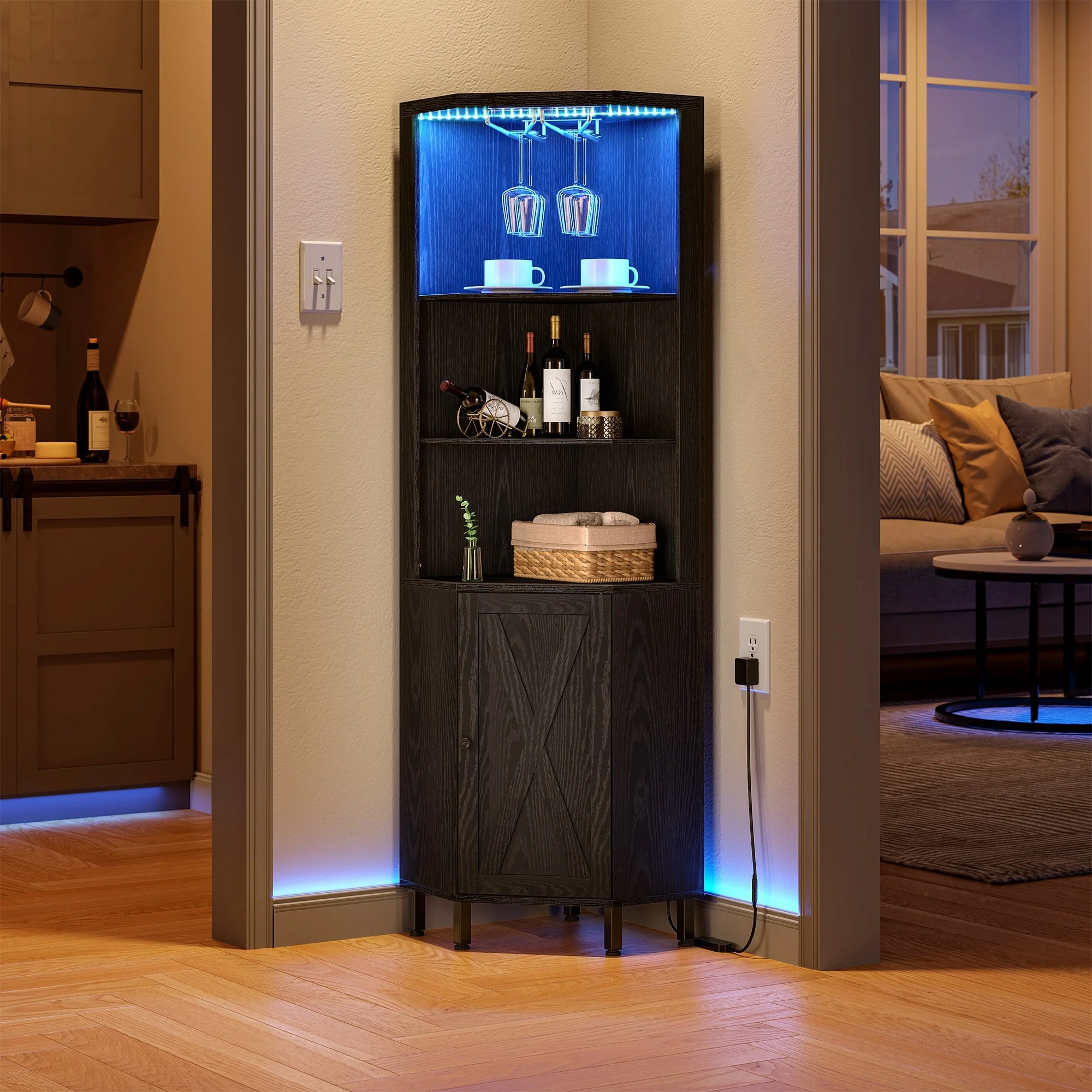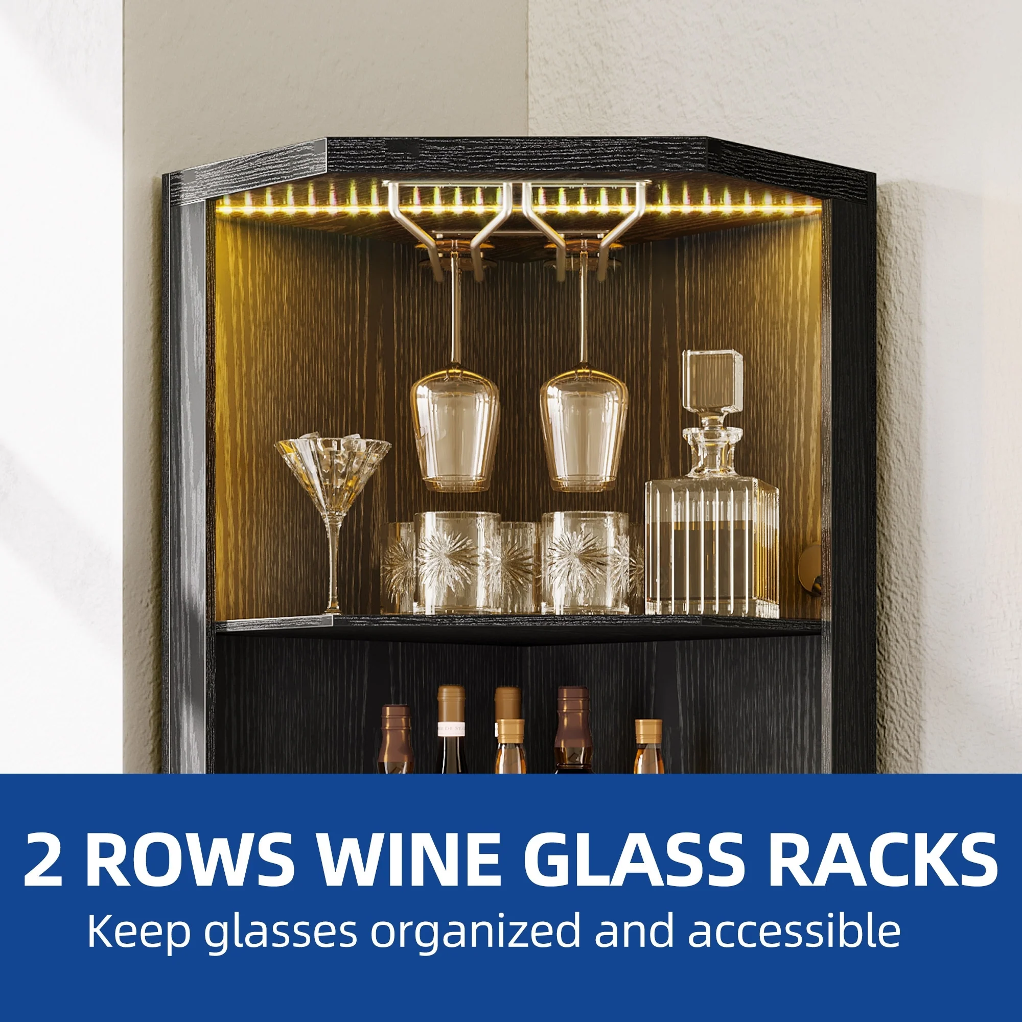 5 Tiers Corner Bar Cabinet Wine Rack Display Shelves with LED Lights and Glass Holder