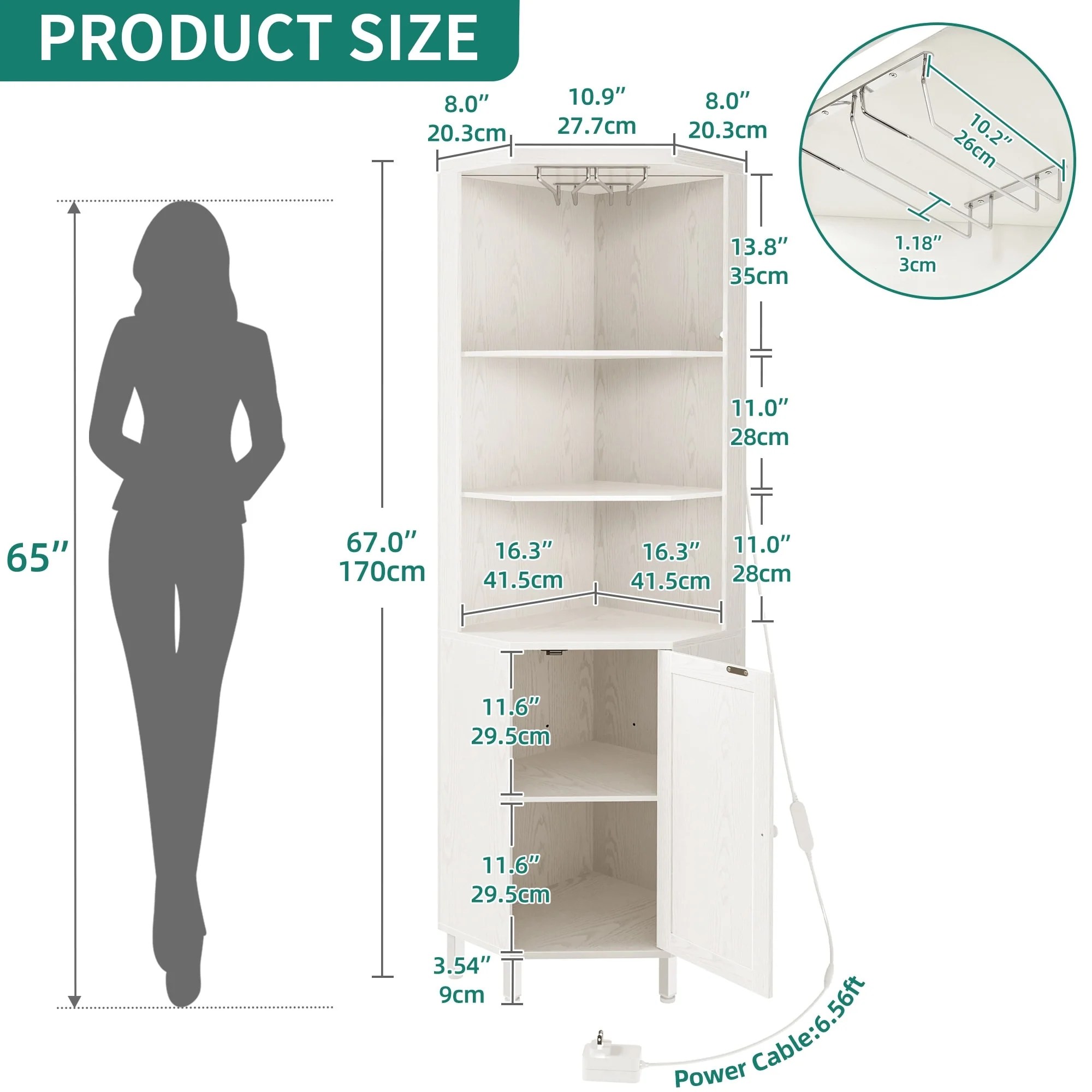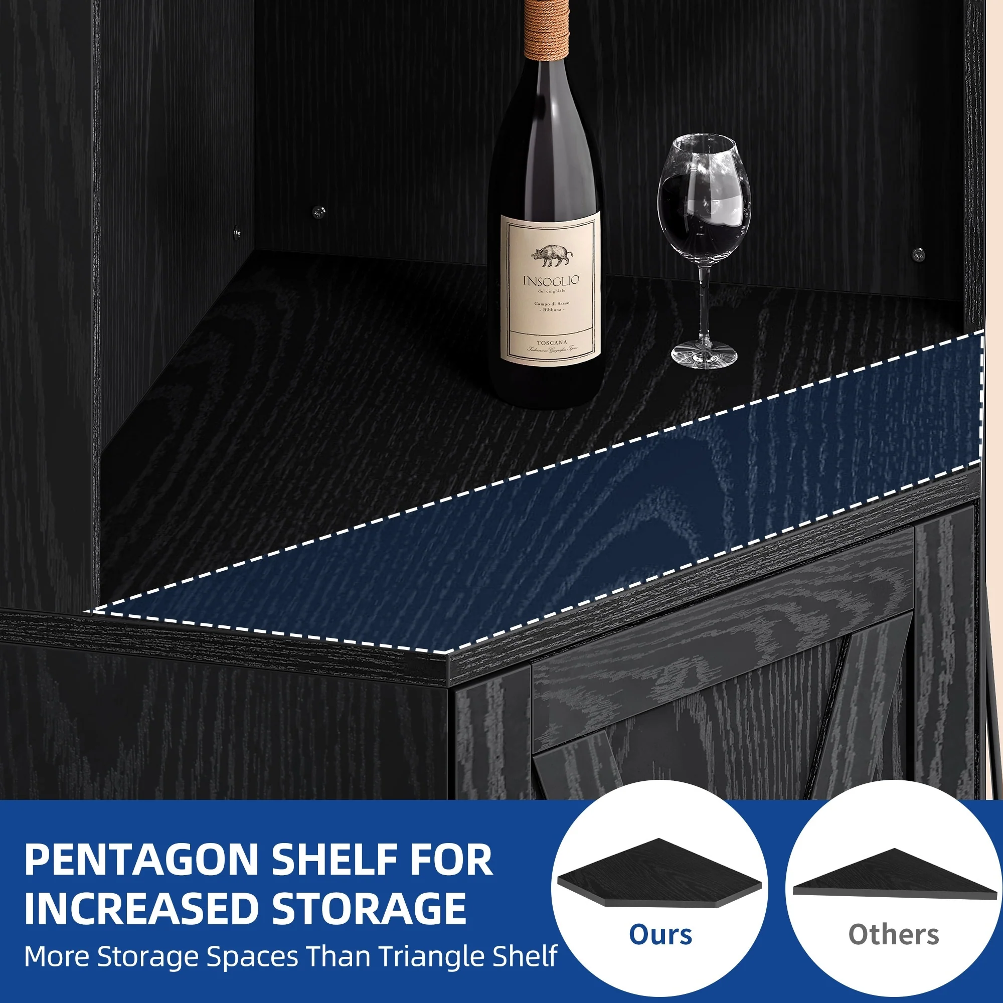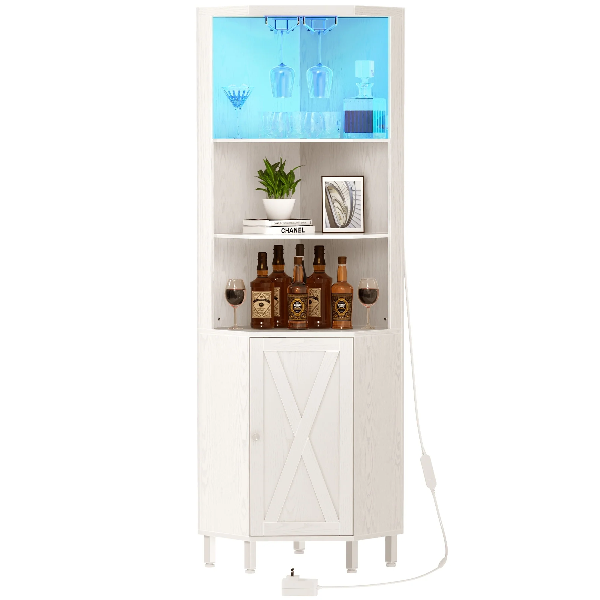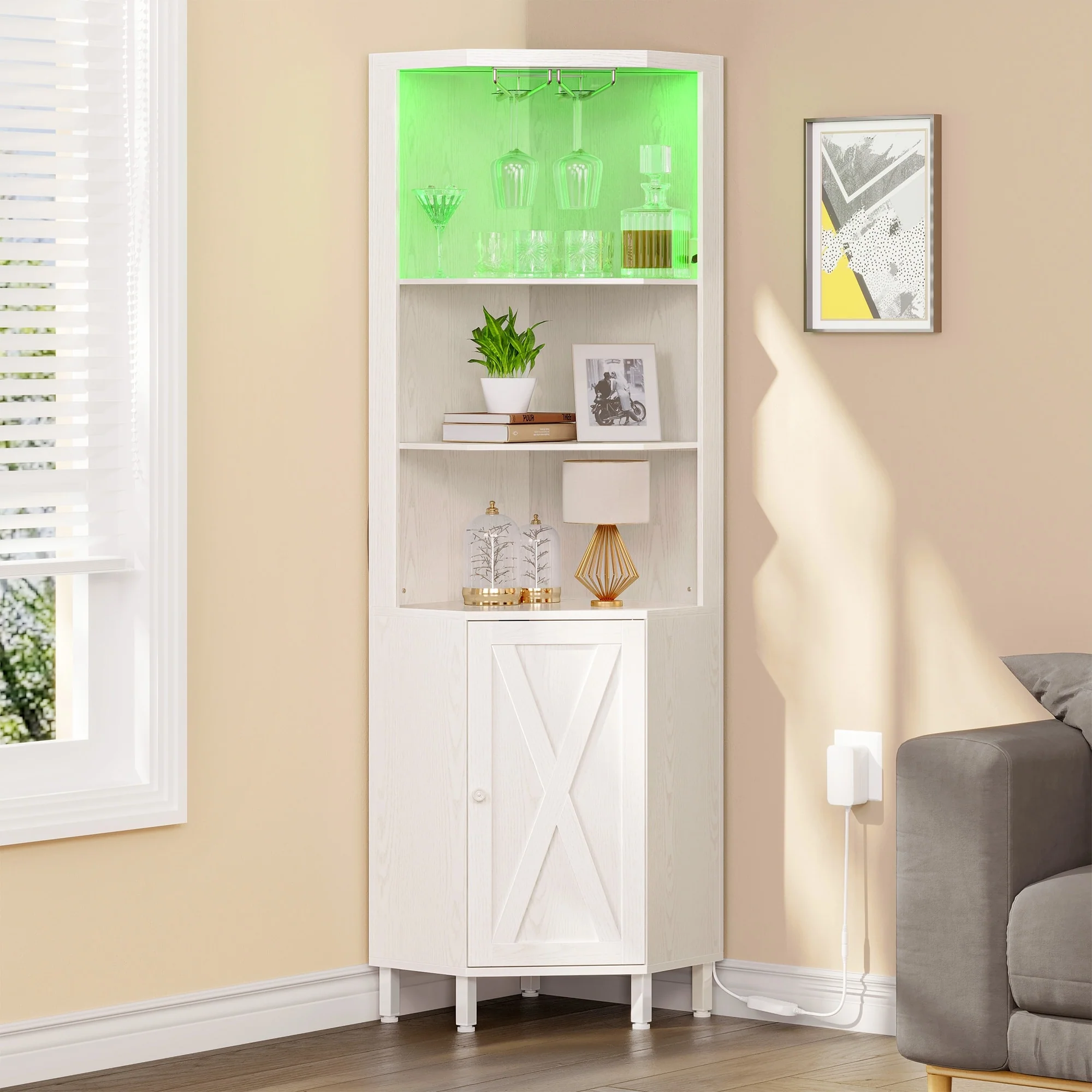 5 Tiers Corner Bar Cabinet Wine Rack Display Shelves with LED Lights and Glass Holder