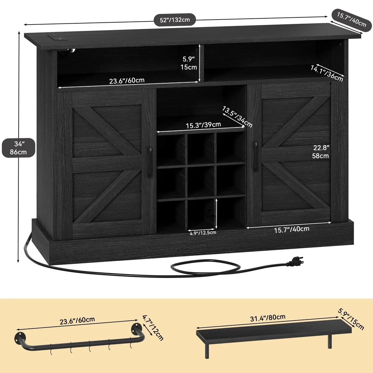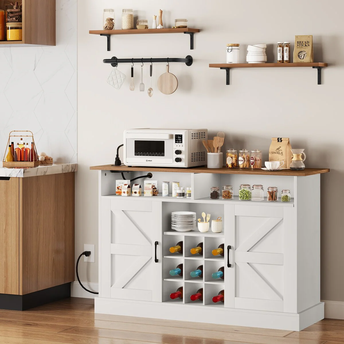 52"Farmhouse Coffee Bar Cabinet with Floating Shelf - 15.75"D x 52"W x 34"H