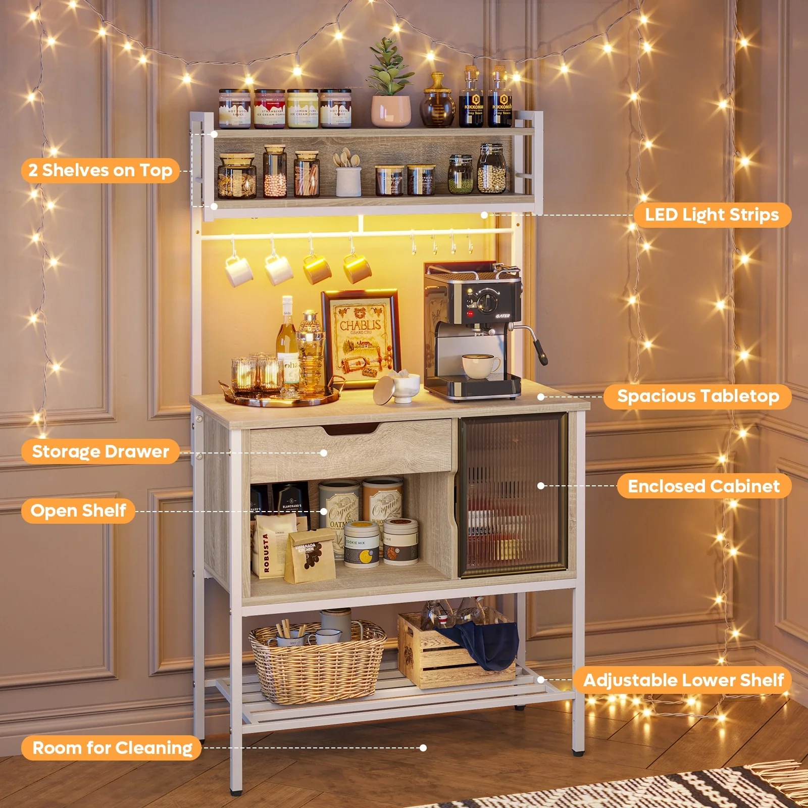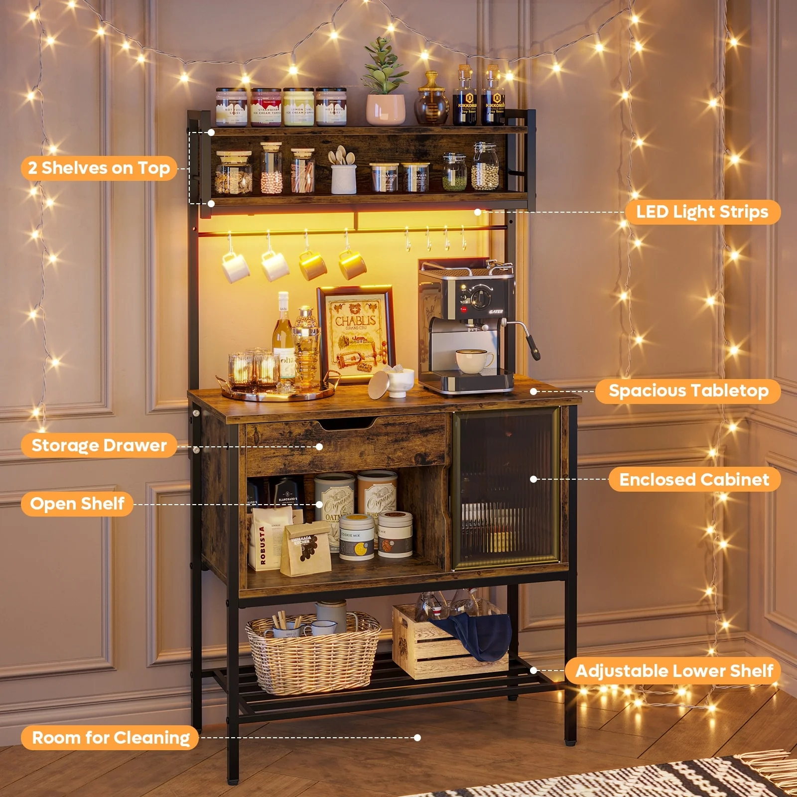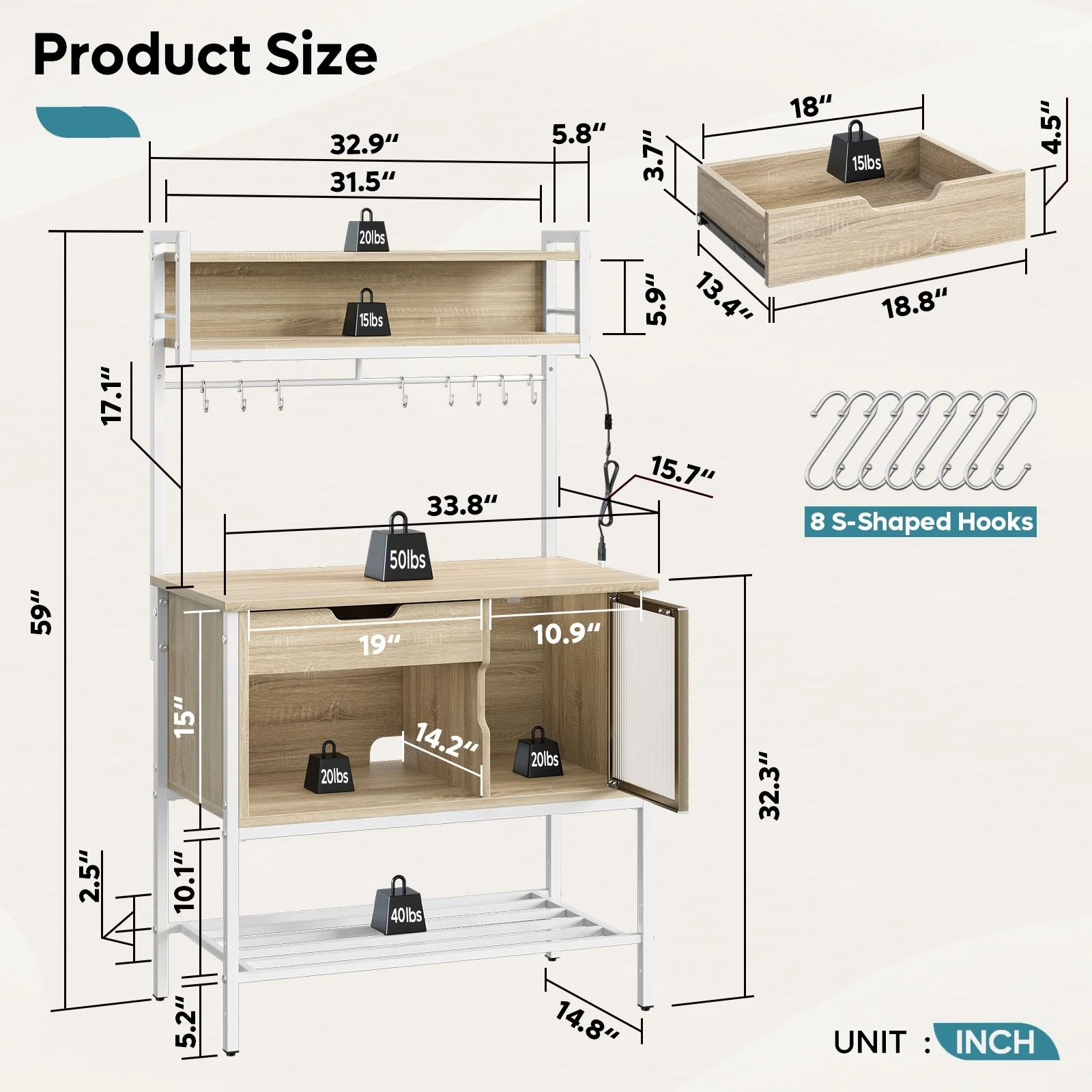 59 Inch LED Bakers rack, Kitchen Baker's Rack With hooks and Adjustable Shelf - 59″H×33.8″W