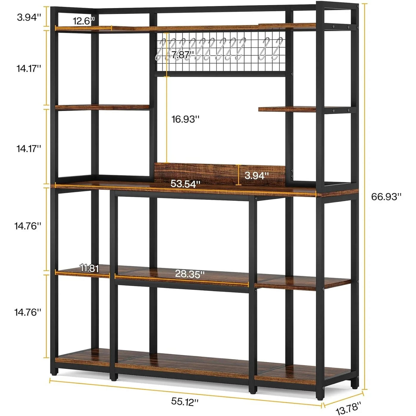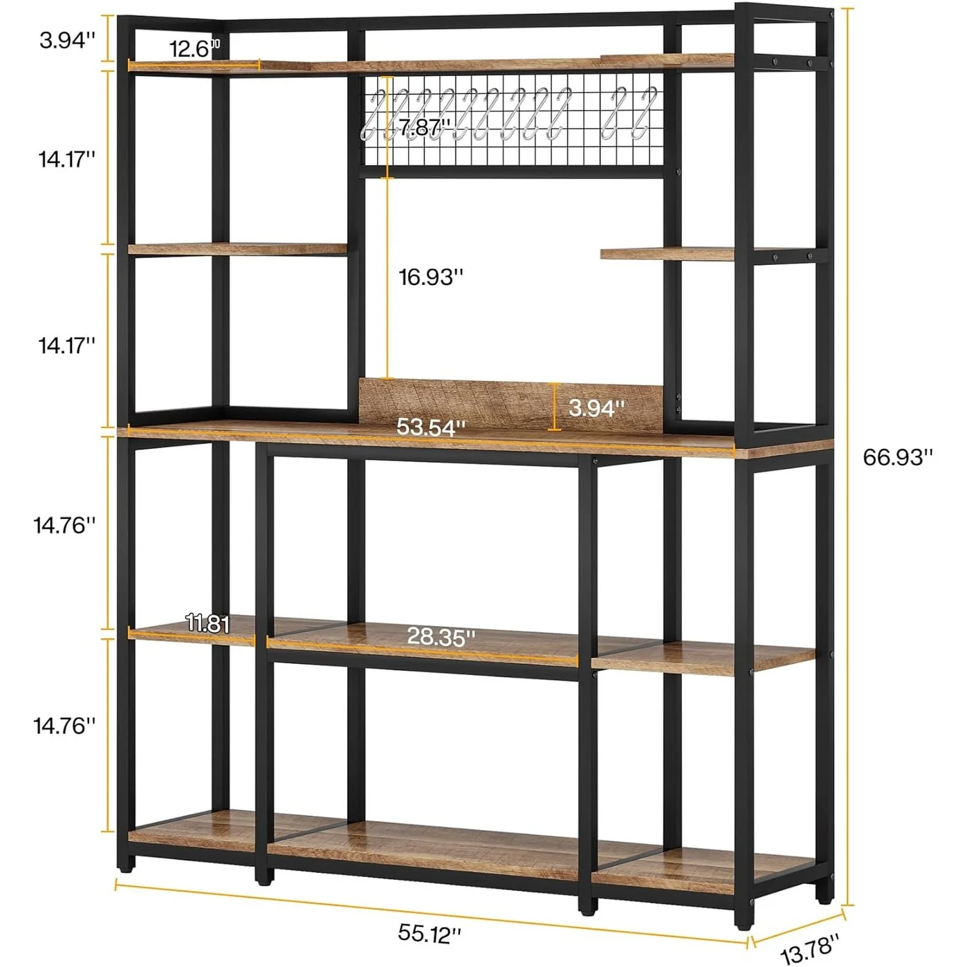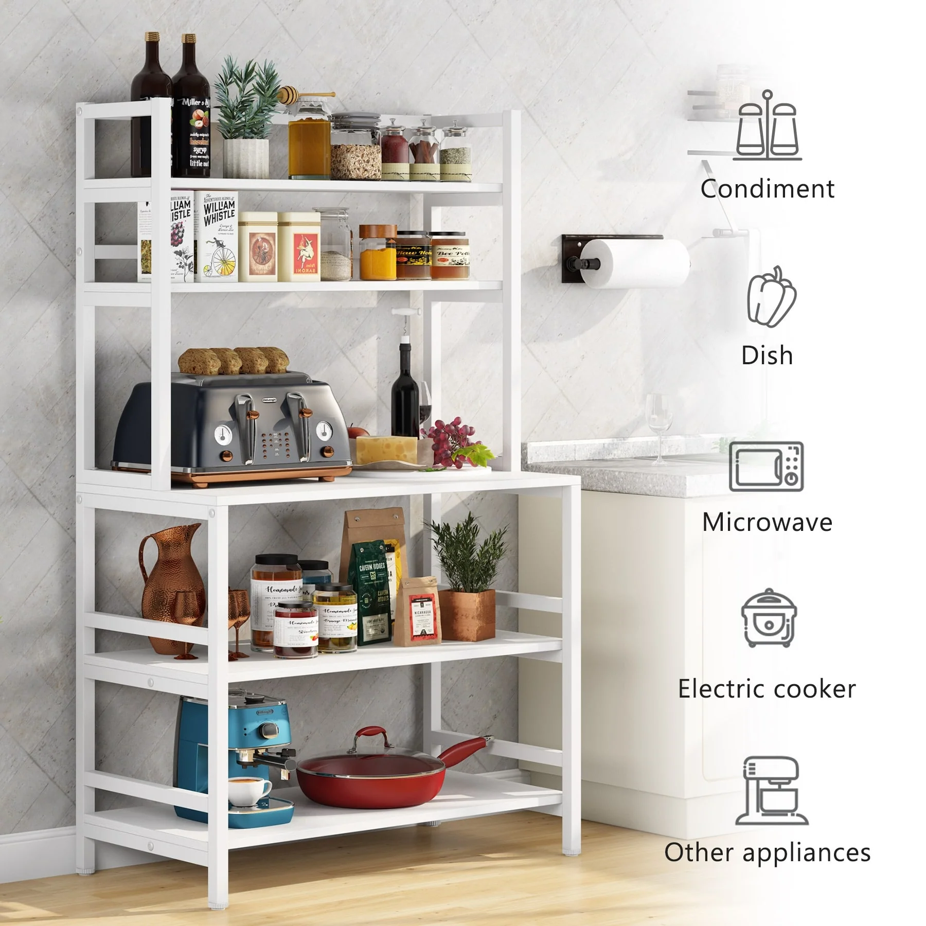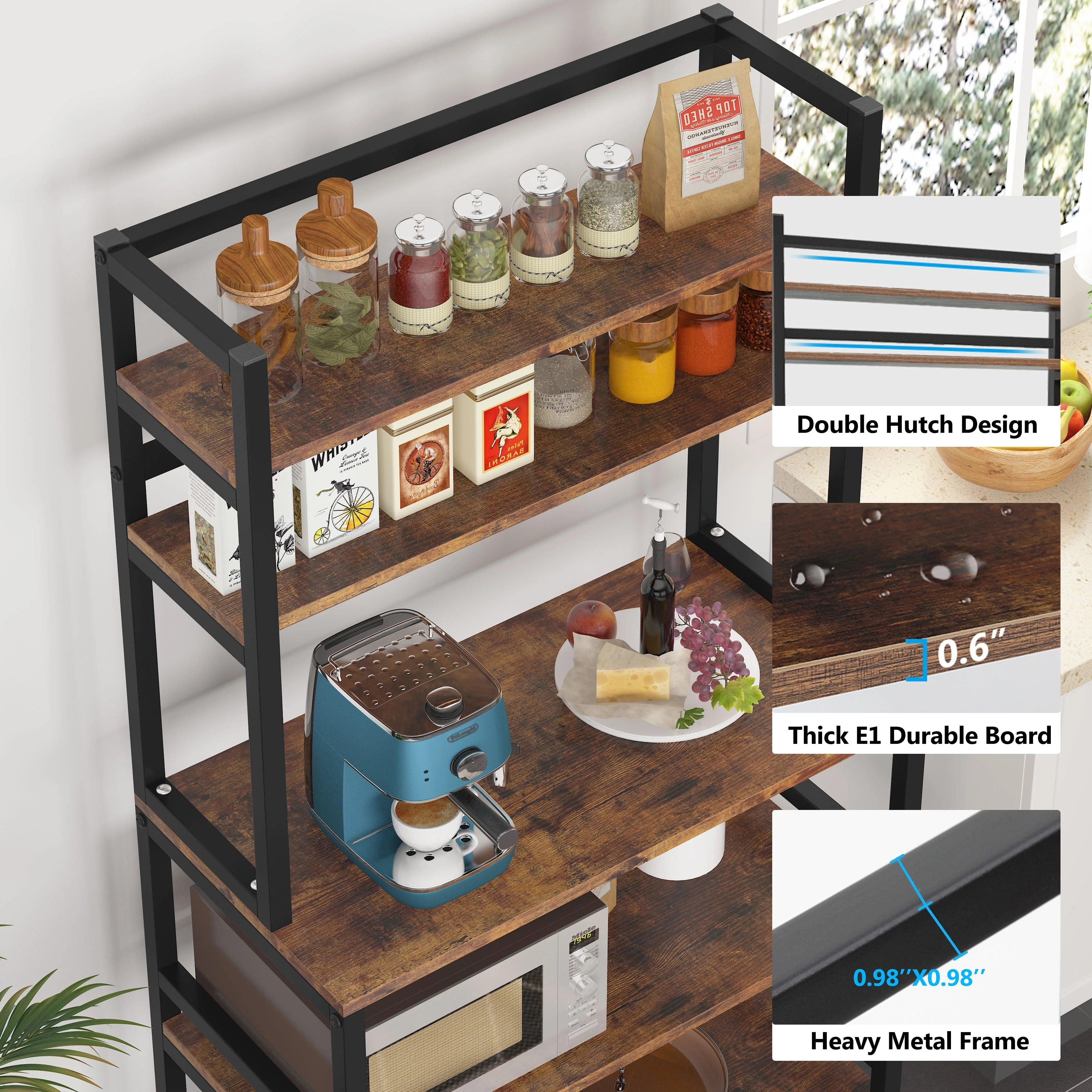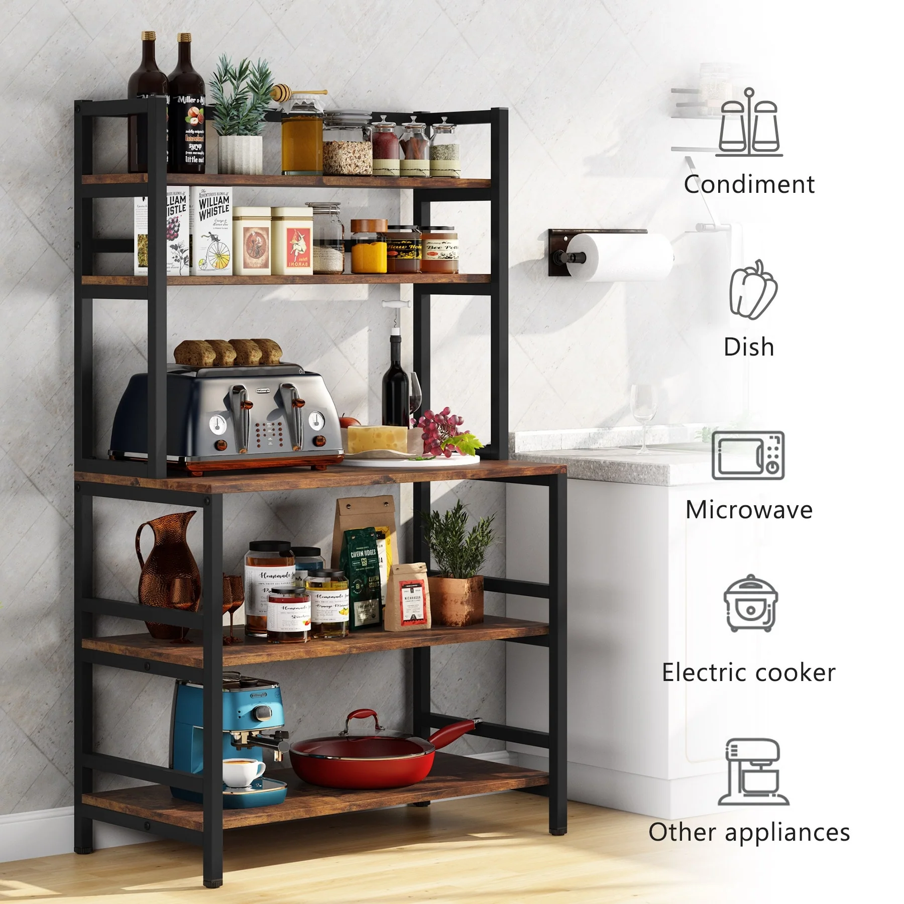 5-Tier Kitchen Bakers Rack Utility Storage Shelf Microwave Oven Stand, Industrial Microwave Cart Kitchen Stand with Hutch