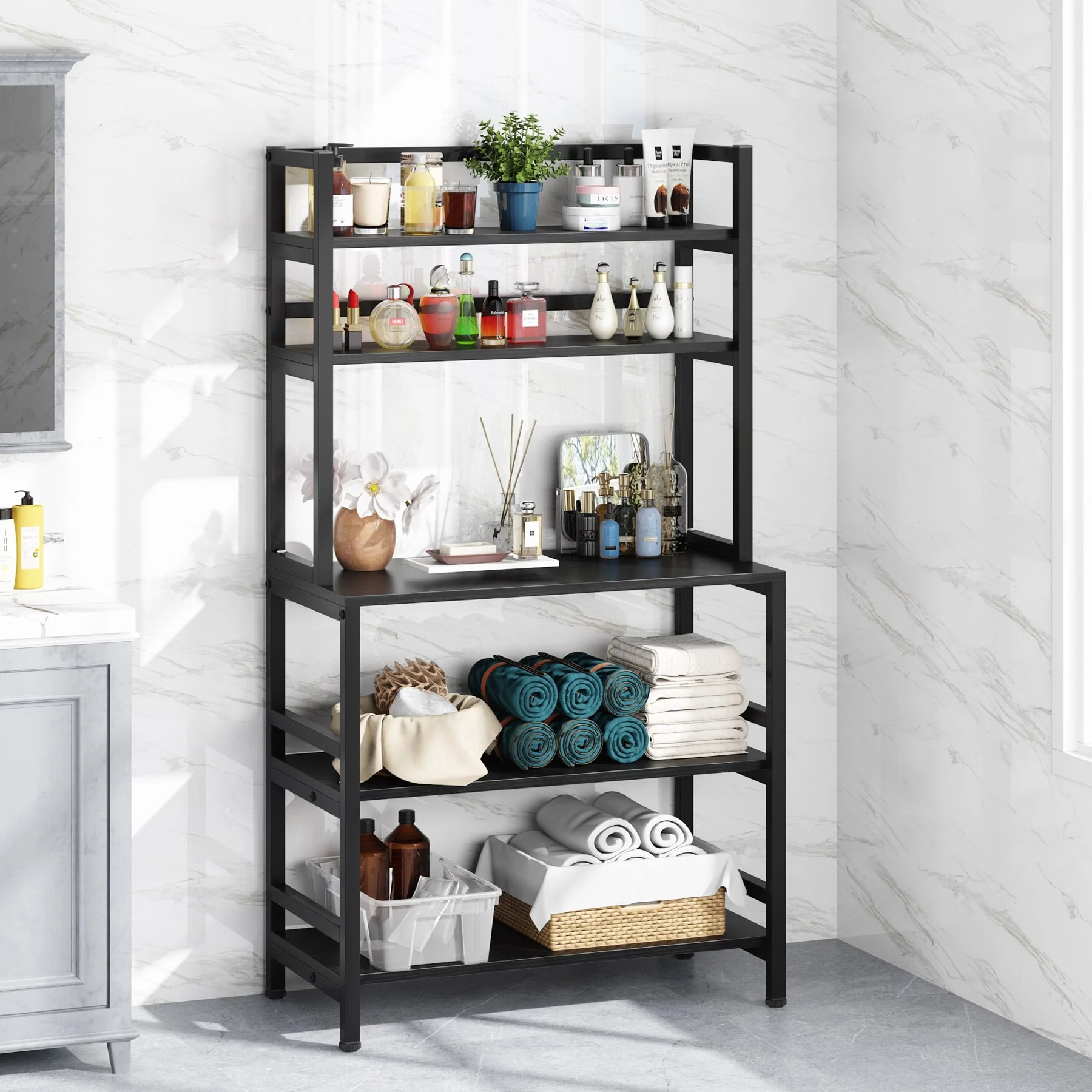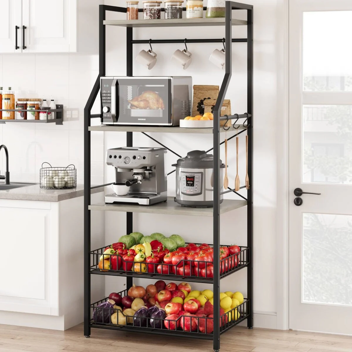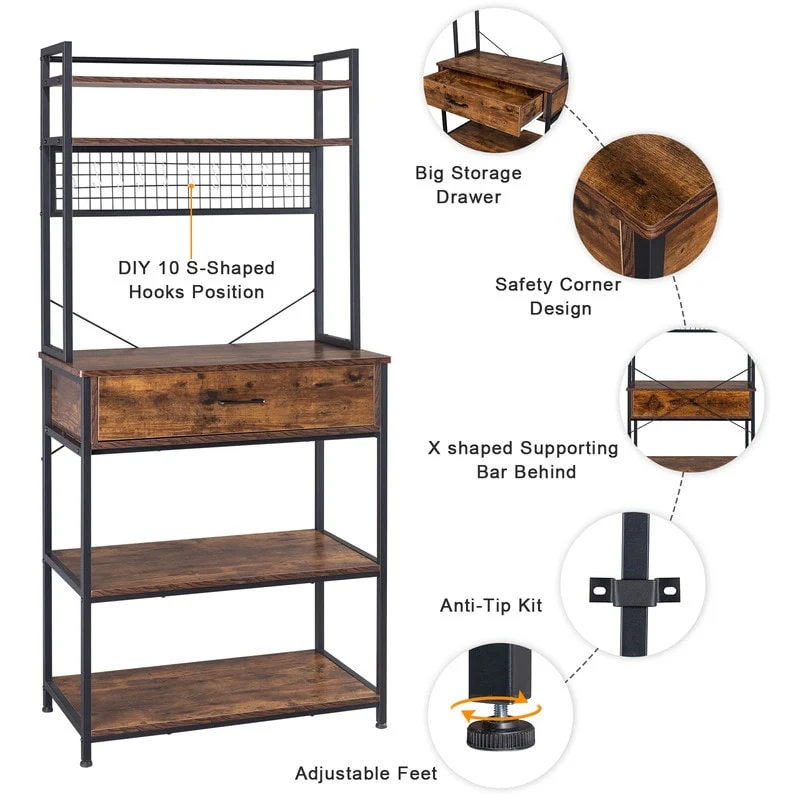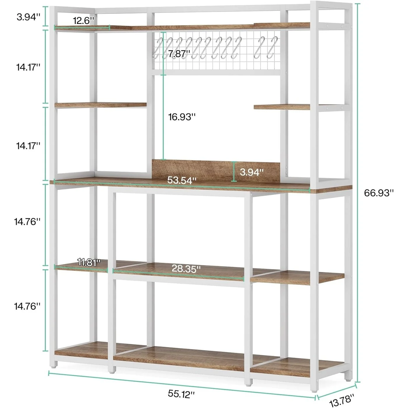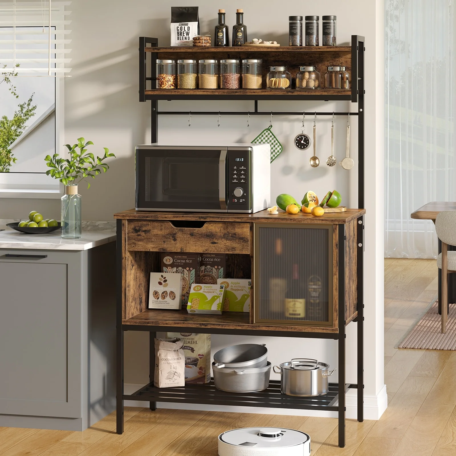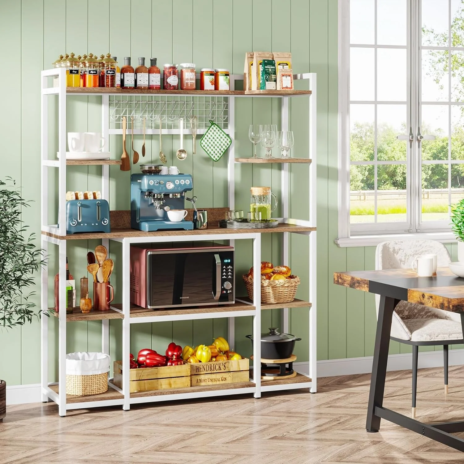 5-Tier Kitchen Bakers Rack Utility Storage Shelf Microwave Oven Stand, Industrial Microwave Cart Kitchen Stand with Hutch