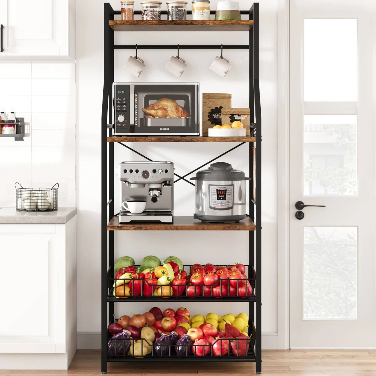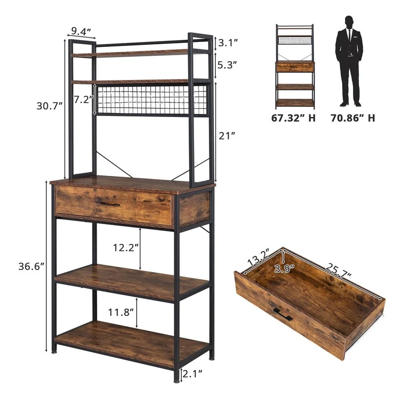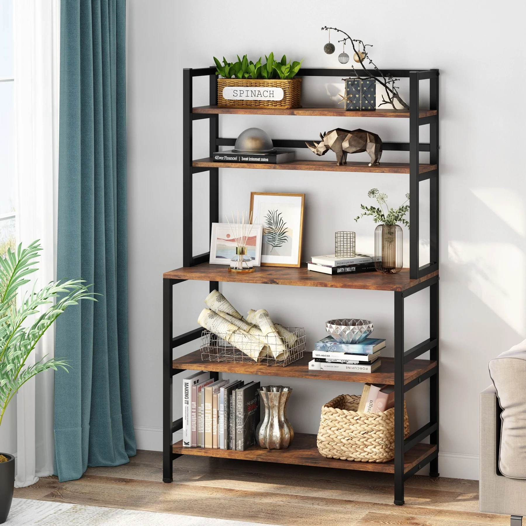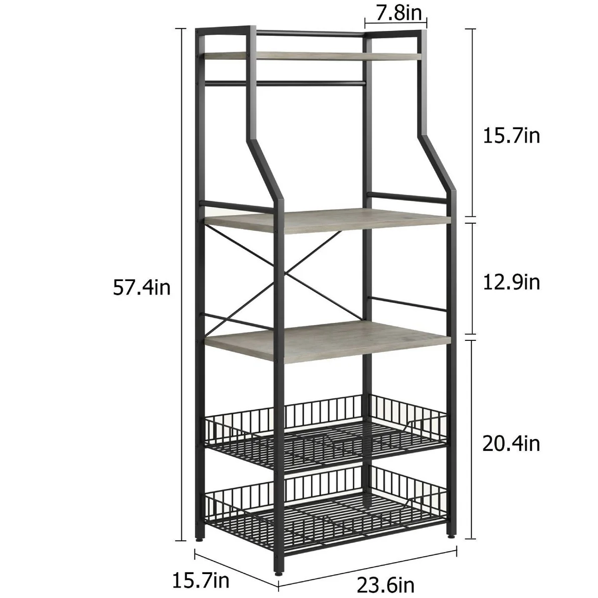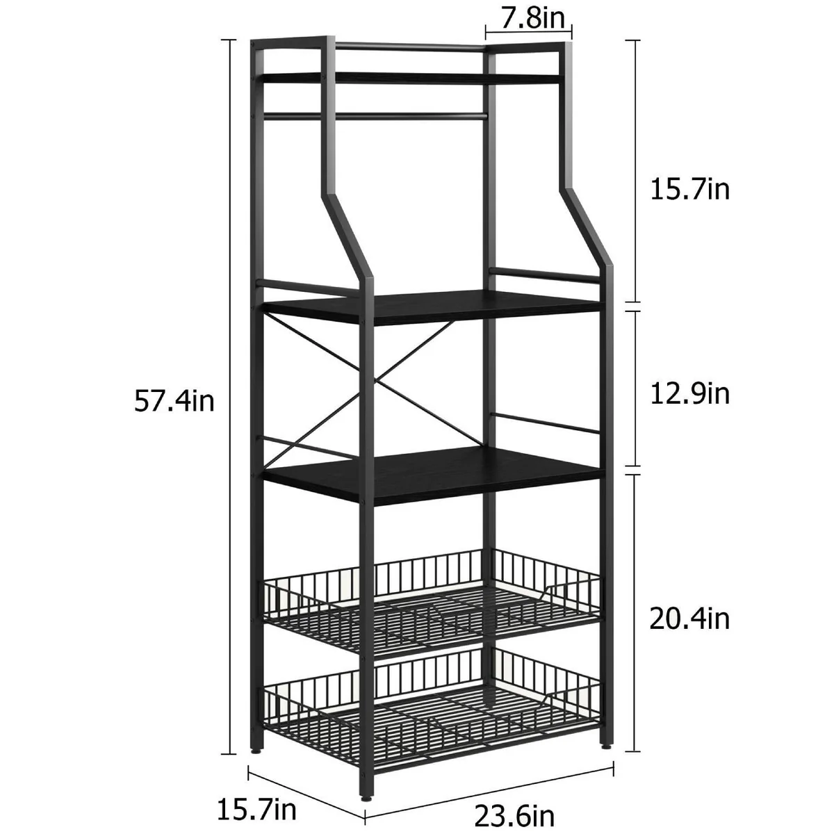 5-Tier Kitchen Bakers Rack Utility Storage Shelf Microwave Oven Stand, Industrial Microwave Cart Kitchen Stand with Hutch
