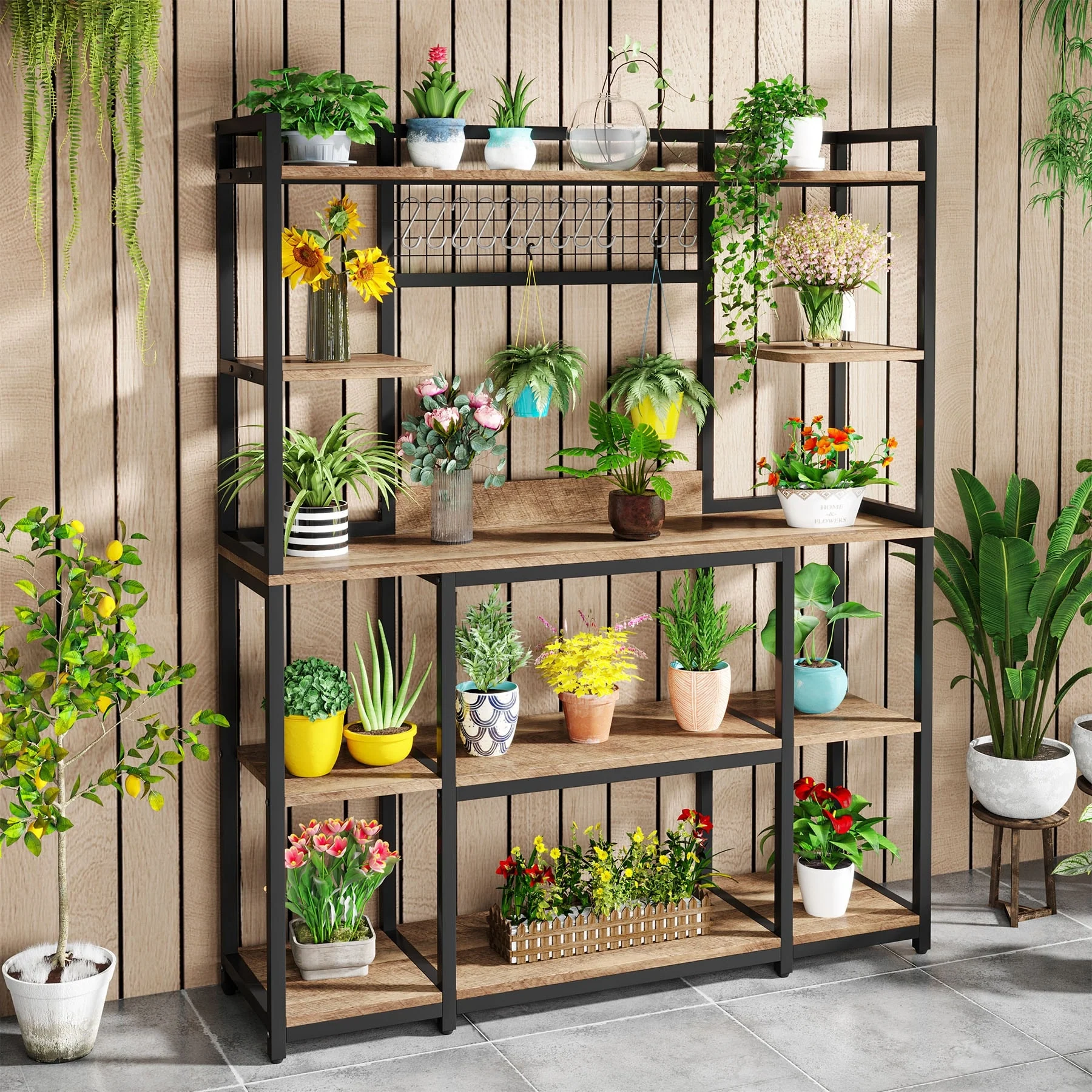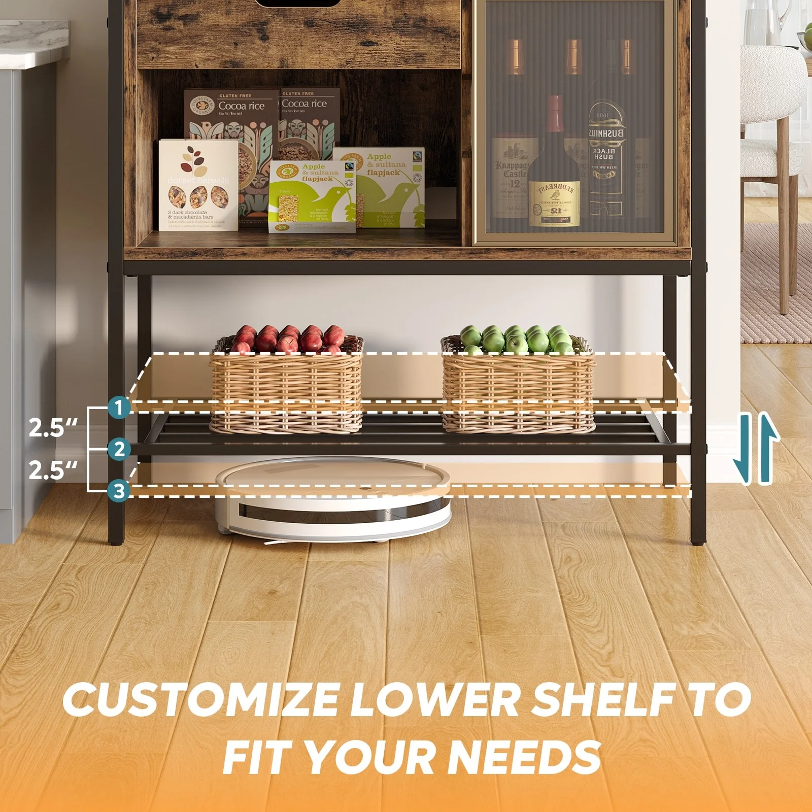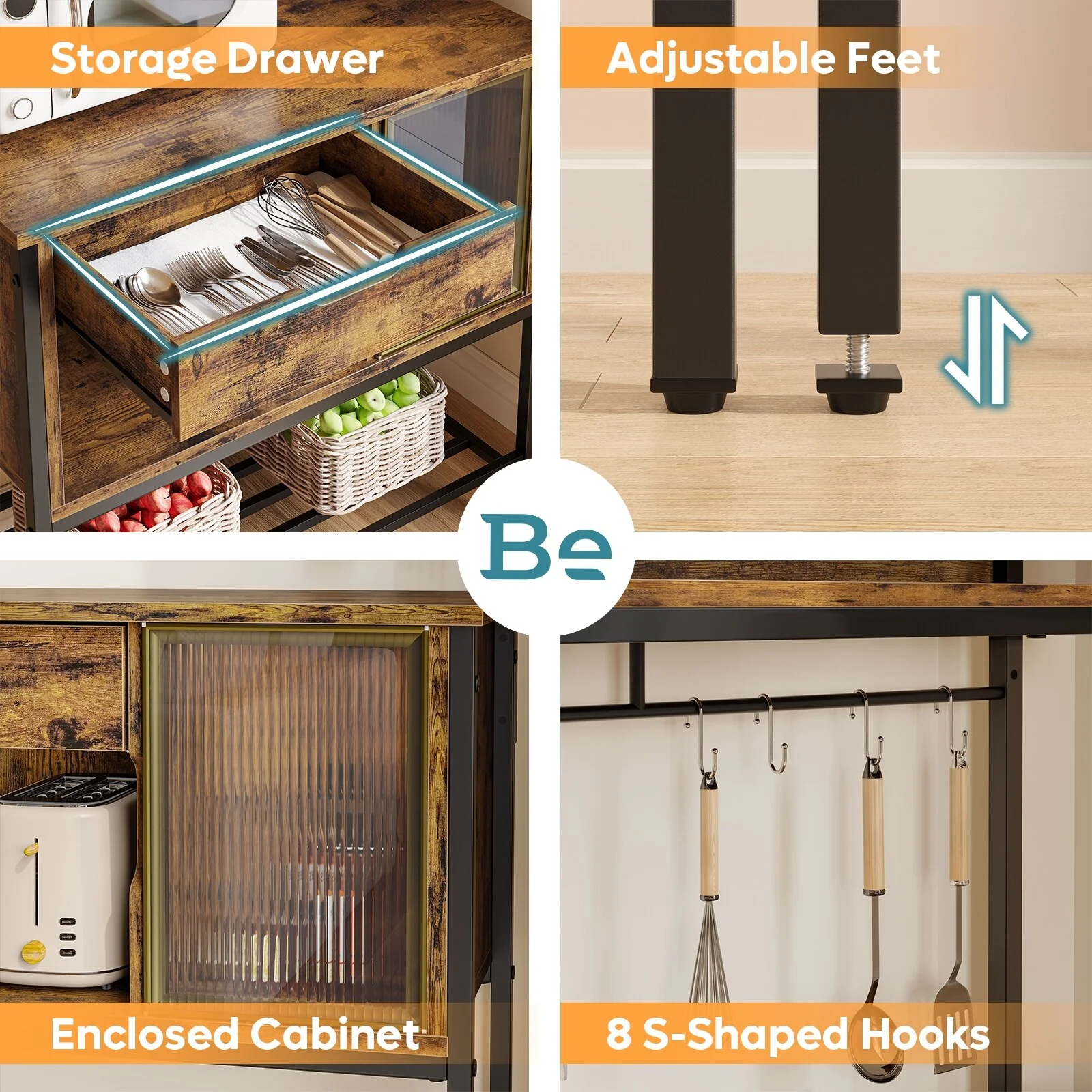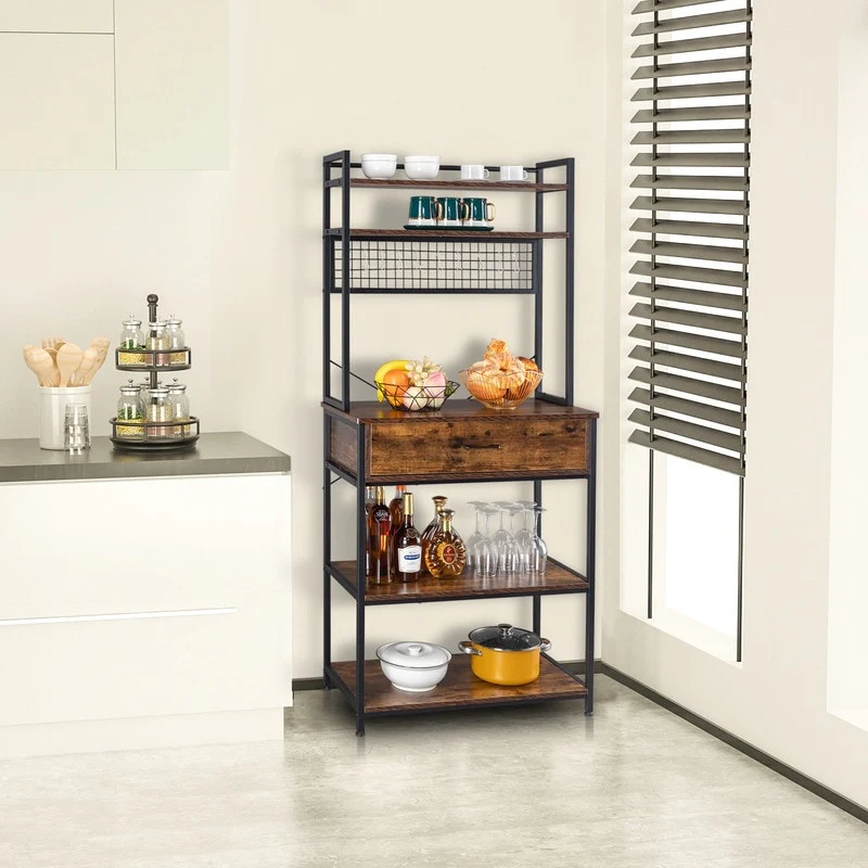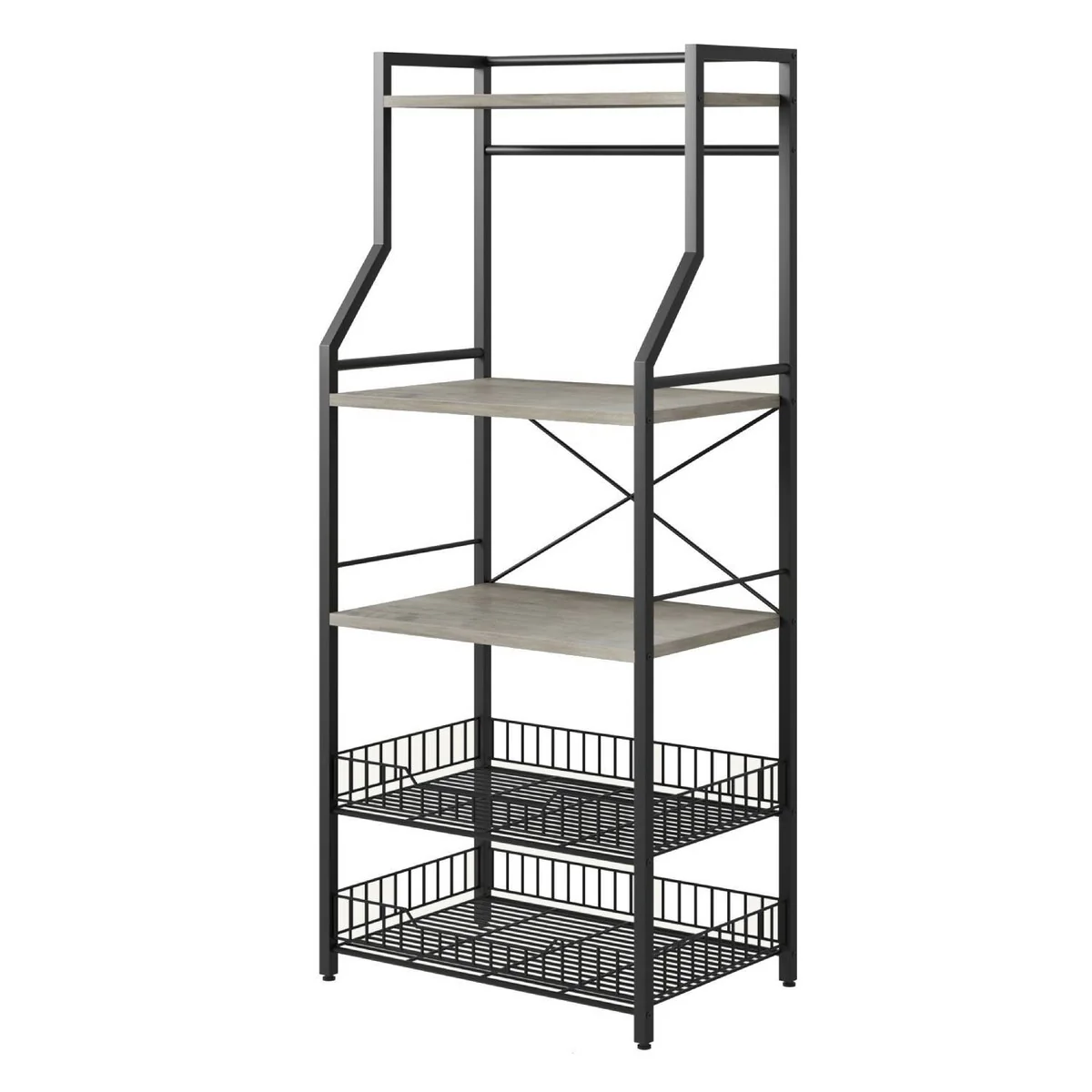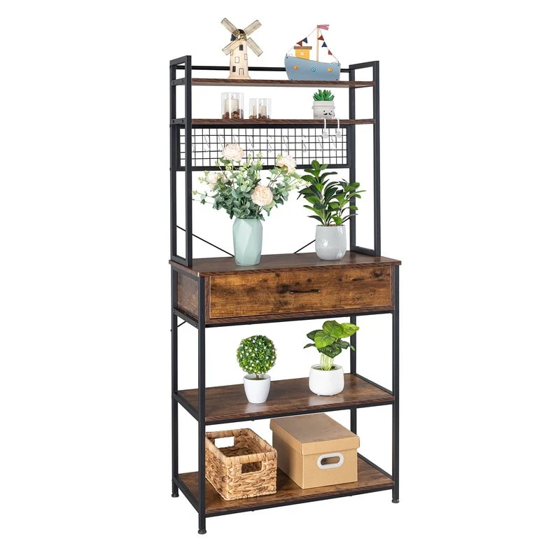 5-Tier Kitchen Bakers Rack Utility Storage Shelf Microwave Oven Stand, Industrial Microwave Cart Kitchen Stand with Hutch