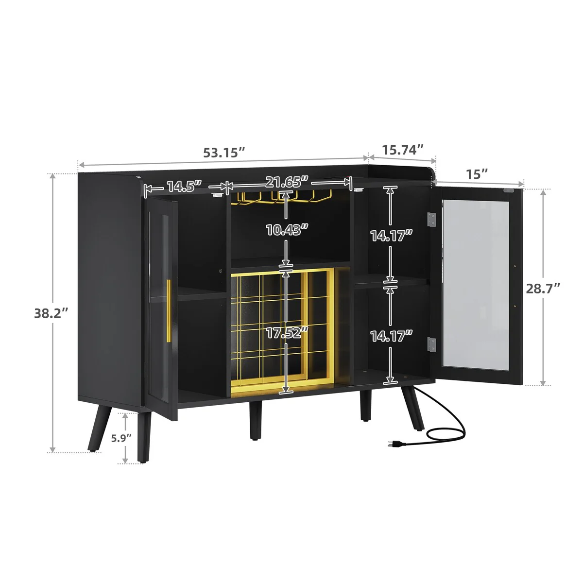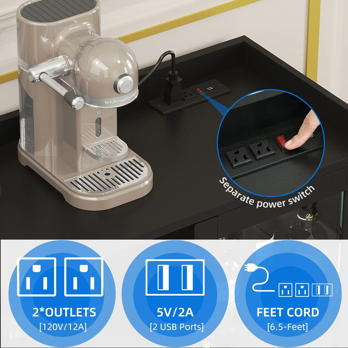 53" Wine Bar Cabinet Coffee Bar Cabinet for Liquor and Glasses with Led Lights & Power Outlets