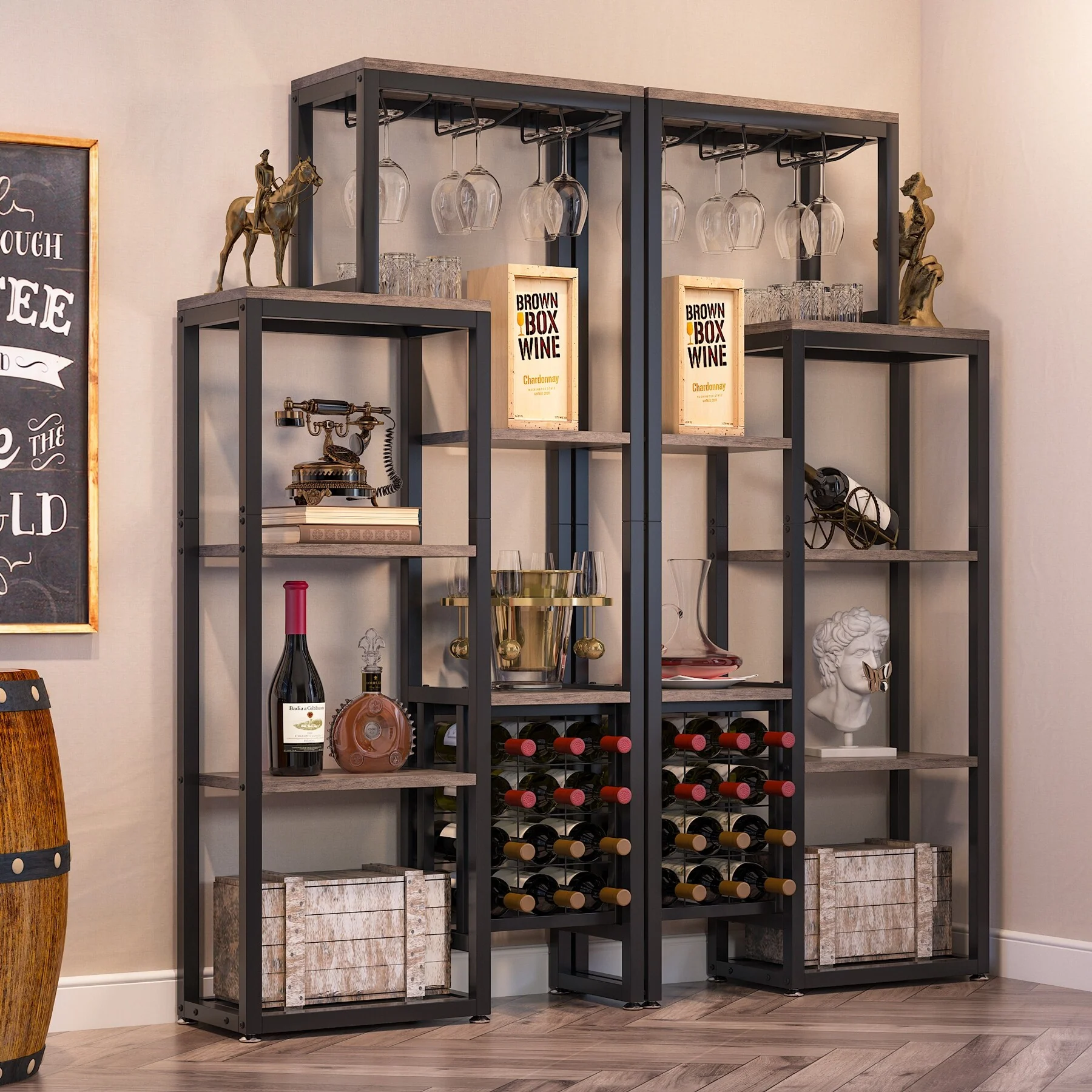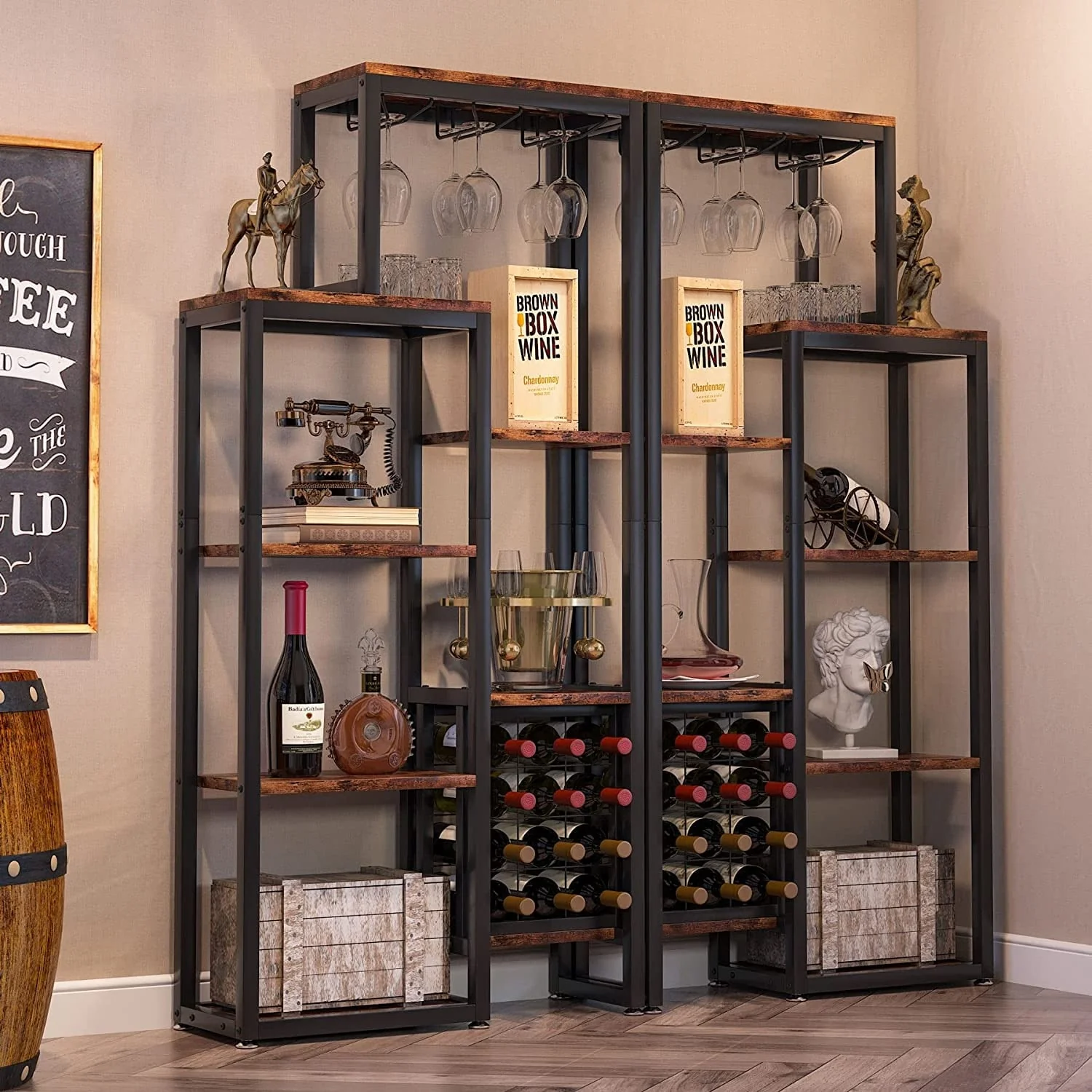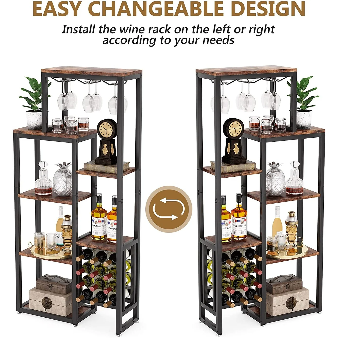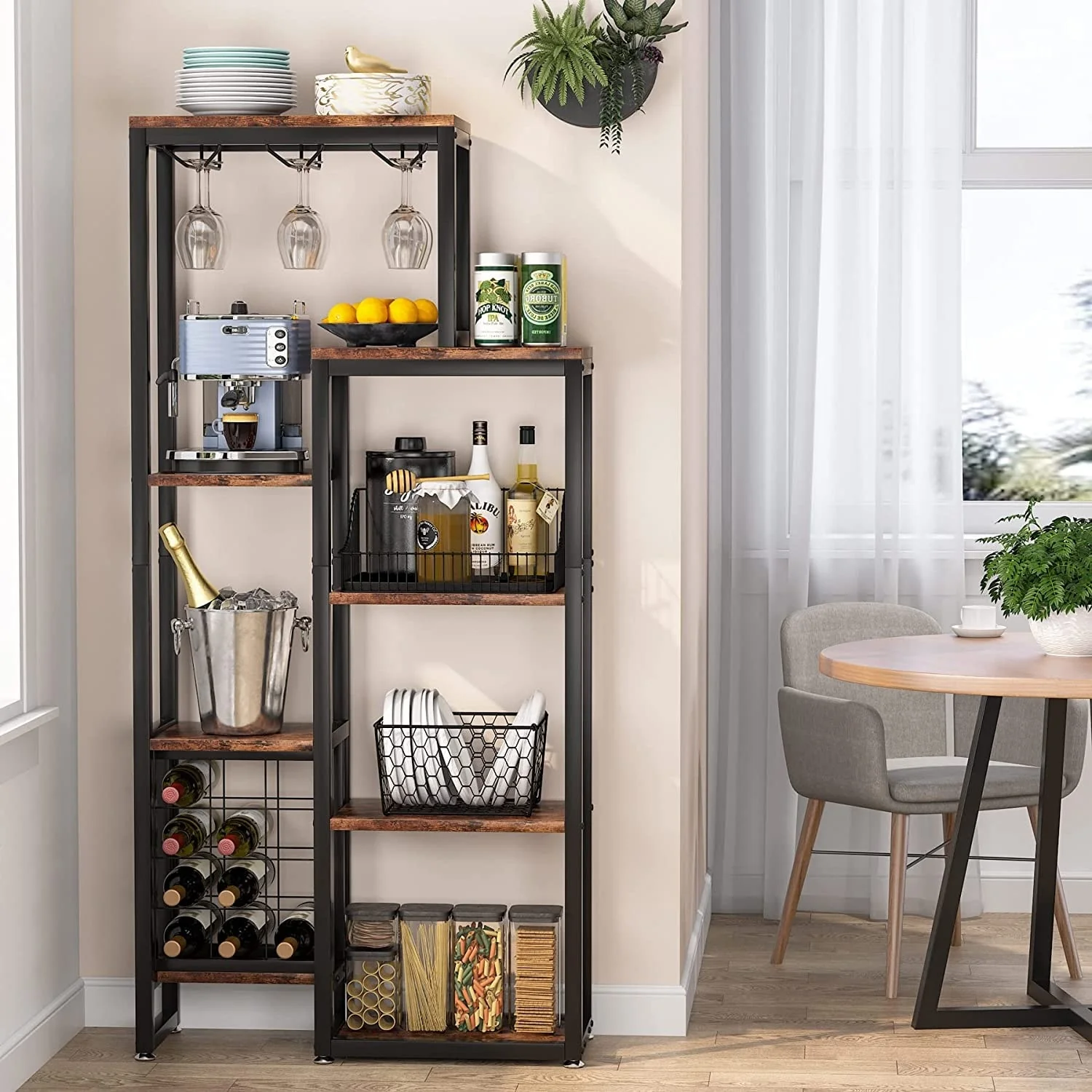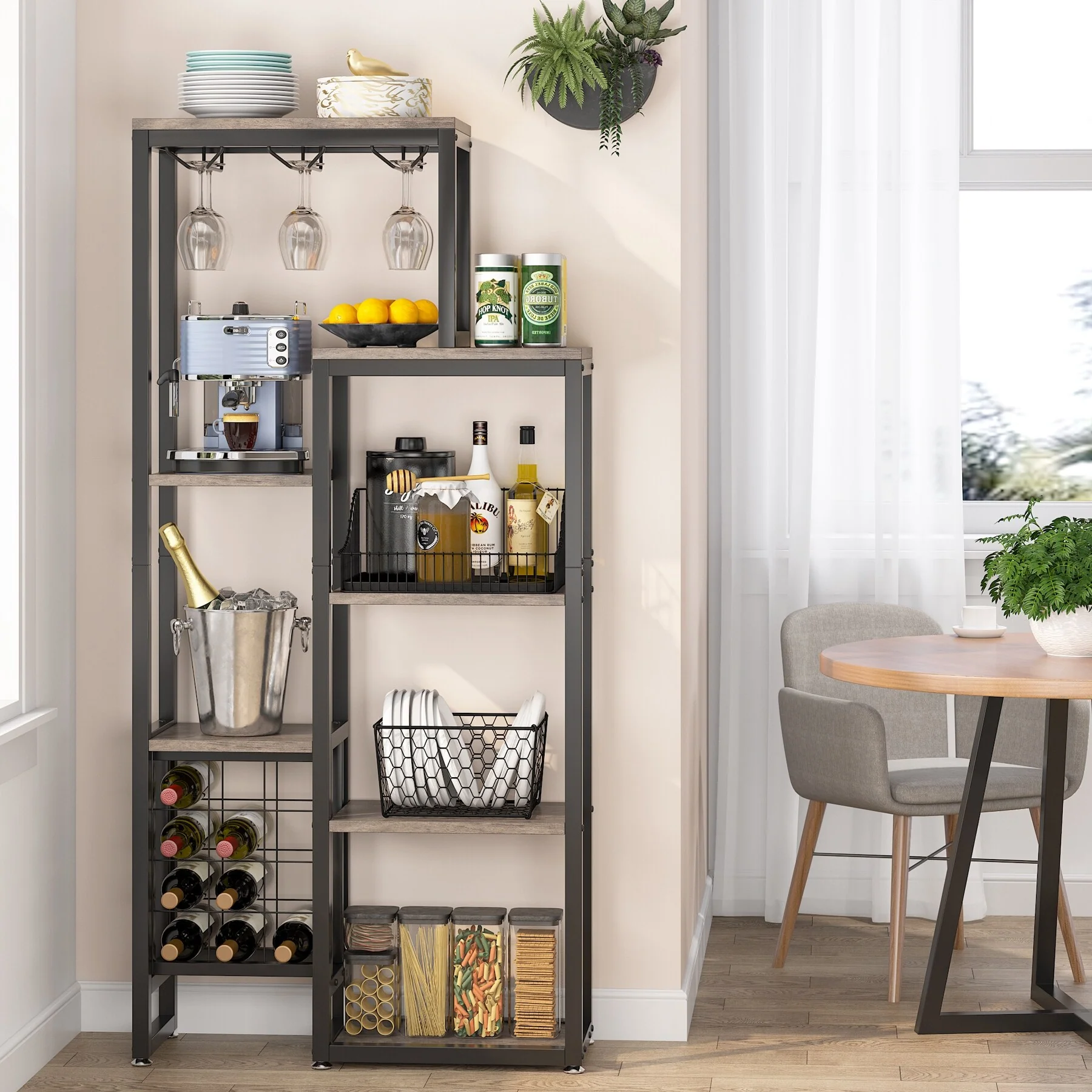 5-Tier Freestanding Floor Wine Baker Rack with Glass Holder & Wine Storage, Industrial Wine Display for Bar, Dining Room - N/A