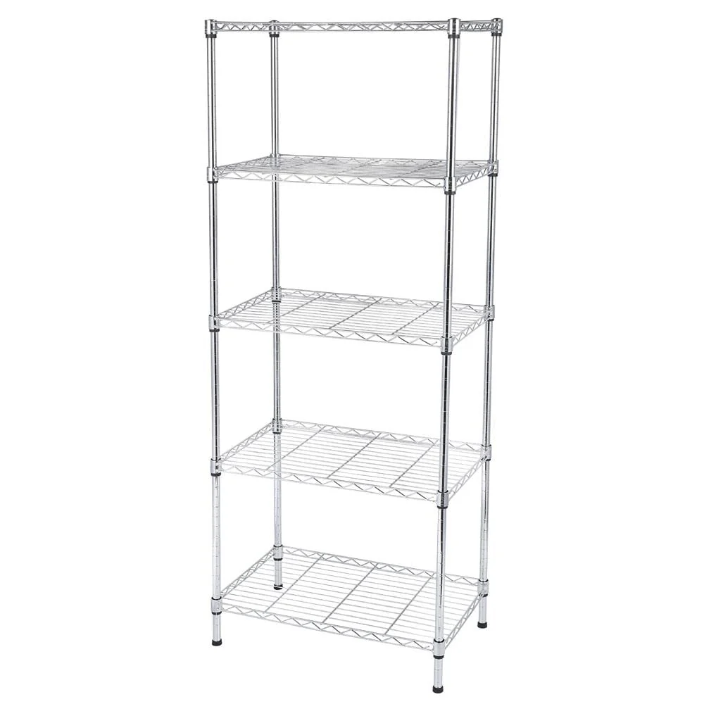5-Tier Foldable Storage Shelving Unit, Heavy Duty Metal Kitchen Shelf with 3 Hooks
