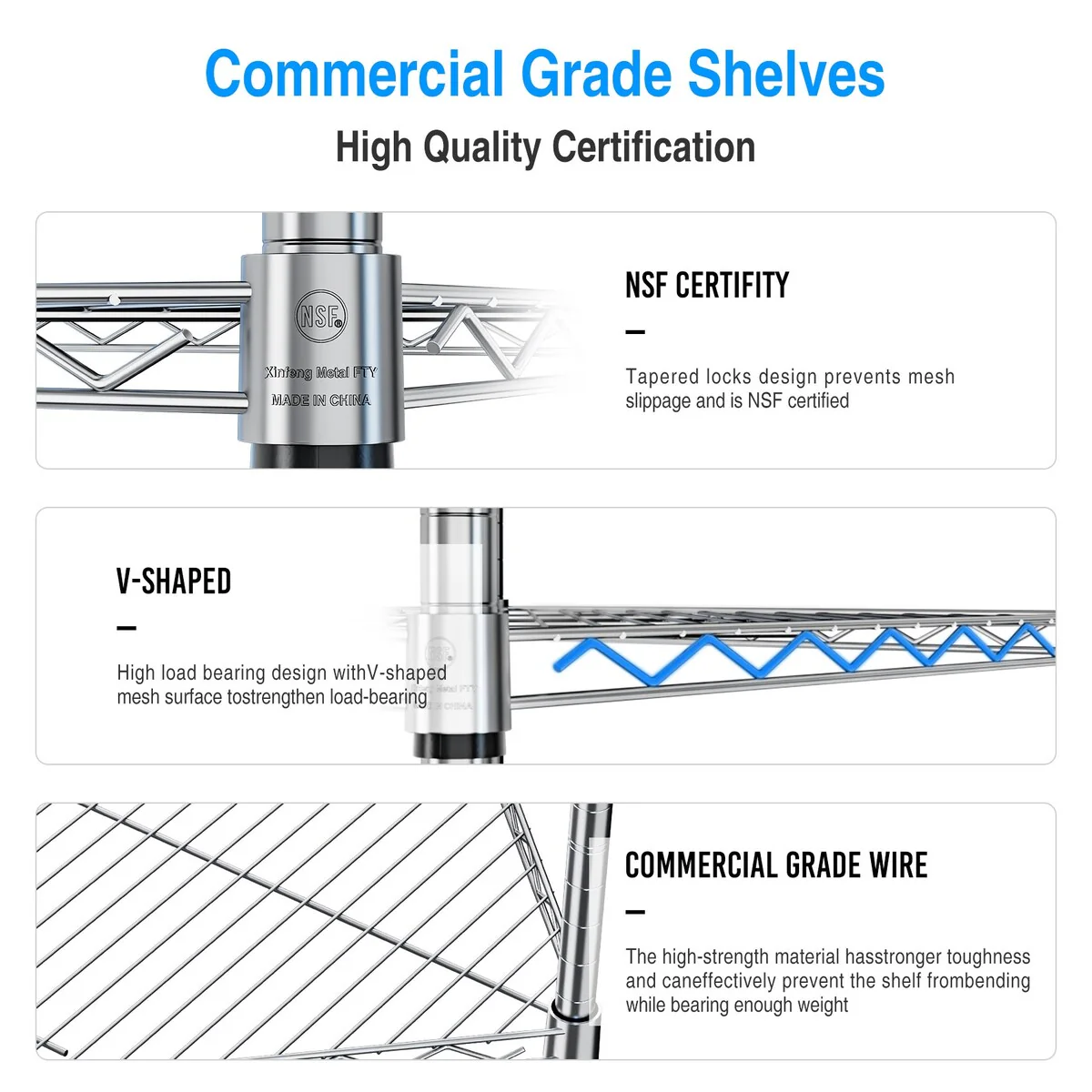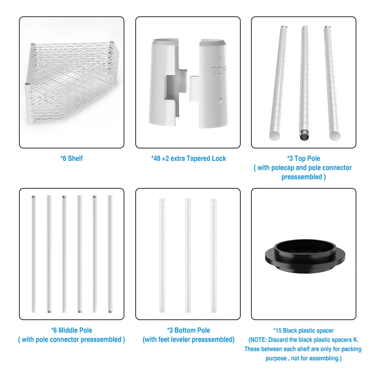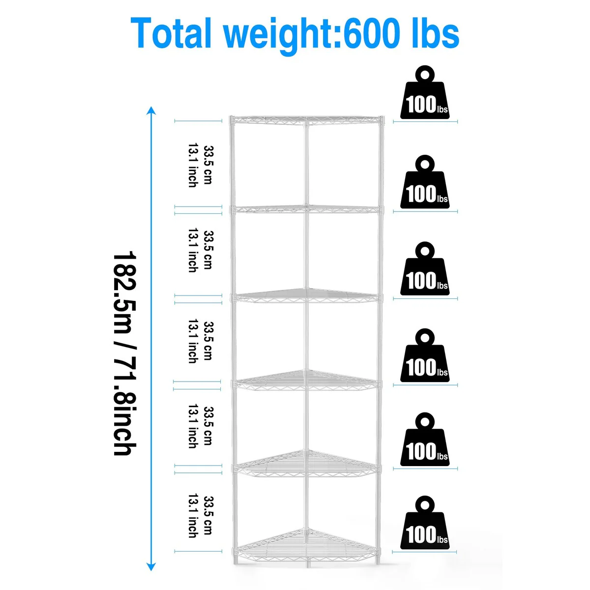 6 Tier Shelf Corner Wire Rack Pentagonal Shelves Adjustable Metal Heavy Duty Free Standing Corner Storage Display Chrome Rack