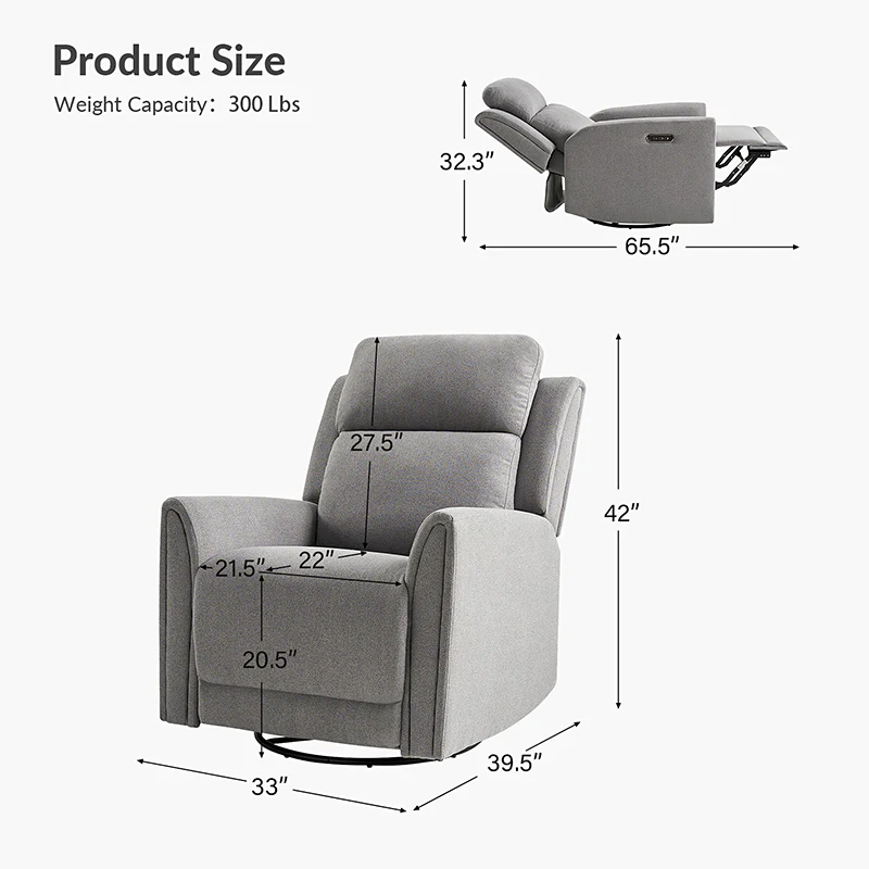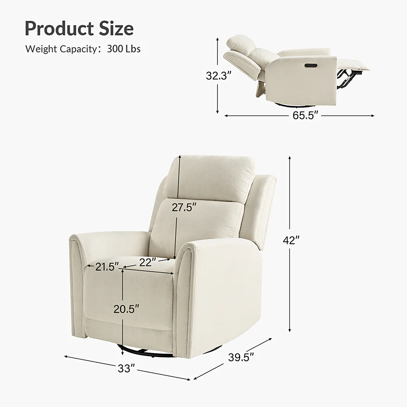 Alois Swivel And Rocker Power Recliner With USB, Adjustable Headrest and One-Touch Reset