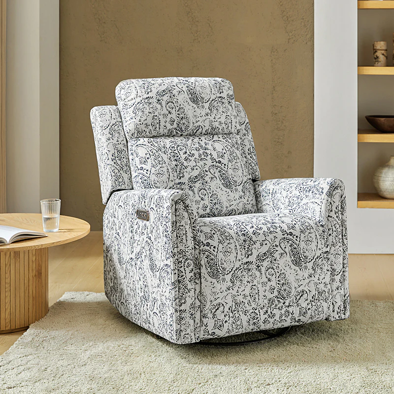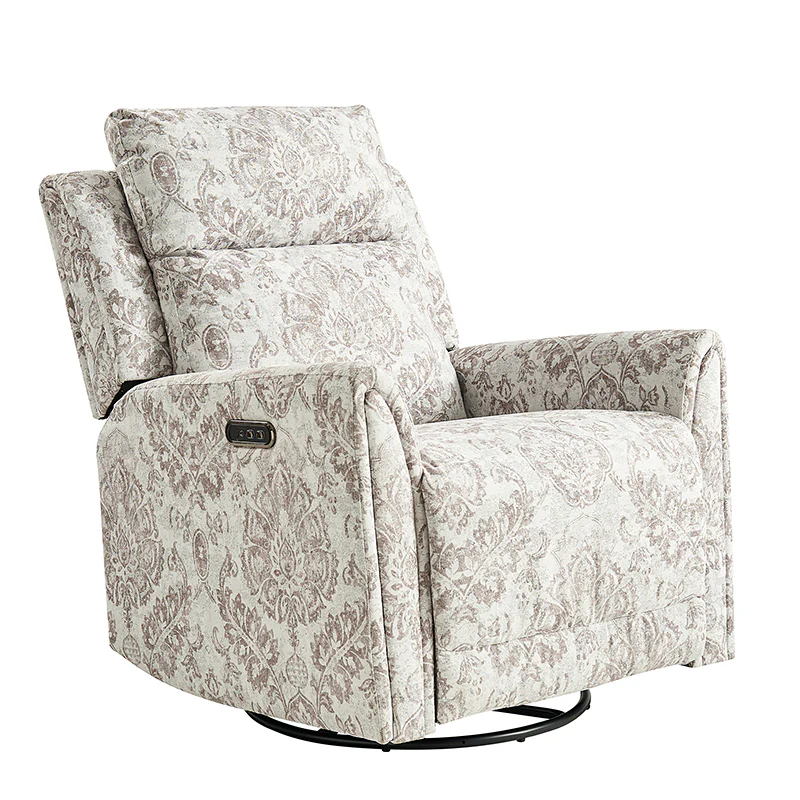 Alois Large Floral Swivel And Rocker Power Recliner With Adjustable Headrest