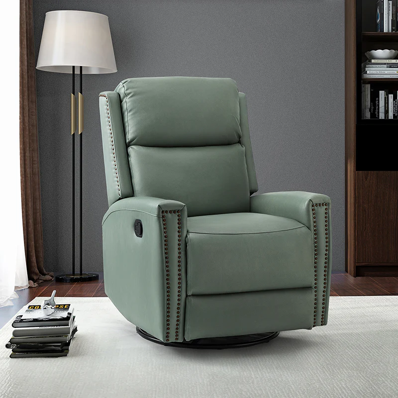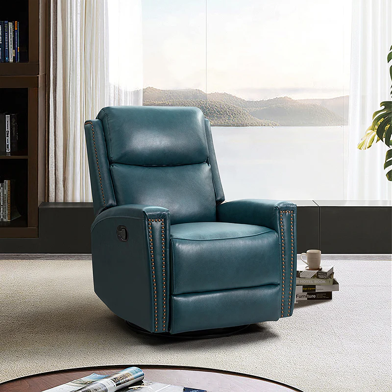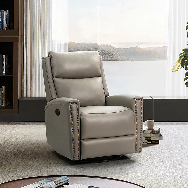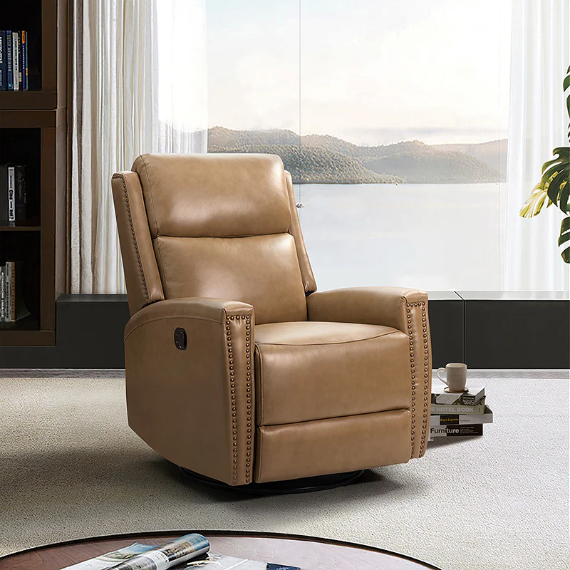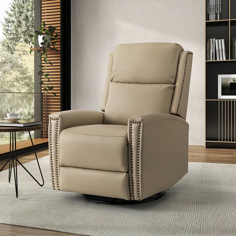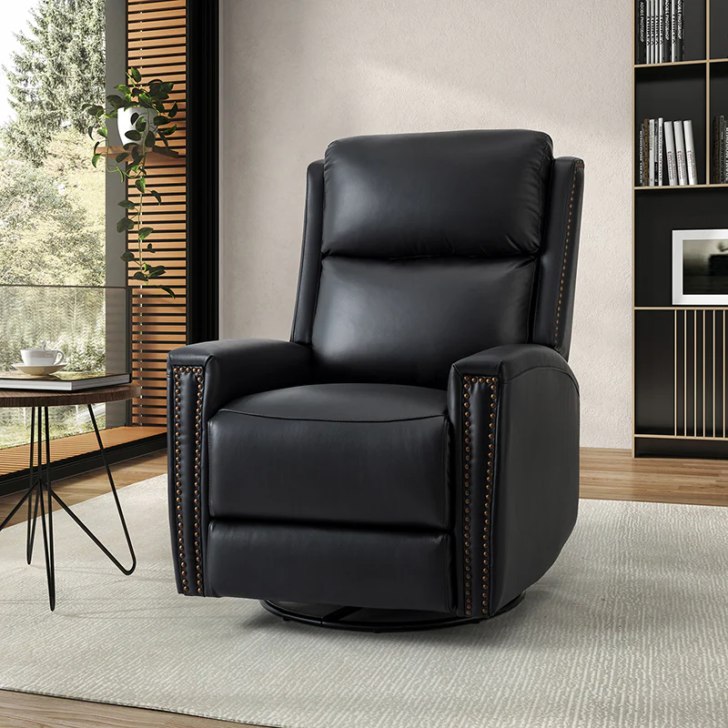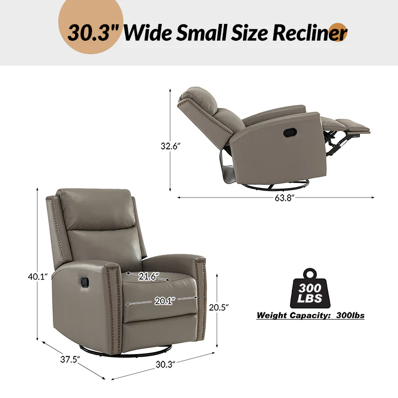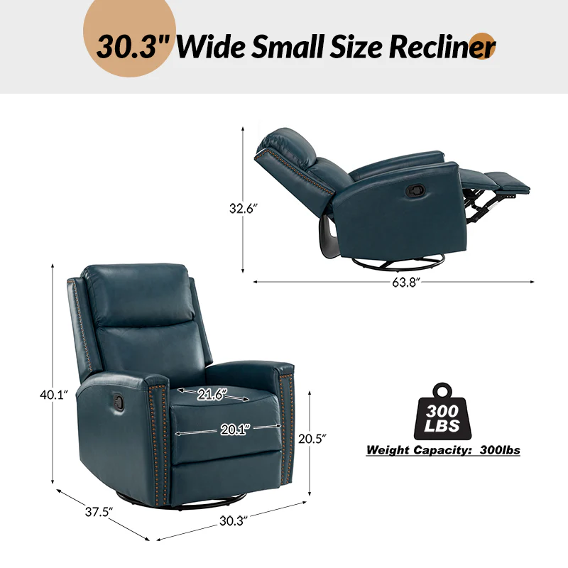 Aniceta 30.31" Wide Genuine Leather Swivel Rocker Power Glider Recliner