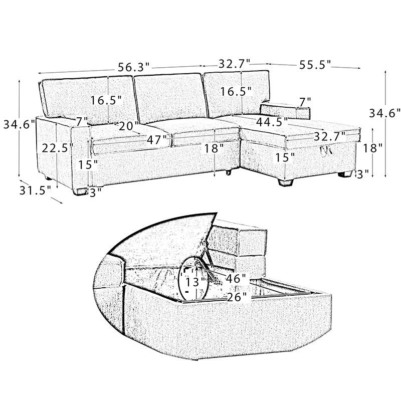 Sendera Upholstered Pull Out Sleeper Sofa & Chaise with Storage (Right)