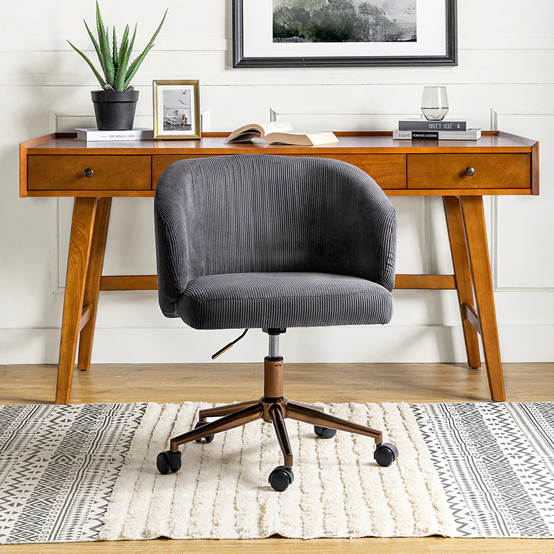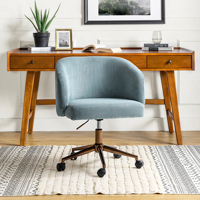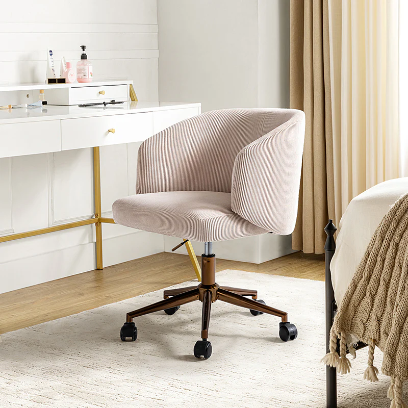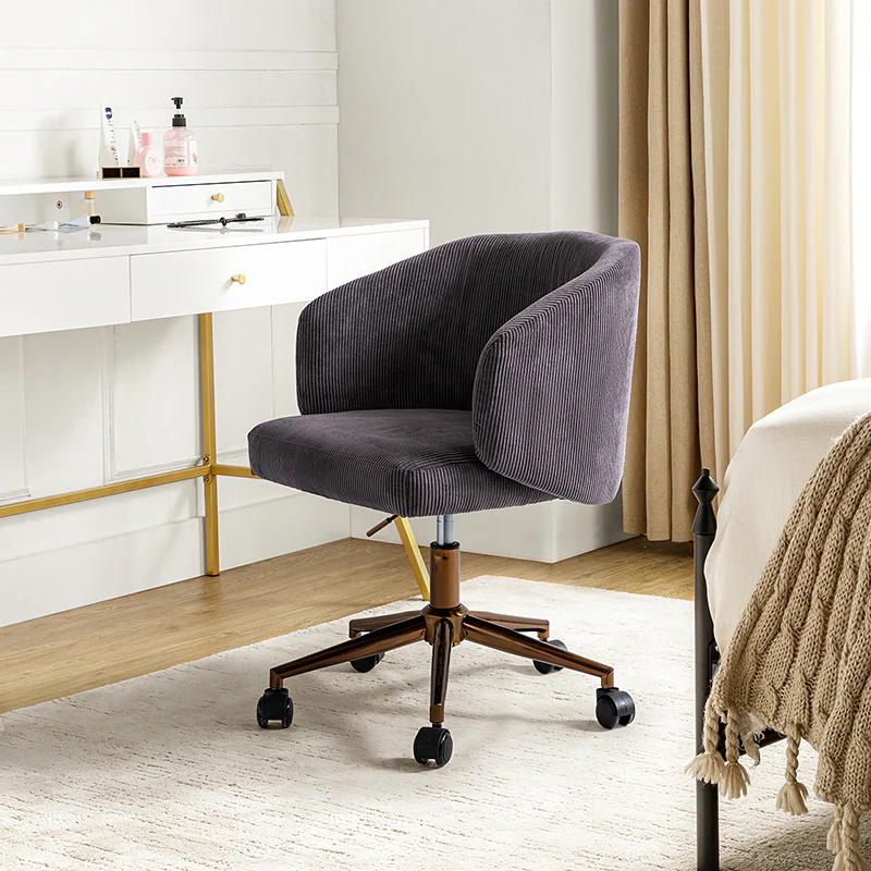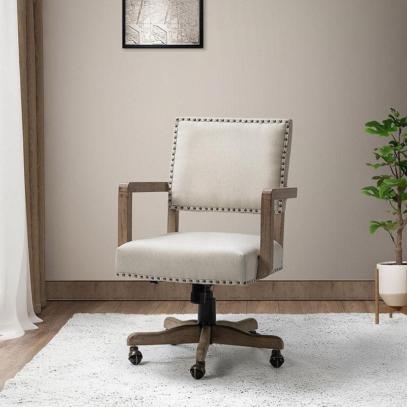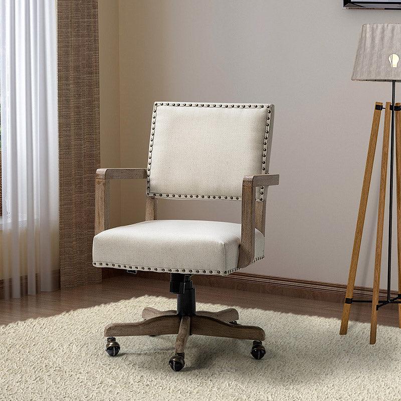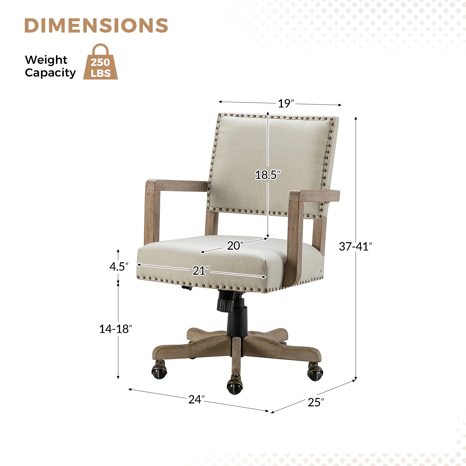 Leonhard Upholstered Swivel Task Chair: Plush Velvet Feel with Linen-Inspired Fabric, Adjustable Height, and Wheels