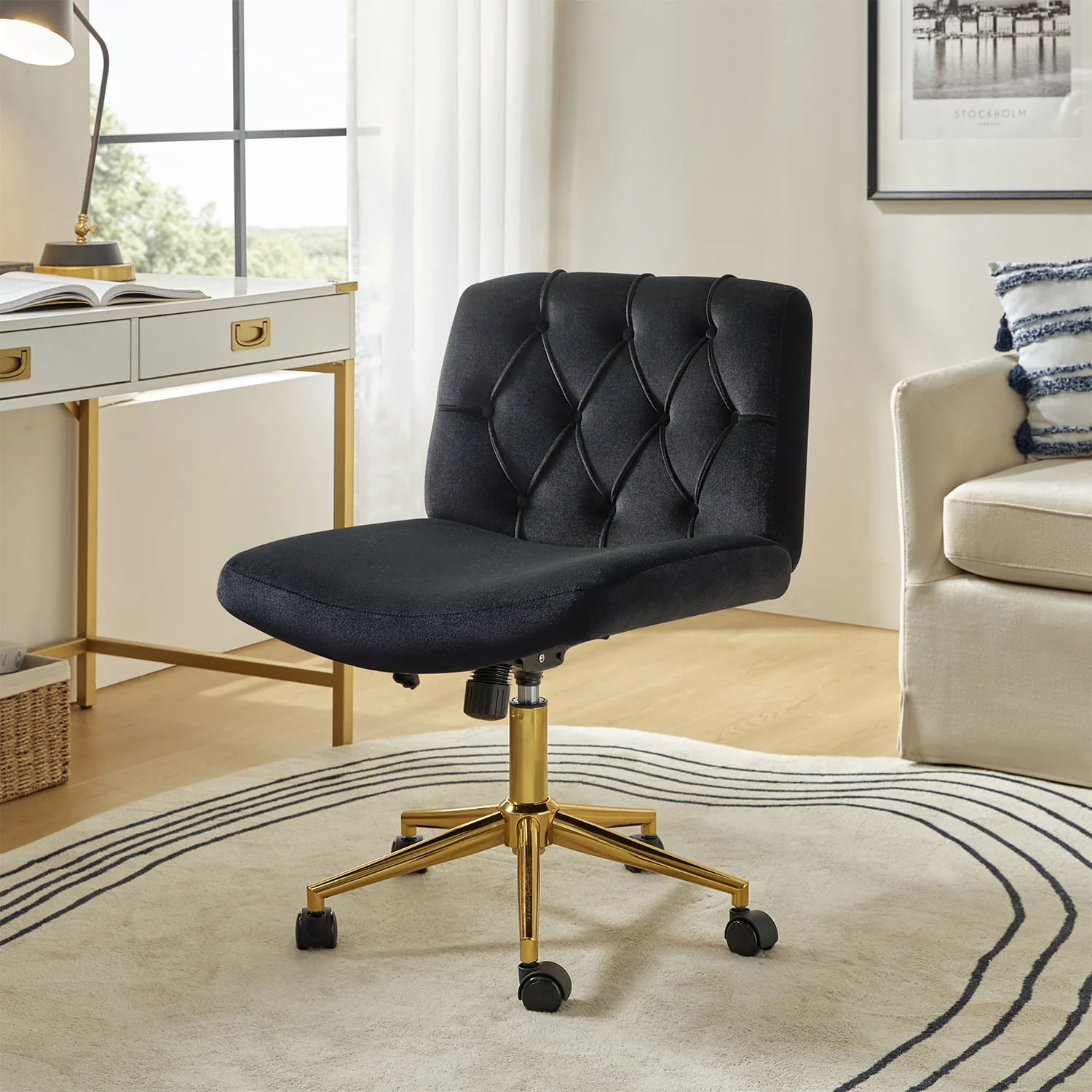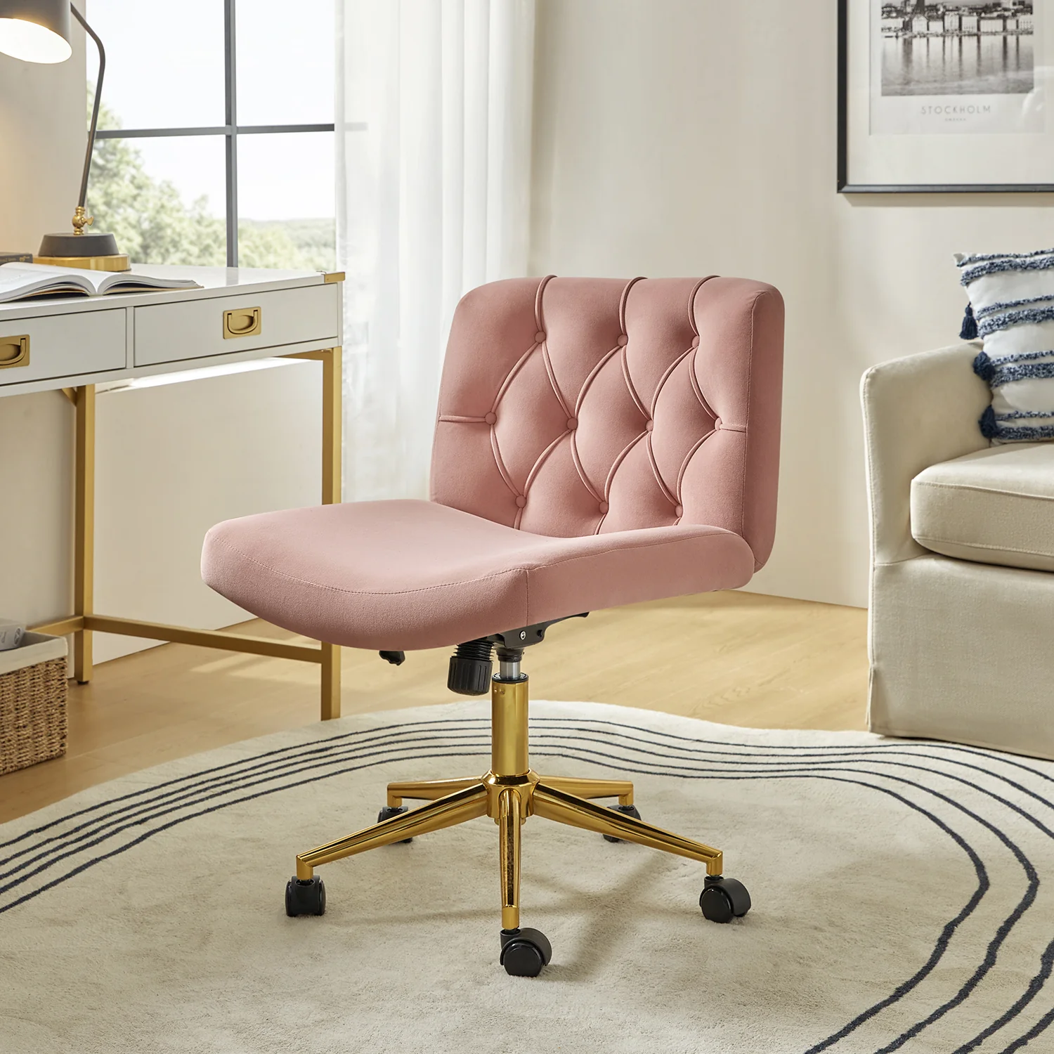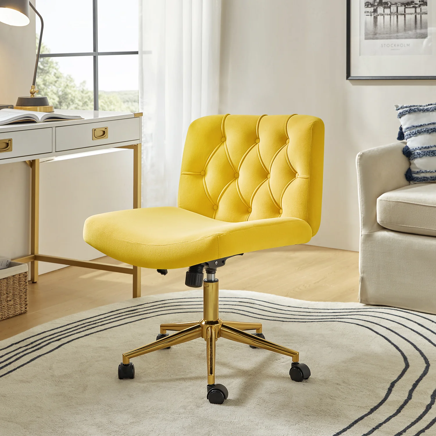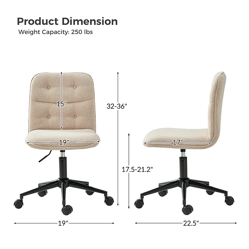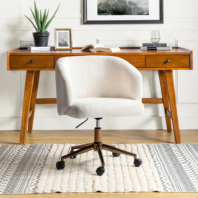 Leonhard Upholstered Swivel Task Chair: Plush Velvet Feel with Linen-Inspired Fabric, Adjustable Height, and Wheels