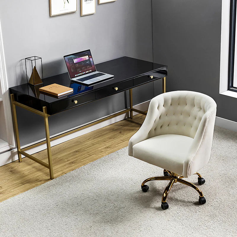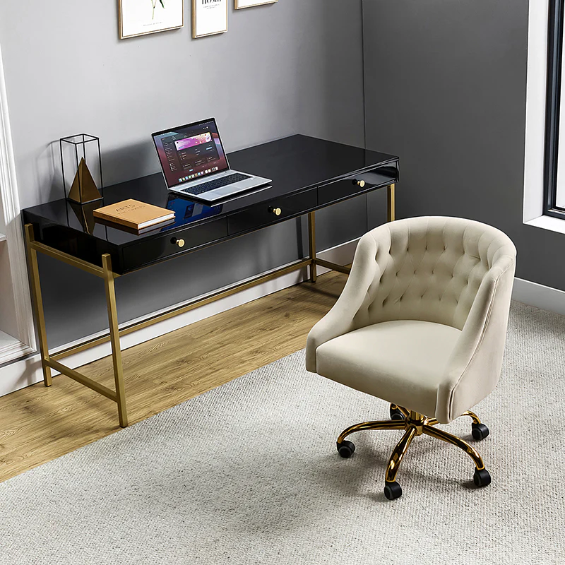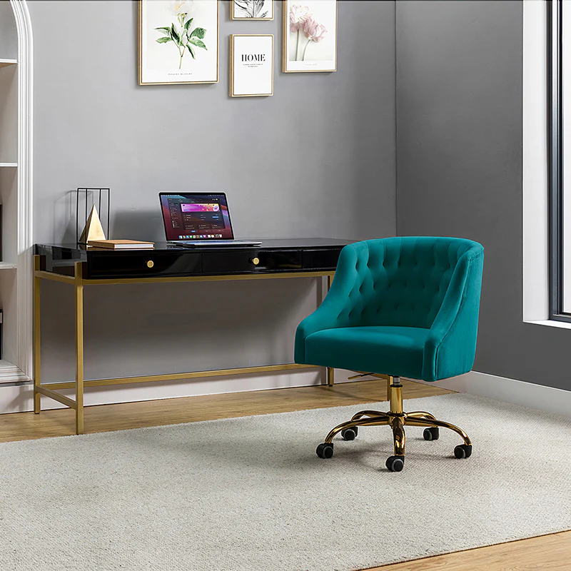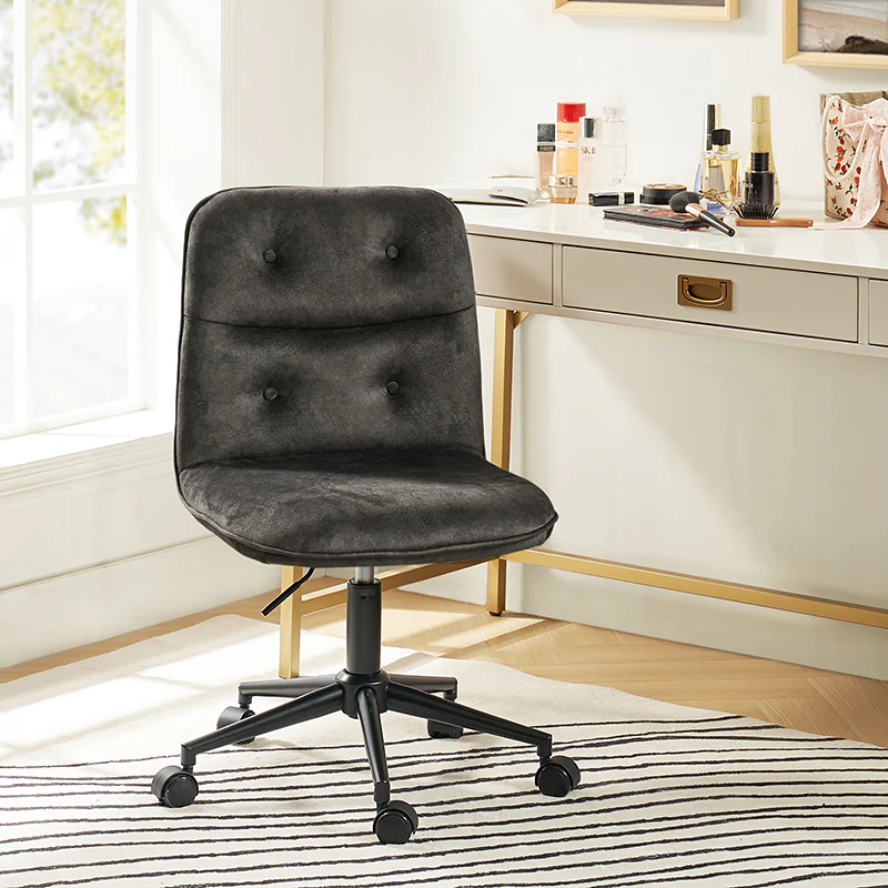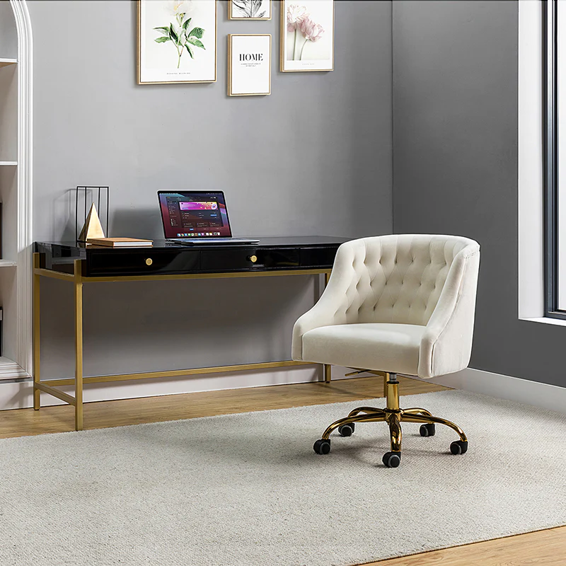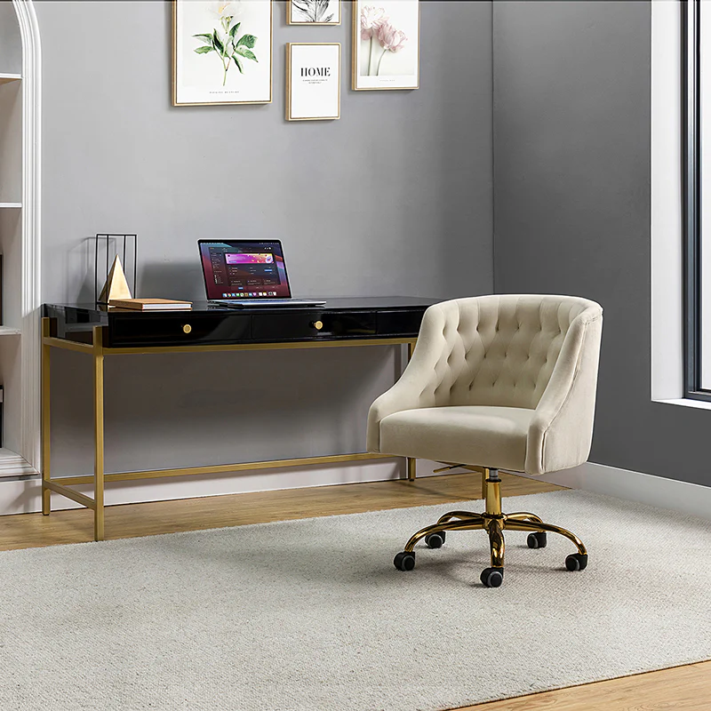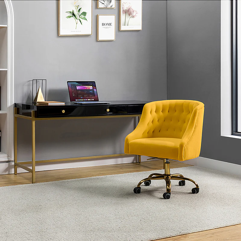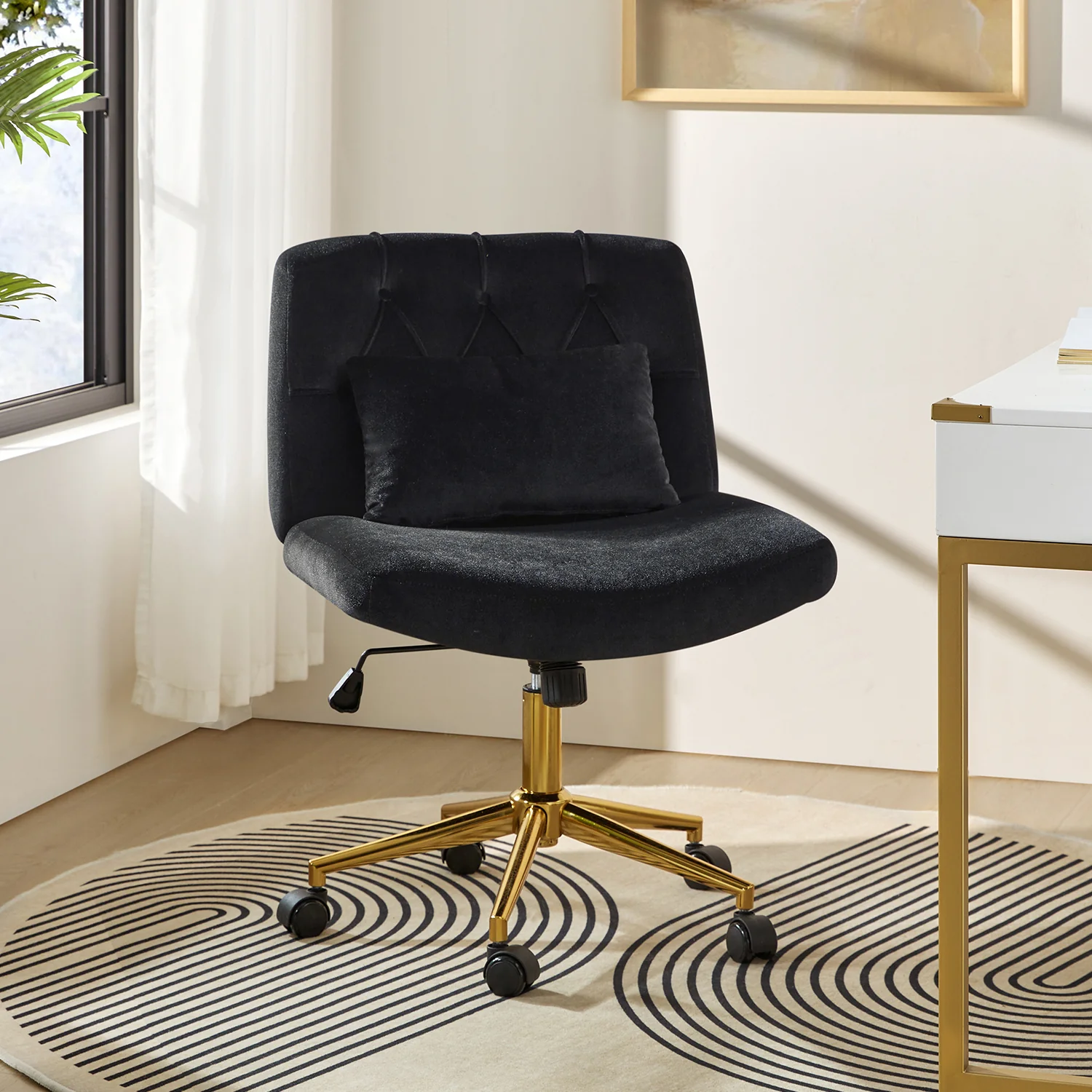 Leonhard Upholstered Swivel Task Chair: Plush Velvet Feel with Linen-Inspired Fabric, Adjustable Height, and Wheels