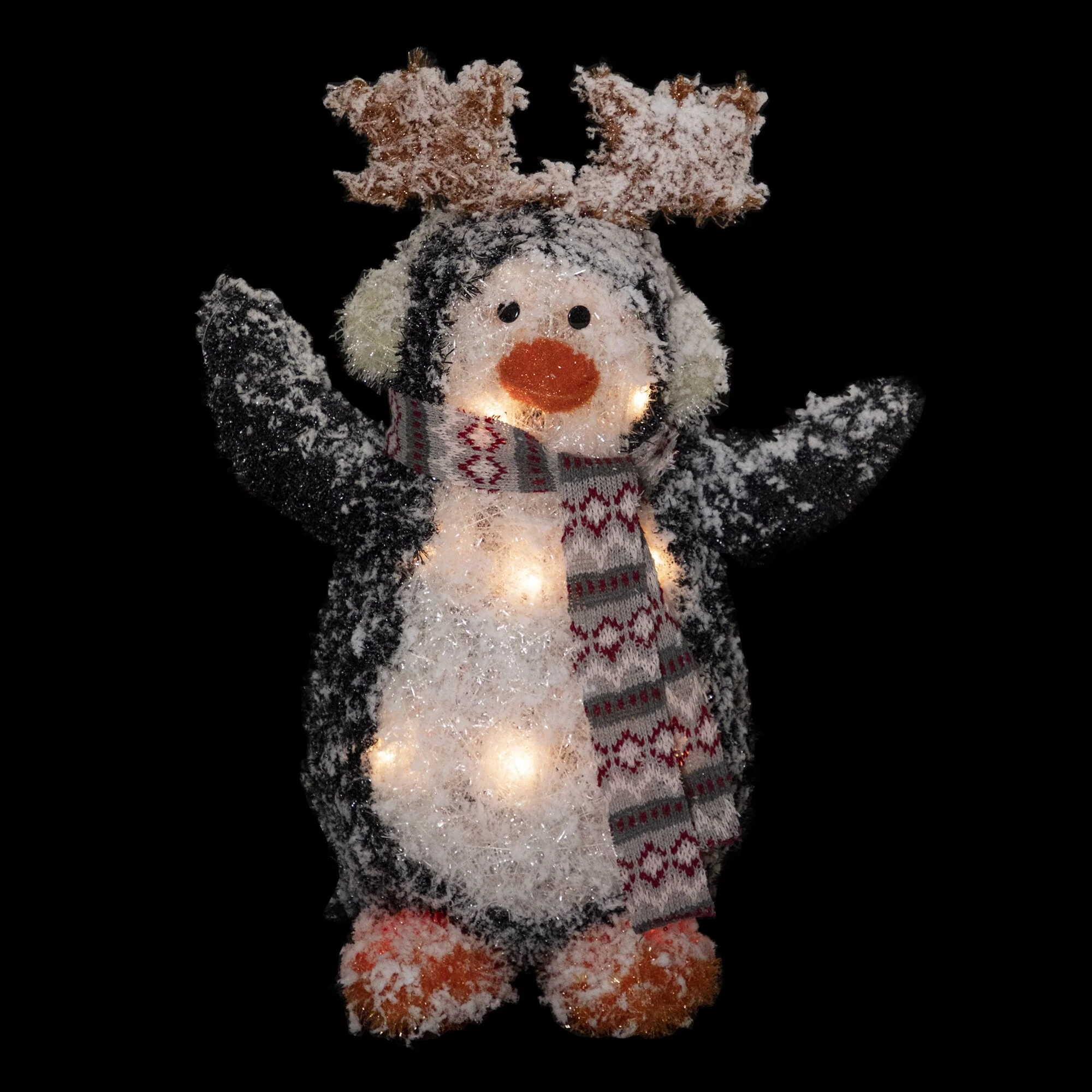 28" LED Tinsel Penguin in Santa Hat Outdoor Christmas Decoration - Black