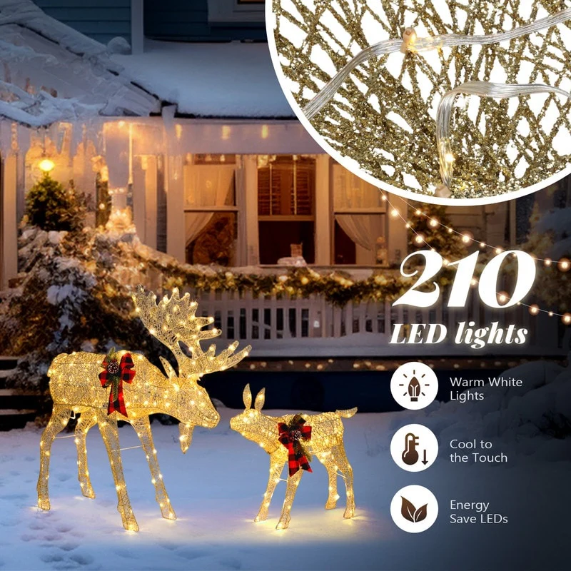 3 LED Lighted White Reindeer Family Outdoor Christmas Decorations 29"