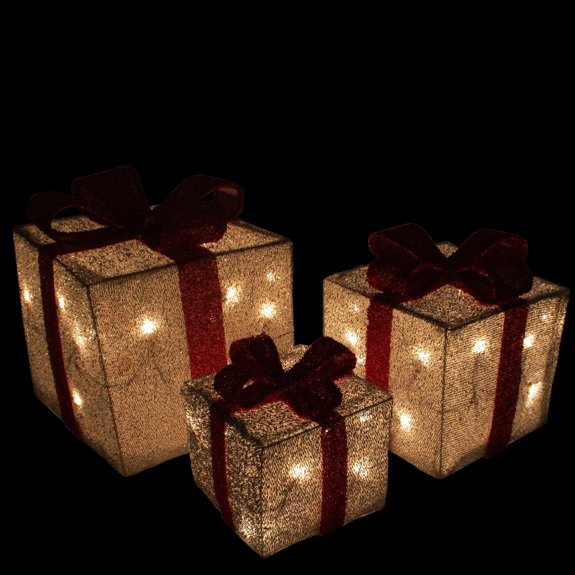 3 LED Red, Green Gold Glitter Gift Boxes Outdoor Christmas Decoration - Red