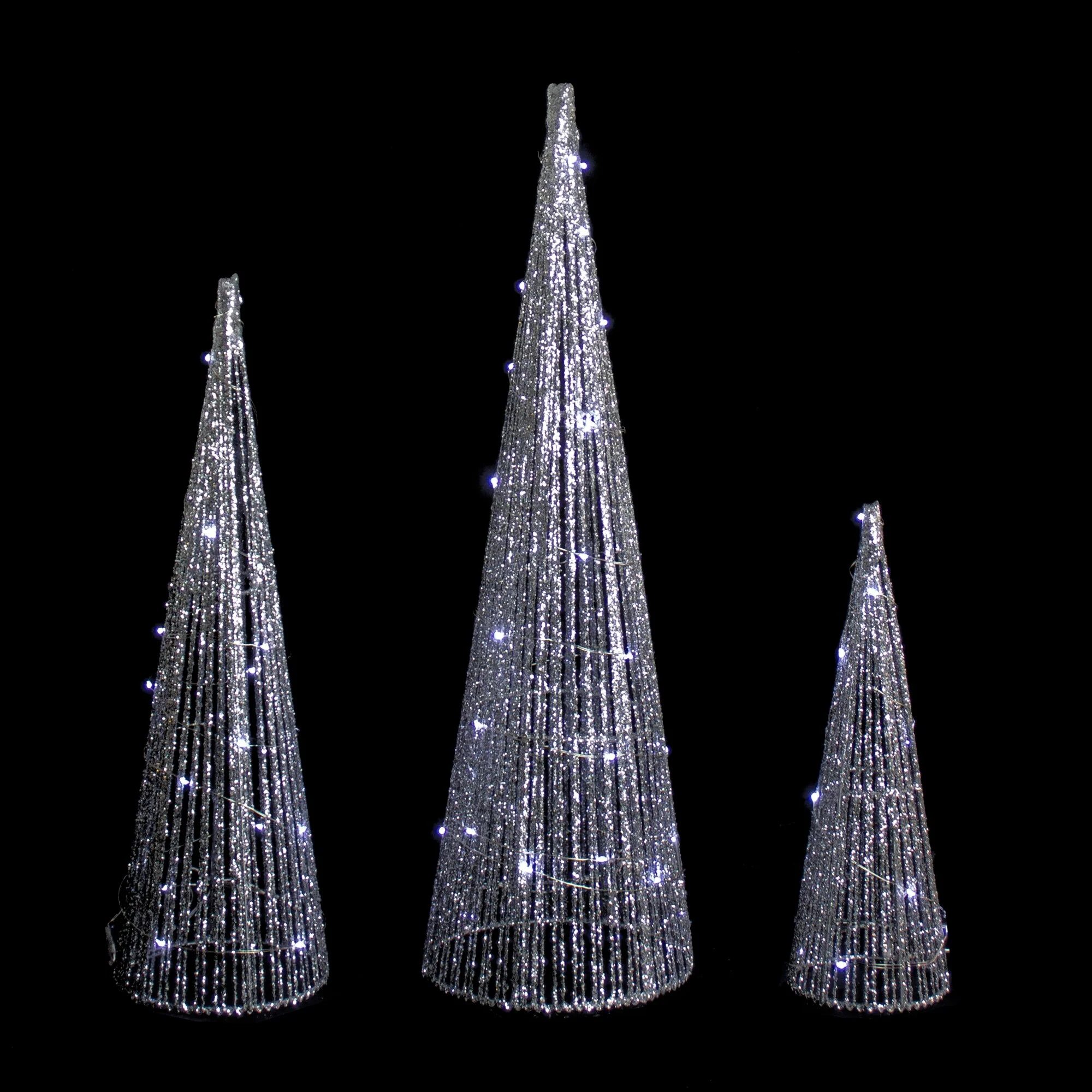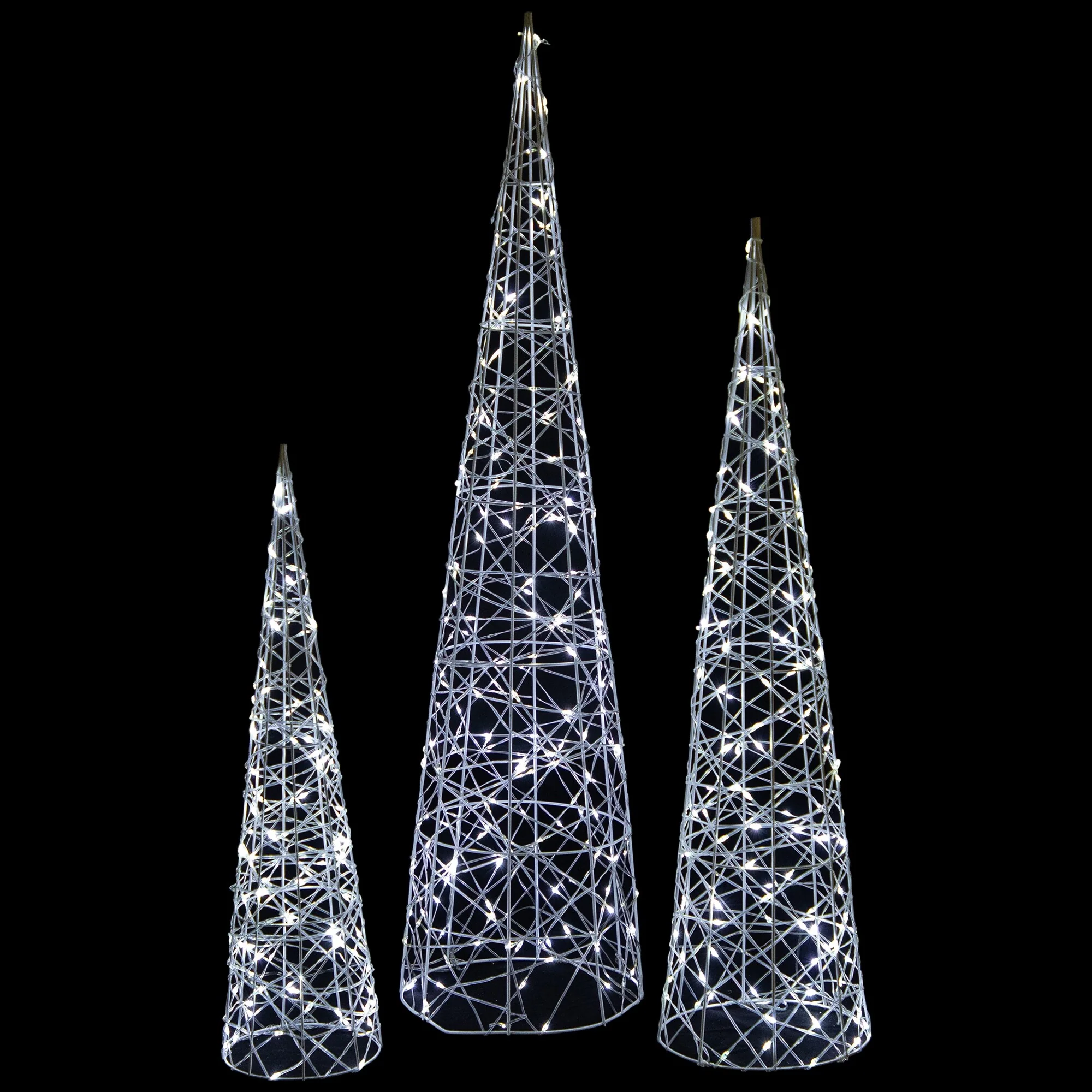 3 LED Twinkling Cone Trees Christmas Yard Decoration Cool White Lights