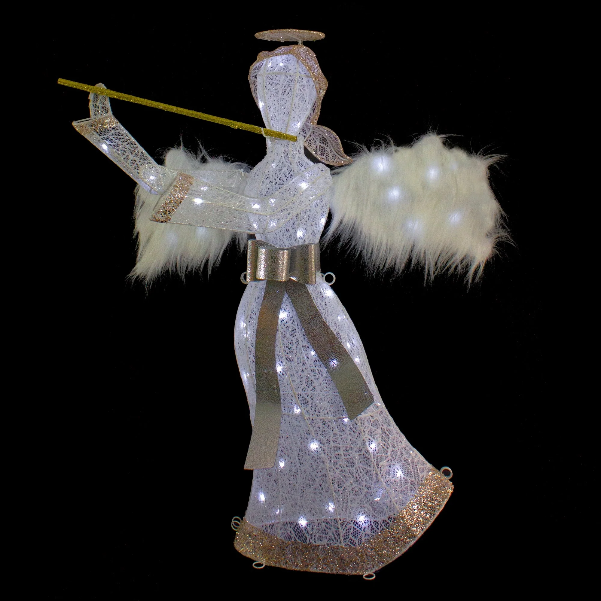 36" LED Lighted Lace Angel with Flute Outdoor Christmas Decoration - White