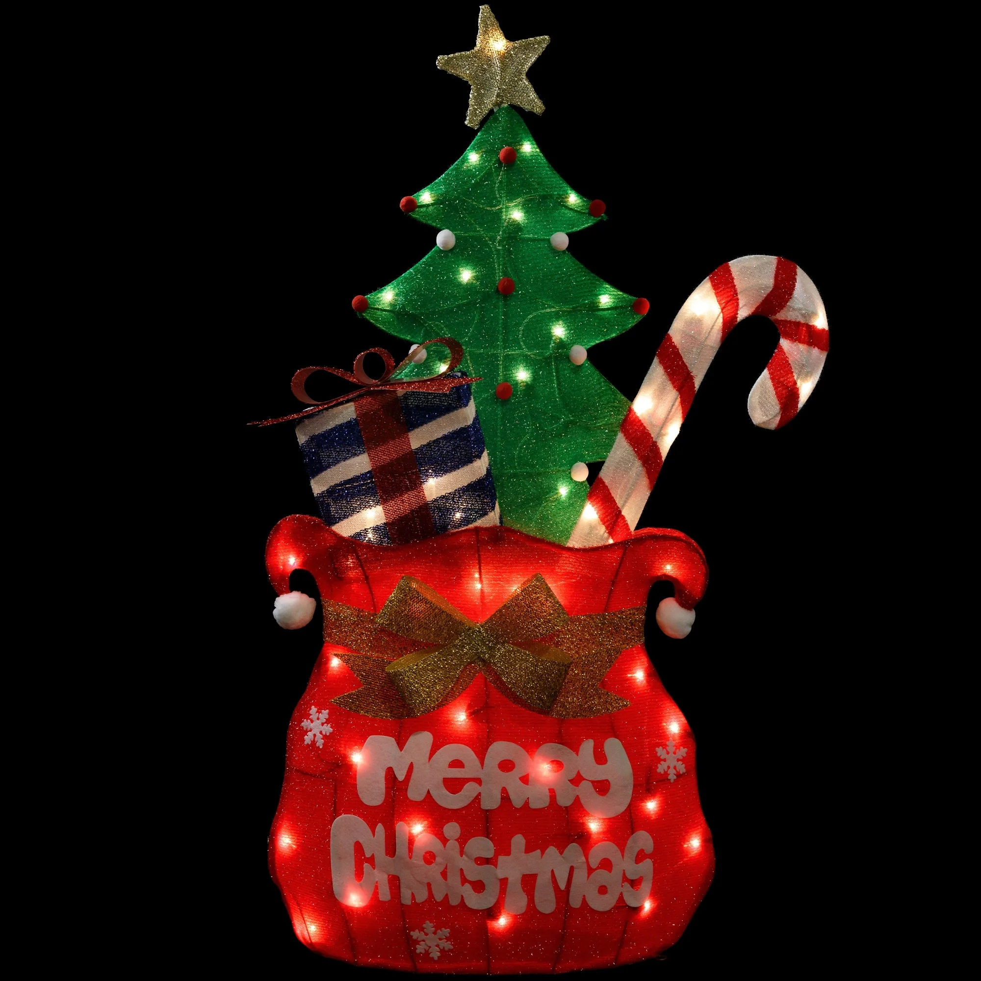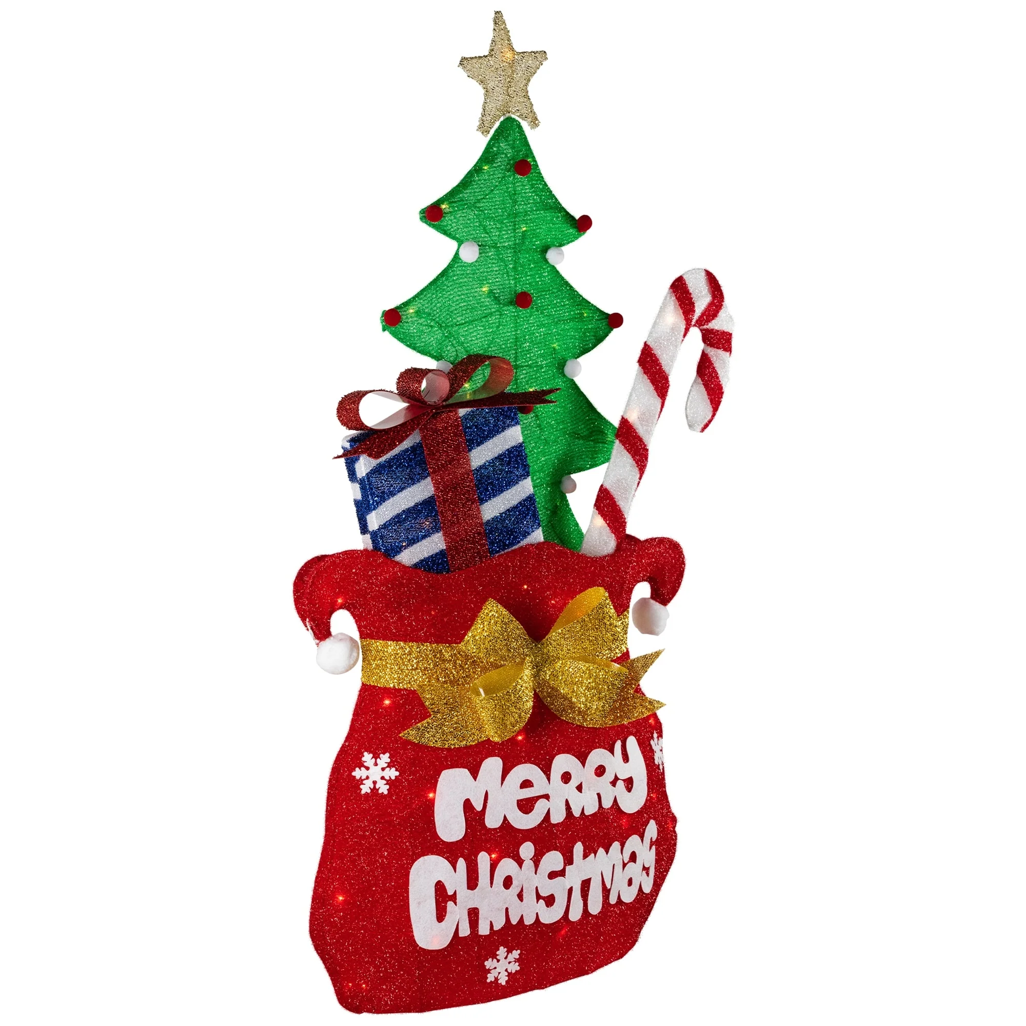 3D Lighted "Merry Christmas" Gift Bag Outdoor Yard Decoration - 41.75" - Red - 41.75