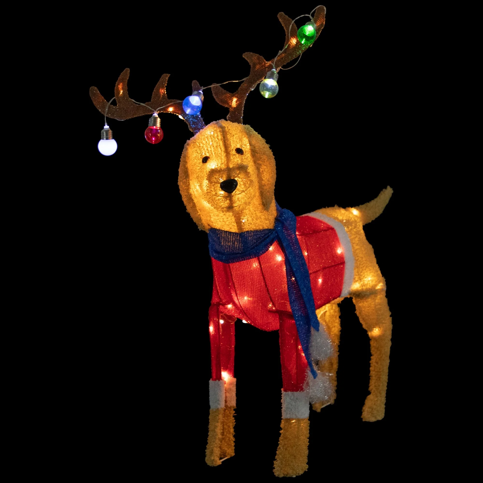 36.5" LED Dog Wearing Antlers Christmas Outdoor Yard Decoration - Brown
