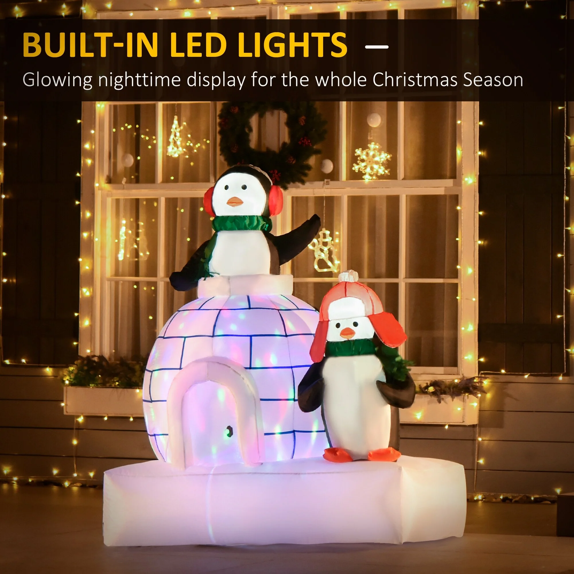 HOMCOM 5 ft. Inflatable Penguin Christmas Decoration with Colorful Igloo, Cute Christmas Decoration