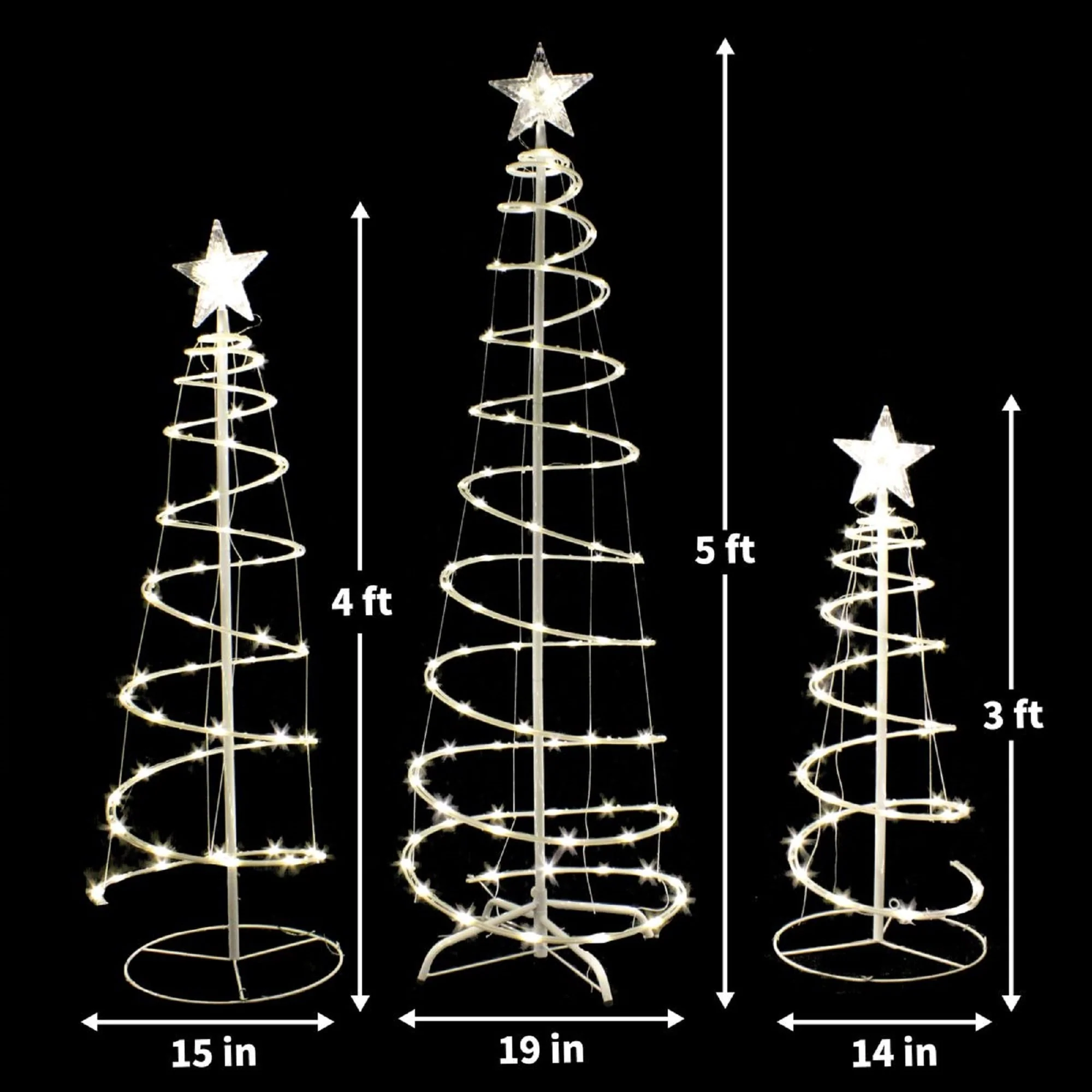 Joyfy 3 Packs Spiral Tree Christmas Decoration Outdoor, 218 LED Xmas Tree Lights - Warm White