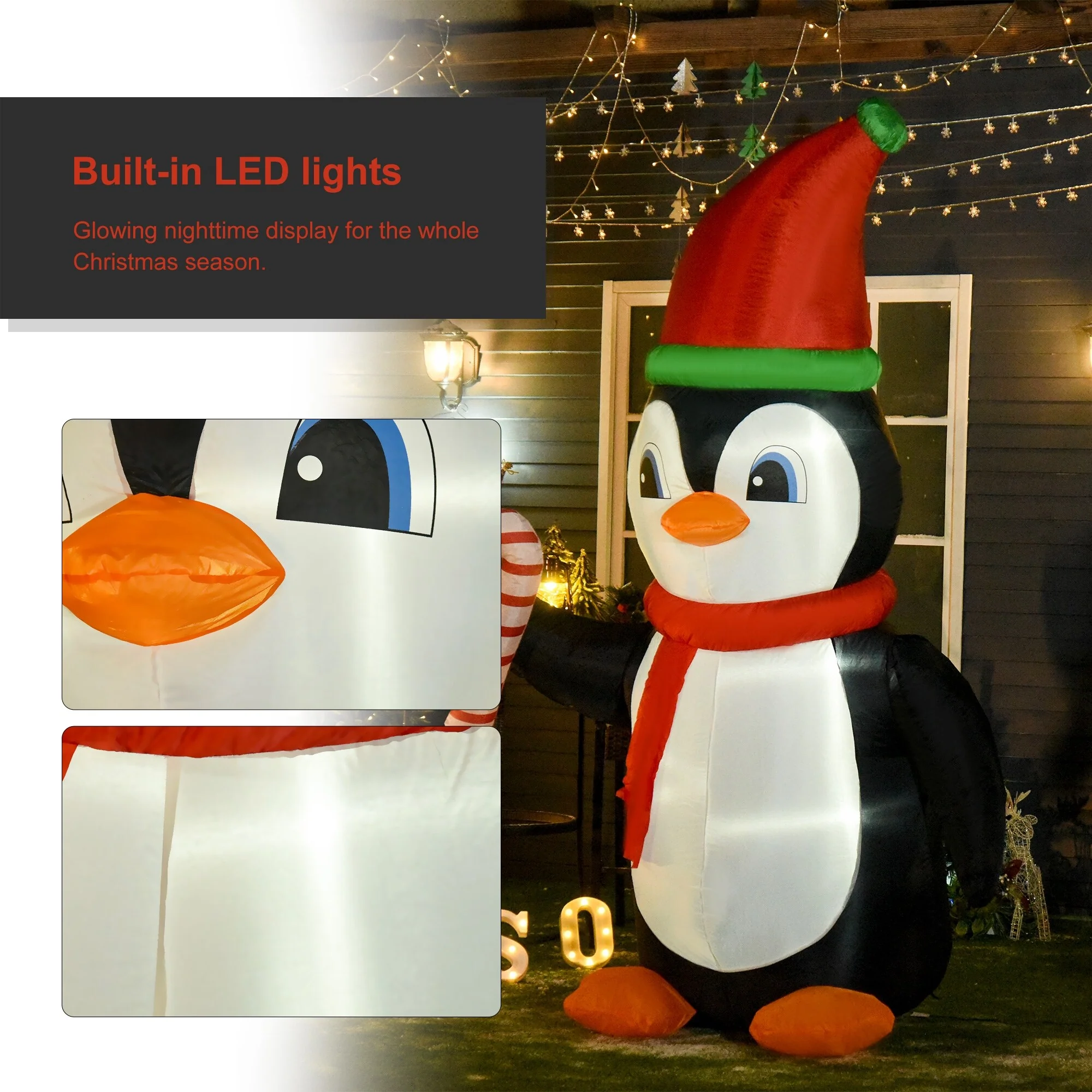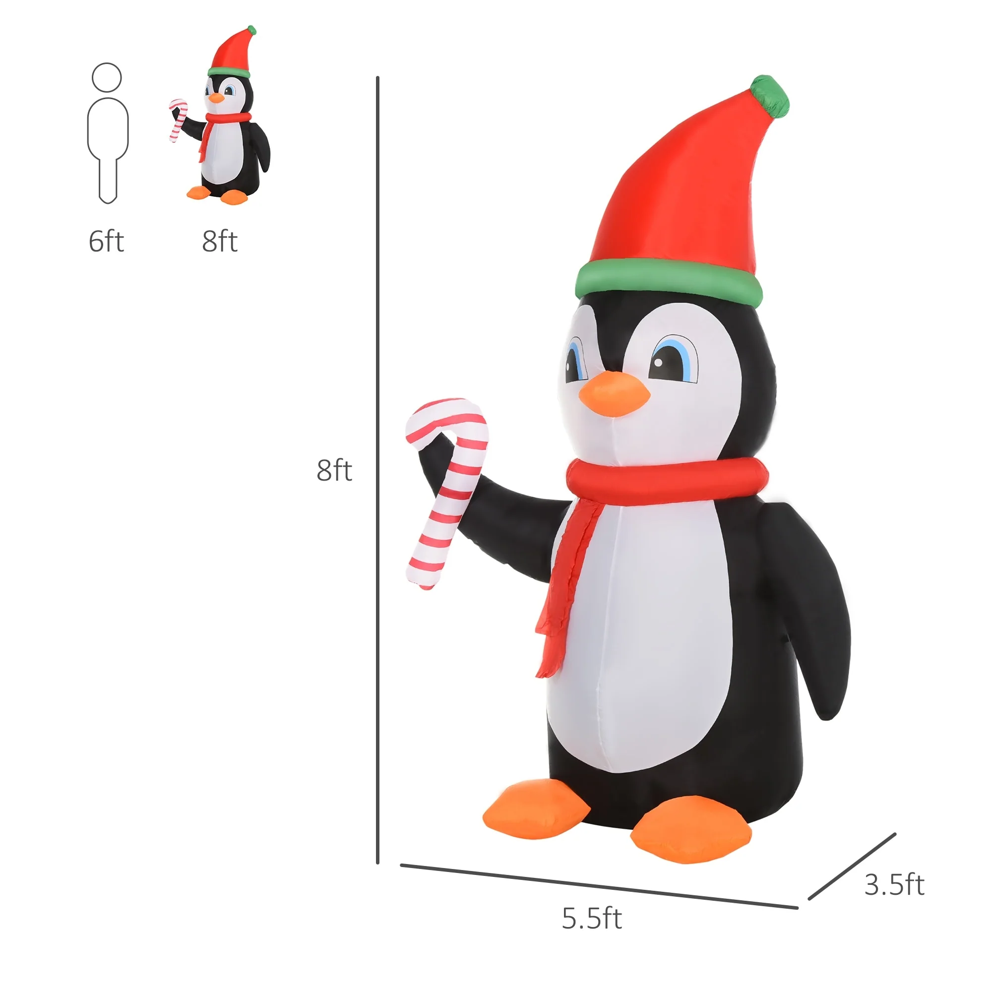 HOMCOM 8 ft. Penguin Inflatable Christmas Decoration with Candy Cane, Outdoor Blow-Up Cute Christmas Decoration