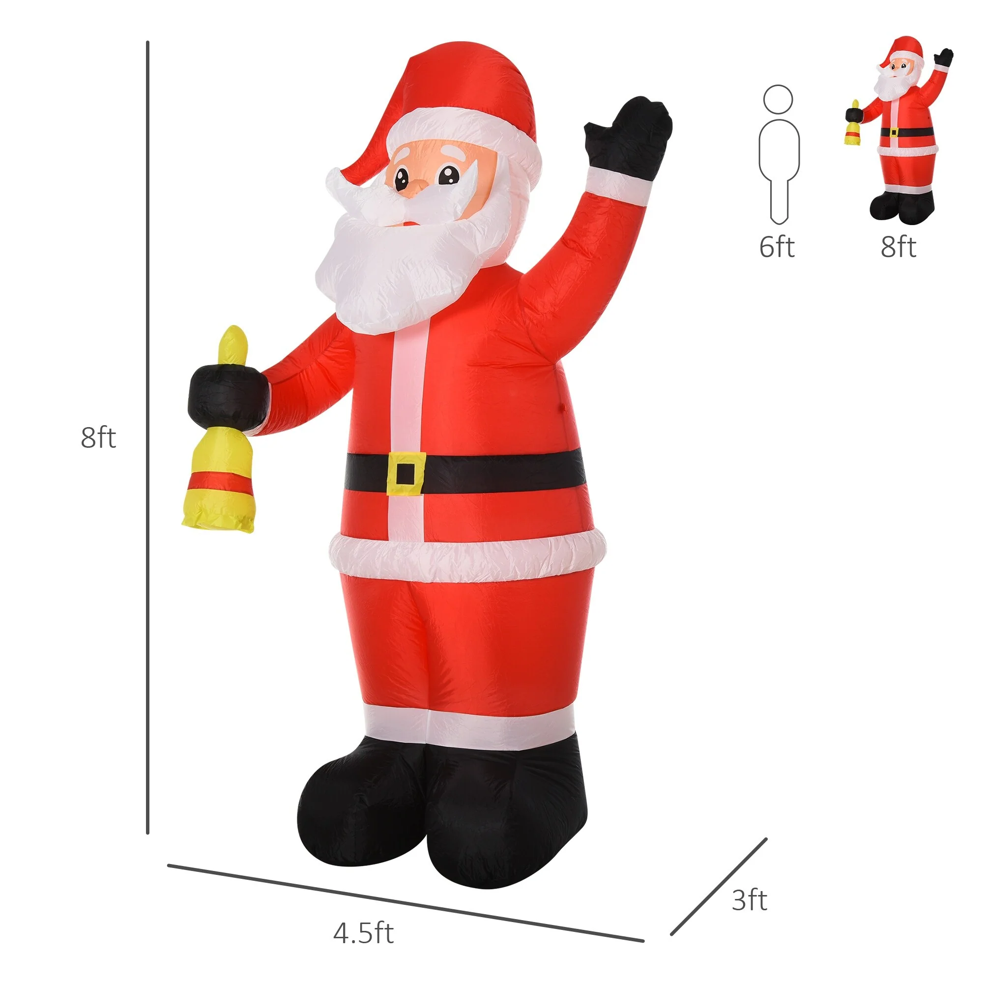 HOMCOM 8 ft. Santa Inflatable Christmas Decoration, Large Christmas Decoration, Outdoor Blow-Up Holiday Yard Decoration