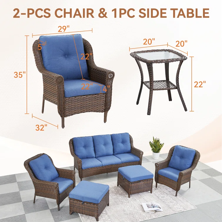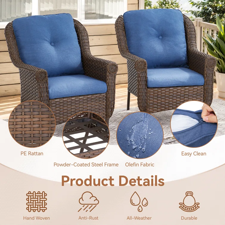Floral 2 - Person Outdoor Seating Group With Cushions With Side Table