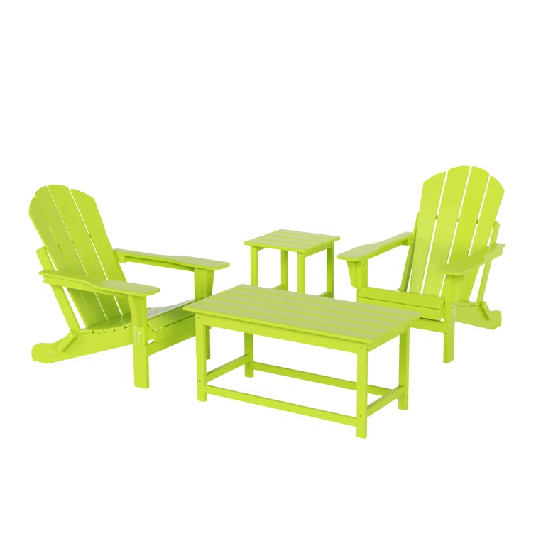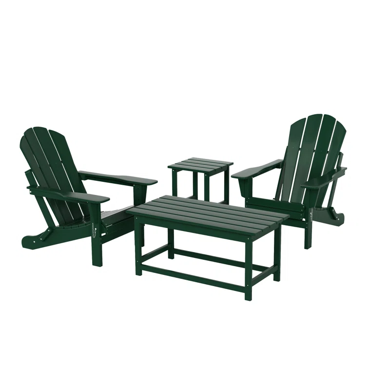 Hartington 12 Piece Plastic/Resin Folding Adirondack Chair with Ottoman and Table