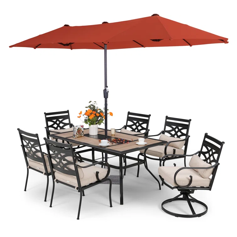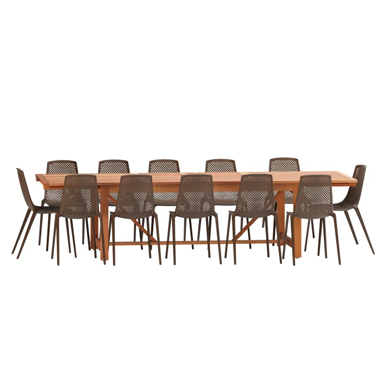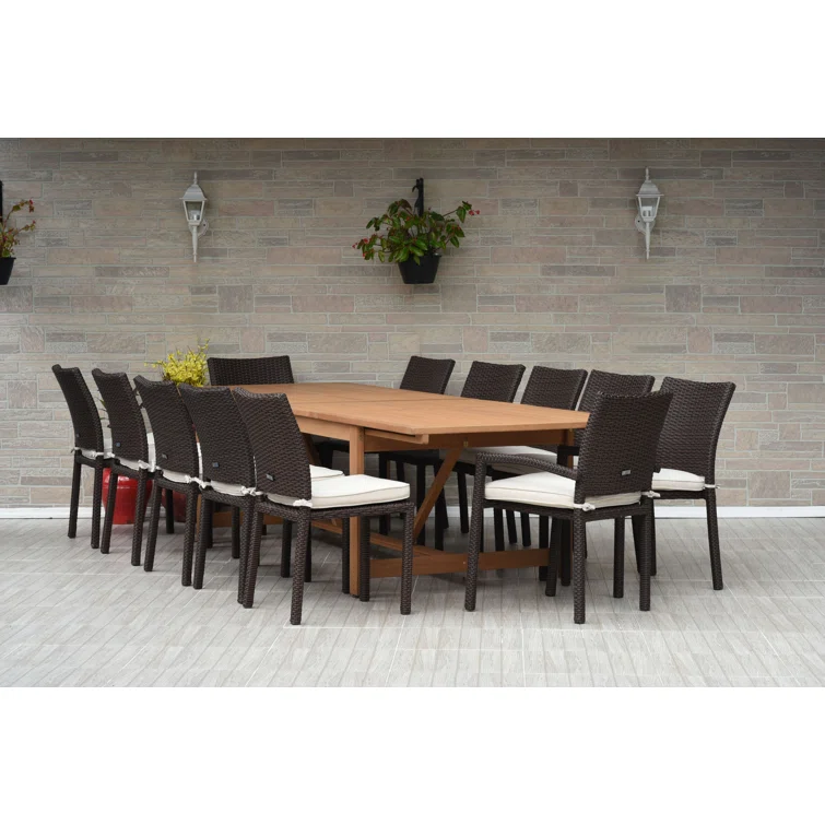 Anautica Rectangular 10 - Person 79" Teak Finish Outdoor Furniture Dining Set with Cushions