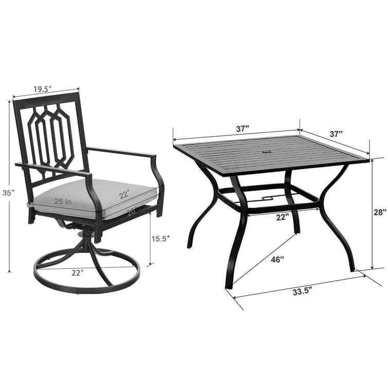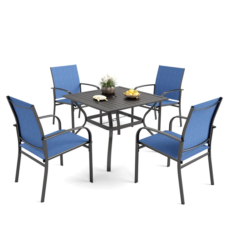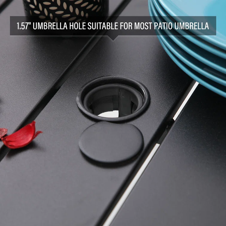 Amlie 23.5" Square Glass Metal Table with 2 Metal Aluminum Slat Stack Chairs