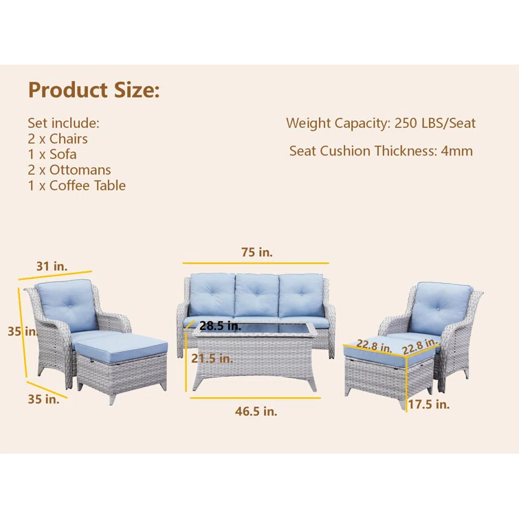 Carolina 5 - Person Outdoor Seating Group with Cushions