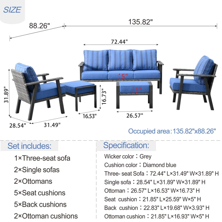 Aisatou 5 - Person Outdoor Seating Group with Cushions